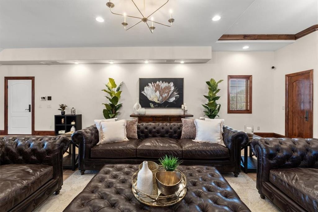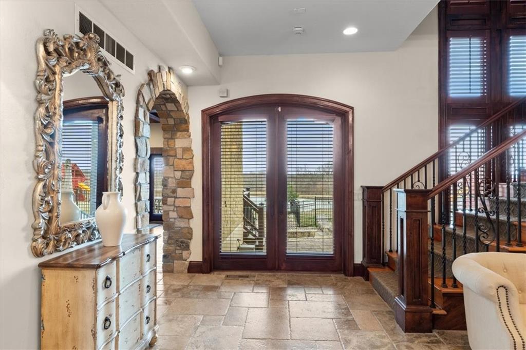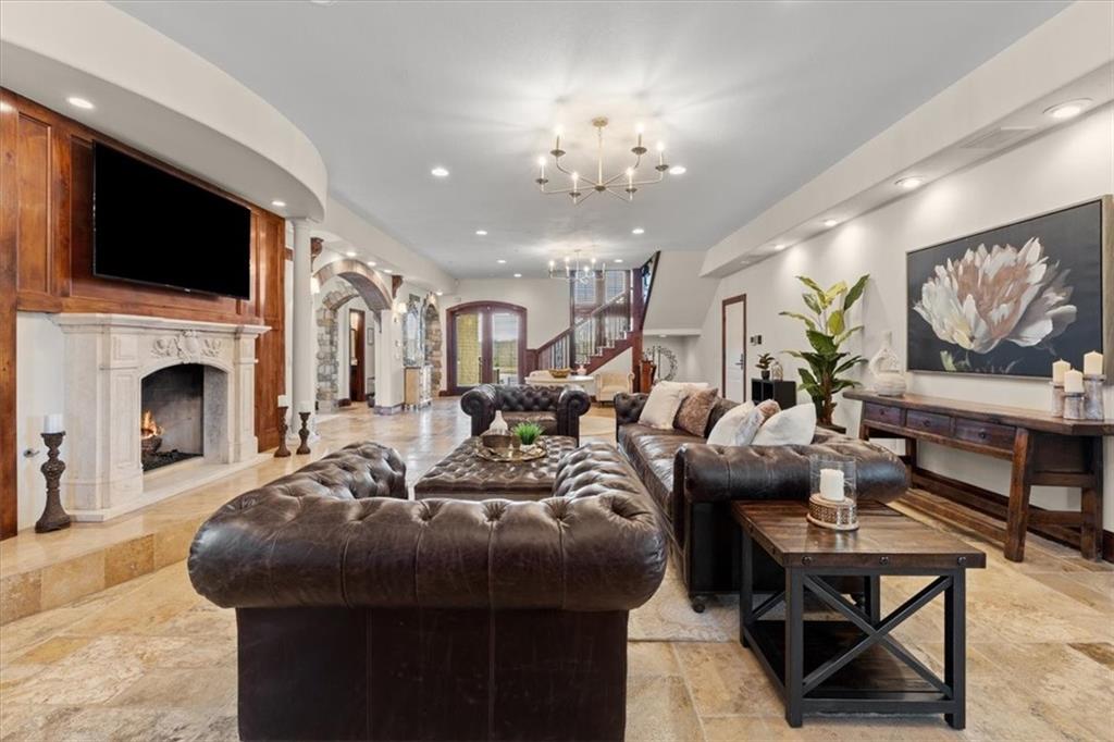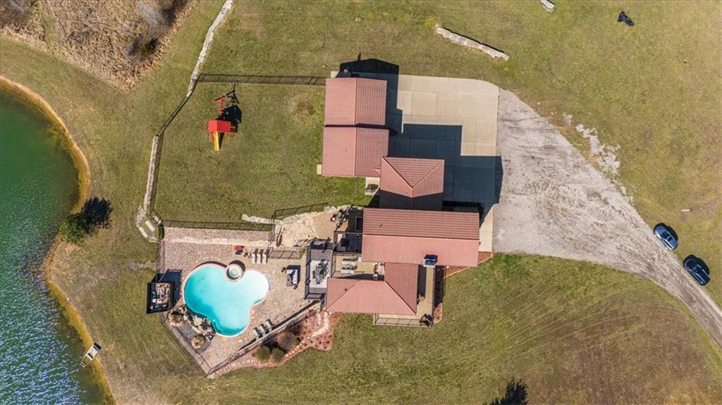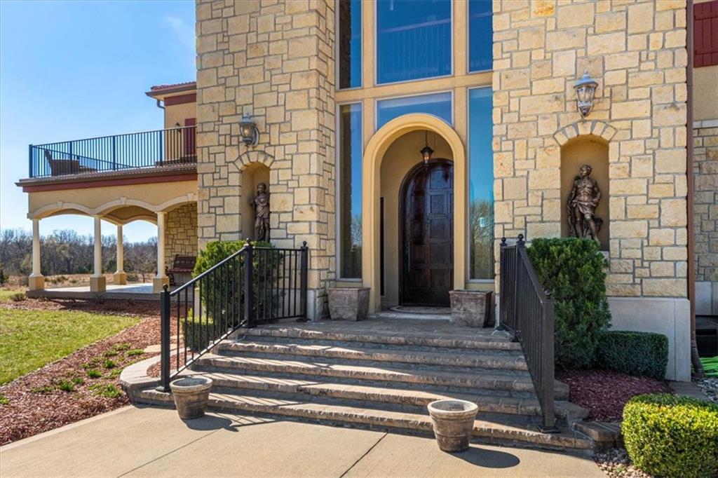 Welcome to 2343 N 600 Road, Edgerton, KS, 26.64-acre private estate blending luxury, privacy, and natural beauty. Behind the gated entrance, a tree-lined drive leads to this European Villa-inspired residence, featuring 6,491 sq ft, 5 bedrooms, 5 full and 2 half baths. The grand entryway opens to stunning interiors with soaring ceilings, arched openings, and exquisite finishes. The gourmet kitchen boasts granite countertops, custom cabinetry, double ovens, a pot filler, two wine fridges, and a butler's pantry, flowing into the hearth room with a stone fireplace, exposed beams, and a wall of windows. The formal dining room with stone flooring and a custom chandelier provides an elegant gathering space, while expansive decks and patios showcase breathtaking views of the pool, pond, and rolling landscape. The primary suite is a serene retreat with vaulted ceilings, private deck access, and a spa-like bath featuring dual vanities, a whirlpool tub, and a walk-in shower. The lower level offers a spacious rec room, stone fireplace, built-ins, and two additional ensuite bedrooms with pool access. Outdoor living is unparalleled with a heated saltwater pool and spa, a private pond with an island, and manicured grounds teeming with wildlife. The 1,200 sq ft, 4-car epoxy-floored garage is a car enthusiast's dream, while the third-floor flex space offers endless possibilities. This one-of-a-kind property provides a secluded retreat just minutes from Lawrence, Overland Park, and the KC metro. Whether you're looking for a luxury residence, vacation getaway, or your own private oasis, this estate is a must-see.