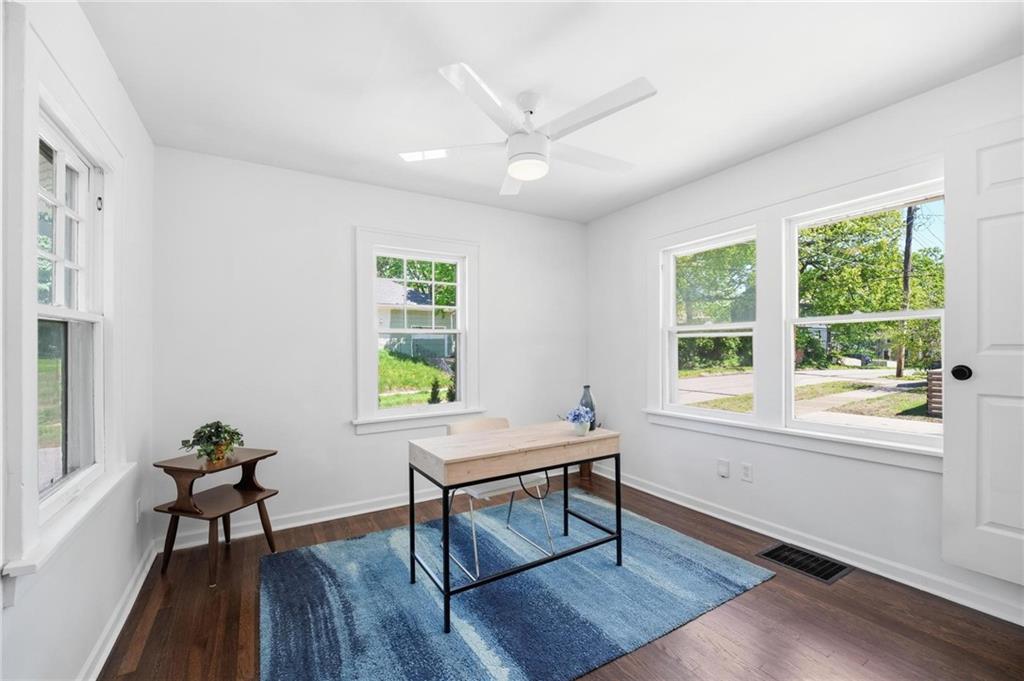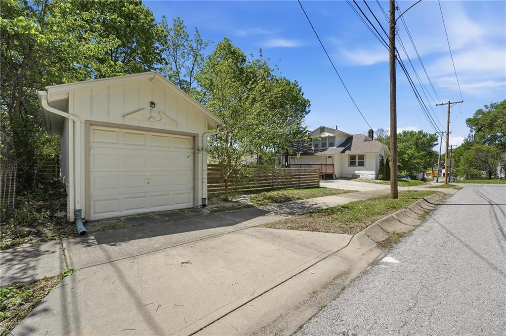 This charming 1930s bungalow has been thoughtfully updated while preserving its one-of-a-kind character. Nestled on a corner lot in Spring Valley, this 3 bed/2 bath home offers 1,478 sq ft with the ease of main-level living. The main floor features hardwood & tile floors, a cozy fireplace, and a modern kitchen with solid quartz countertops, modern cabinets, stainless steel appliances, electric stove, refrigerator, dishwasher, and W/D — all included. The main-level primary suite boasts a walk-in closet & double vanity bath. Upstairs, a private bedroom and loft space add versatility for guests, a home office, or flex living with it's own entrance from the back. Step outside to a welcoming front porch, back deck, fire pit & fully fenced backyard — perfect for entertaining. Detached 1-car garage, extra driveway parking & solar energy generation round out this truly unique find. The location is premium being one block from Woodside Racquet Club, walking distance to Westport & the Country Club Plaza, and just minutes from KU Medical Center & St. Luke's Hospital.