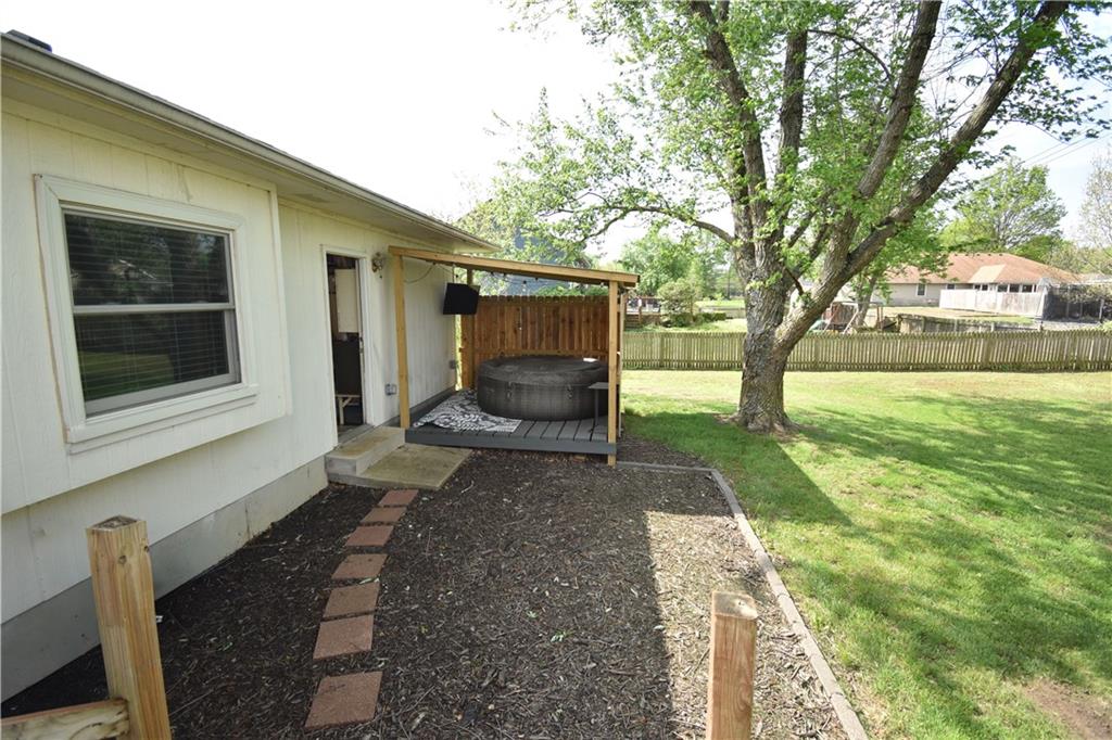 Two bedrooms and a bathroom upstairs and potential non-conforming Master Suite with bathroom downstairs. Kitchen with pantry and backyard deck access for easy entertaining. Large Living Room, attached garage and beautiful yard with view of farmland to the North. Located at the end of the cul-de-sac so minimal traffic. Large garden plot, ready to plant. Quiet neighbors with an easy commute to Harrisonville, Kansas City, or Truman Lake.