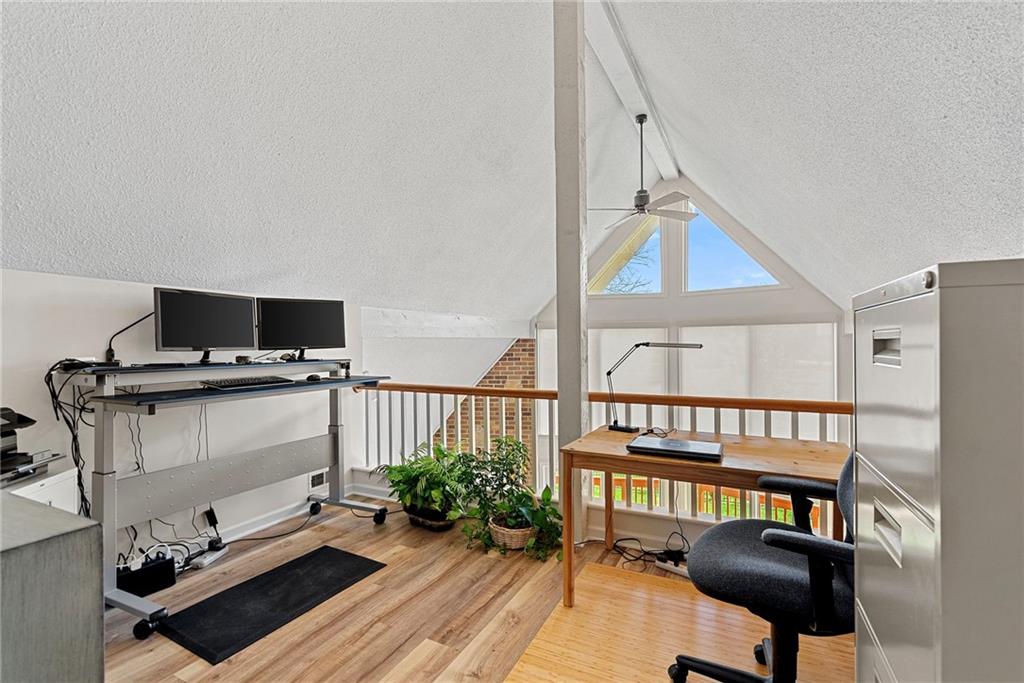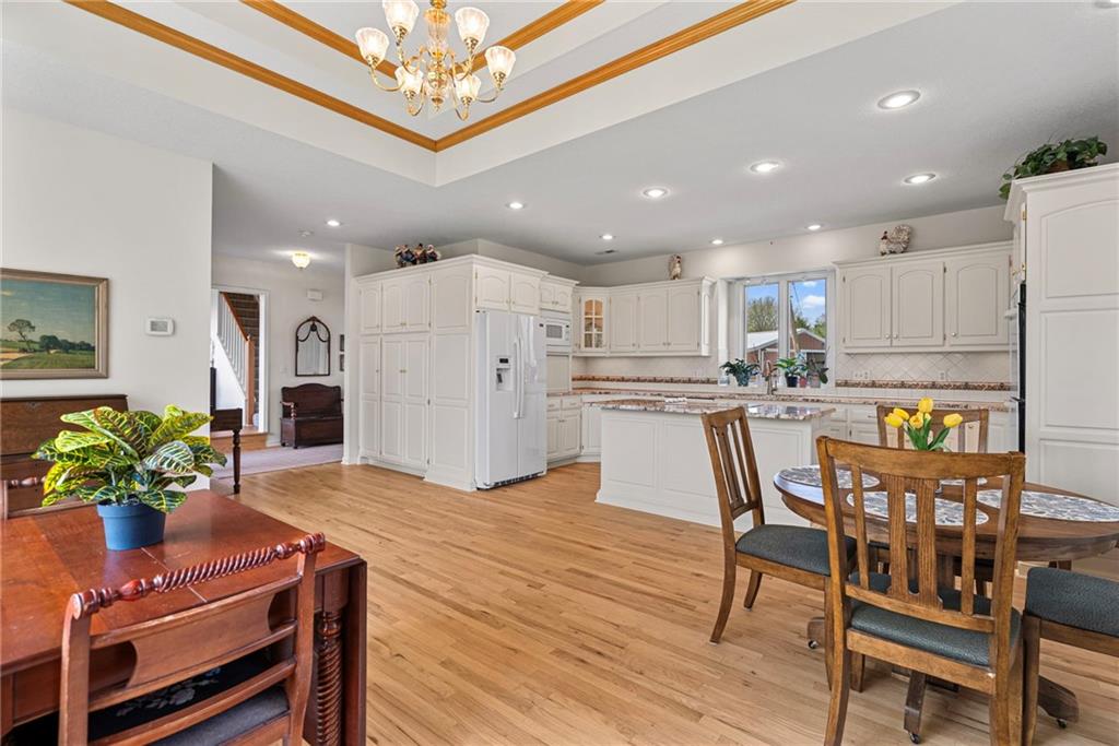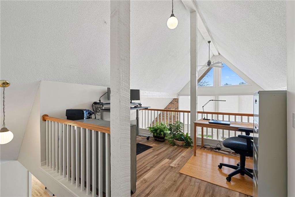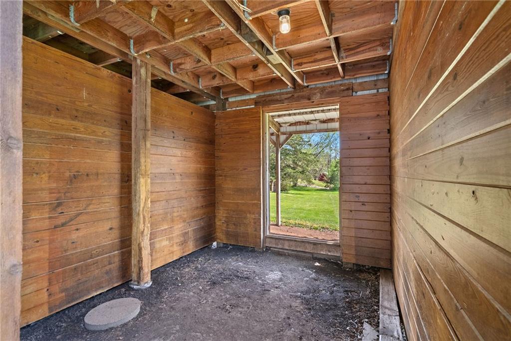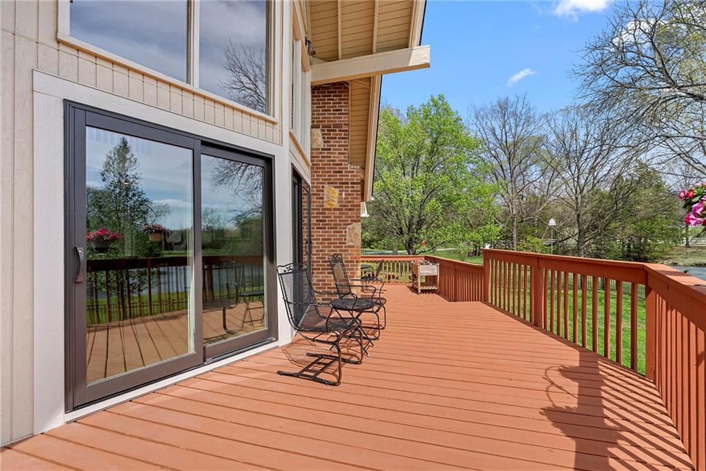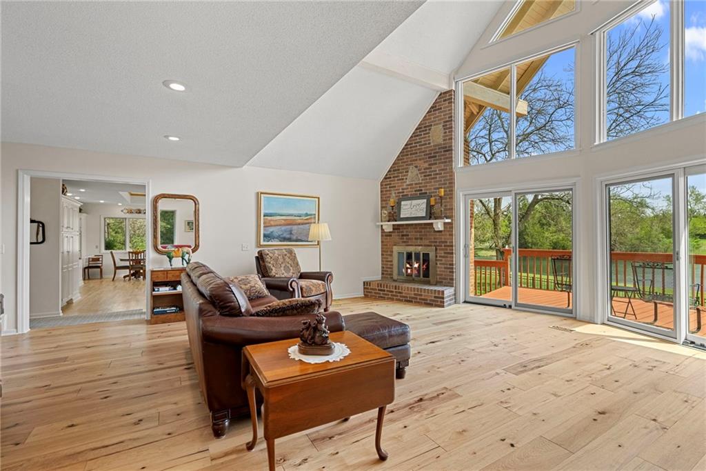 Discover a true private retreat in this one-of-a-kind A-frame estate, tucked away in a private 8-acre park-like setting just minutes from Hillsdale Lake. Designed to honor the land, this residence harmonizes rustic soul with modern functionality, offering a level of seclusion and beauty that is impossible to replicate. The heart of the home is the soaring, light-filled A-frame living area, where floor-to-ceiling windows frame incredible views of the pond and surrounding nature. This space is anchored by a majestic fireplace featuring a recently restored lifetime-warrantied flue system. The modern kitchen addition serves as a perfect bridge between the home’s original character and today’s needs, boasting custom cabinetry, double ovens, and 2021 granite surfaces. The upper level serves as a versatile getaway, featuring a full bathroom, a large bedroom, and a private landing that functions as a unique "balcony" office or nursery space. From this vantage point, you can work or relax while taking in the same expansive views from a higher perspective. For equestrian enthusiasts and hobbyists, the property features a riding arena expertly graded for drainage, an equestrian barn with 3 tongue-in-groove horse stalls, a tack room, and a shop area with reinforced concrete floors. The estate is further enhanced by a chicken coop, an aviary, and established black raspberry bushes. This meticulously maintained home offers peace of mind with a 2021 roof, dual HVAC systems under warranty, and most windows replaced in 2020-21. Located with incredible accessibility to the KC Metro, this is a rare opportunity to own a lifestyle of total privacy and architectural character without compromise.