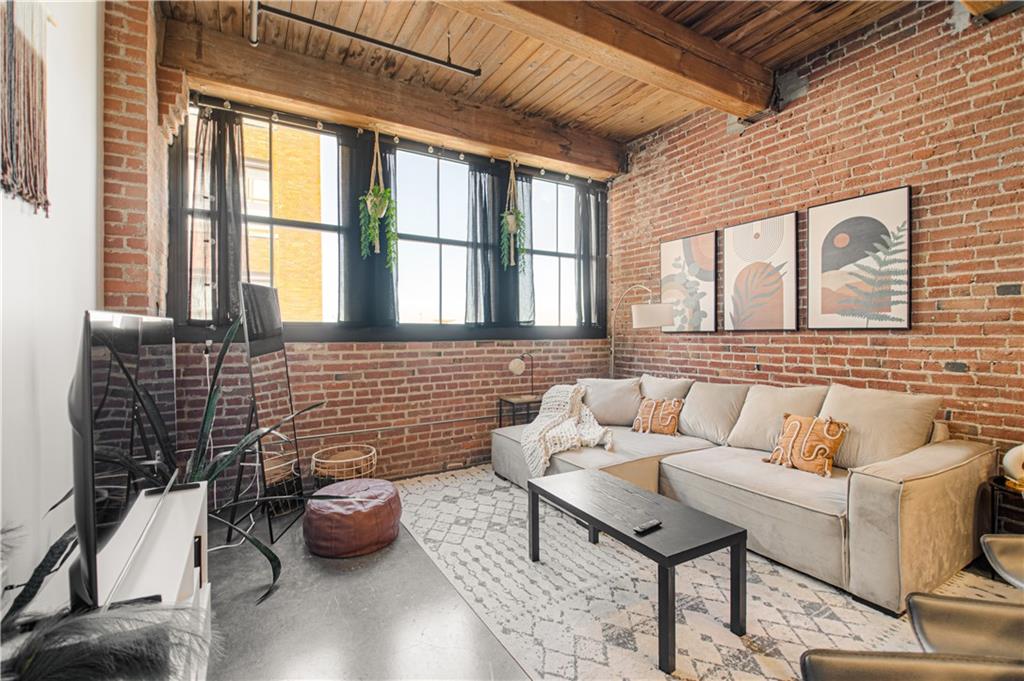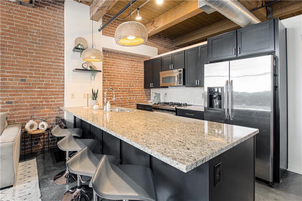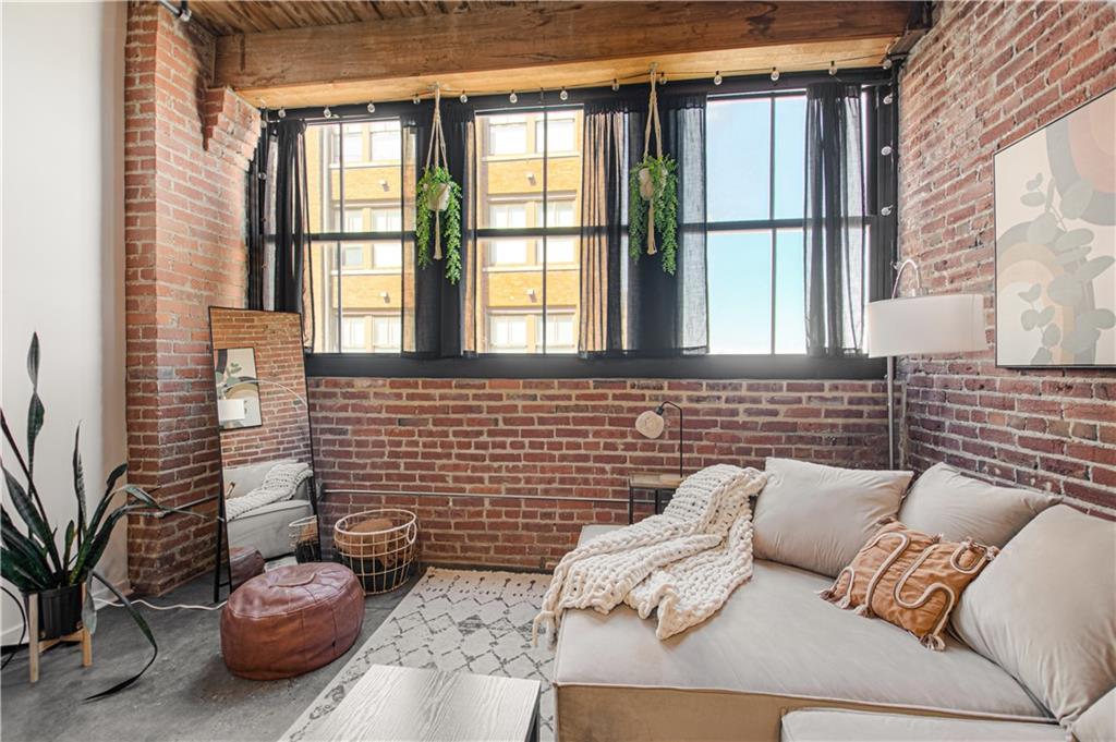 Come see this beautiful, fully furnished downtown condo! It doesn't get any easier! Located close to bars, restaurants and highways-only a few blocks to the free streetcar and just steps from the River Market area. This 1 bedroom, 1 bathroom condo is close to everything, but still located in a quiet area. It has been wonderfully updated and boasts beautiful concrete floors, granite counter tops, plenty of exposed brick and natural wood beams, lots of natural light, high ceilings, and being on the 5th floor, a fantastic view of the downtown airport and Missouri River. All stainless steel appliances stay, as well as the washer & dryer(LG). Included in the sale are the furniture and furnishings that is everything anyone could ever need to call this home! A wonderful sectional couch, bed, barstools, all shelves, shelving units, dresser, desk, 2 large screen TVs, even pots, pans, plates, glasses and silverware! (**Please note that the Kitchen Aid standing mixer does not stay**)Extra storage in the basement comes with the unit. Gated parking is available right next to the building; above ground $85/month & covered parking below is $110/month. Amenities include water, a wonderful fitness room, theater room, club house and sauna, building maintenance, trash pick up, snow removal, etc. A relatively low monthly HOA Fee for all of this is more than worth it! Whether you're a first-time home buyer, or a couple or single that just wants a place to enjoy downtown living, this place is perfect. Don't wait-schedule a tour today!