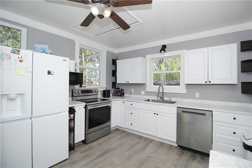 This renovated 1.5-story charmer offers a mix of original character and recent updates. NEWER kitchen, windows, central heat and air, sewer line and water heater. Large pantry for all your goodies. Original woodwork including hardwood floors. A wrap-around porch invites you to sit, relax and enjoy your company. A handicap accessible ramp is helpful for those in need. Detached oversized 288 square foot 1-car garage has a concrete floor and an attached 168 square foot shed.