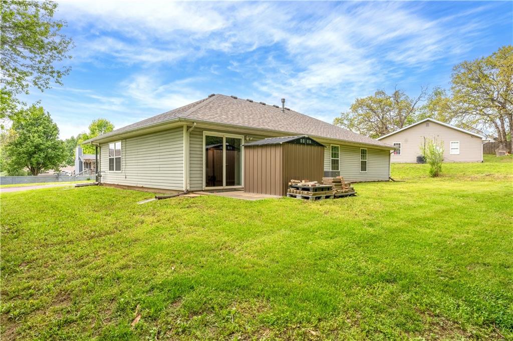 Ready for you to move right in! This meticulously maintained ranch home is just minutes from 50 Hwy and less than 10 minutes from Whiteman AFB. Enter on to wood-look luxury vinyl plank throughout the main spaces. The seller installed new LVP flooring in the Kitchen/Dining area (March 2026) and interior painting has been touched up. The spacious Kitchen has like-new stainless-steel appliances that all stay with the home and generous counter space. The Dining Room sits right off the Kitchen for easy serving and connection to conversation. Seller increased energy efficiency with a NEW furnace, exterior AC, and 50-gallon water heater in 2024! There are two good sized secondary Bedrooms with the hall Bathroom nearby. The spacious master suite has plenty of room for a king-sized bed and the on-suite Bathroom has a larger vanity area. Enjoy backyard activities with lots of space plus a storage shed for lawn equipment, toys, ect. This home is waiting for new family memories! *Professional photos coming soon!*