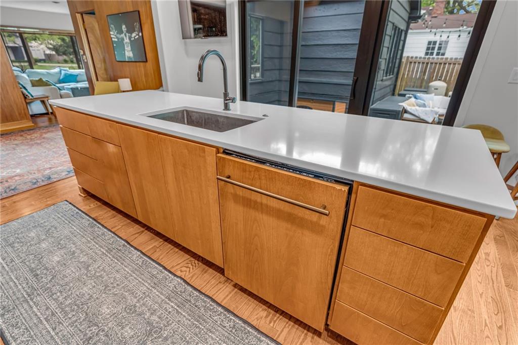 Set along one of Lawrence’s most storied corridors, 1506 University Drive is a study in what it means to live well — steps from the University of Kansas campus, yet removed enough from the ordinary to feel entirely your own. The home’s midcentury bones have been thoughtfully elevated: original wood-paneled rooms, clean geometric lines, and an effortless indoor-outdoor flow that feels both curated and lived-in. Inside, a fully renovated chef’s kitchen anchors the heart of the home — warm wood cabinetry to the ceiling, white quartz waterfall island, professional-grade appliances, and hardwood floors that glow underfoot. The reimagined primary suite is a private retreat: a generous bedroom paired with a spa-caliber bath featuring double vanity, walk-in shower, soaking tub, and a dedicated walk-in closet. Beyond the walls, a resort-style saltwater pool commands the rear garden — a crystalline centerpiece around which evenings unfold slowly. String lights, mature oaks, raised garden beds, and a fully fenced yard complete the picture. Whether you arrive for the football Saturdays or the daily ceremony of a morning walk to campus, this home understands exactly who you are.