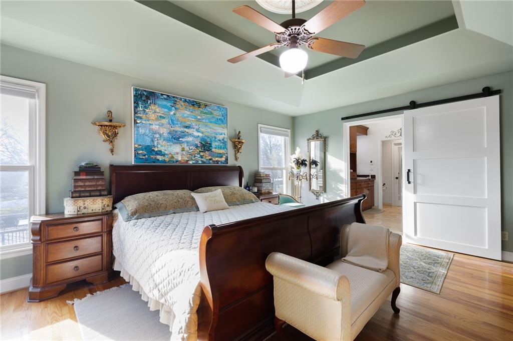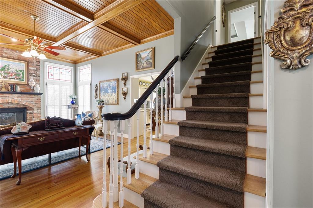 If you want a home that supports your lifestyle and has investment potential, this master-crafted Northland residence in Brookhill is the rare exception! This home offers nearly 4,300sqft of space, starting with a gourmet chef’s kitchen featuring granite countertops, a large island, stainless appliances, and a warming oven for perfect hosting. The main floor flow is natural and unhurried, with high ceilings and a sun-drenched living room anchored by a classic fireplace and custom stained-glass accents. A dedicated office on this level provides the perfect retreat. Upstairs, you will find four large bedrooms, including an oversized primary suite with an expansive walk-in closet, a private skylight, and a heated tile bathroom floor. Another hard to find feature is the fully finished walkout basement that offers an impressive self-contained living suite. This is a complete second home with its own full kitchen, full bath, serving bar, and a large fifth bedroom. Whether for multi-generational living or potential rental income to offset your mortgage, this suite provides a massive financial advantage as a short-term rental, especially with the World Cup coming to Kansas City this summer. All fixtures, including the tankless water heater, are premium American Standard quality. Outside, you enter a private sanctuary that feels like your own park. This fully fenced English-garden retreat includes arbors, wrought iron, and three separate Trex decks. Situated just 25 minutes from both downtown Kansas City and the airport, this home is a true green-energy standout with owned solar panels and no remaining payments. While neighbors worry about utility rates, you will enjoy remarkably low overhead. From the quiet gardens to the HOA pool, every detail has been maintained with an obsession for quality. This is a rare property with immense space, beauty, and financial upside. Click "Contact Johnnie" today for more details and to schedule your private tour!