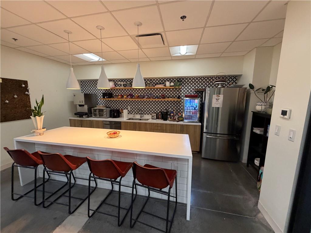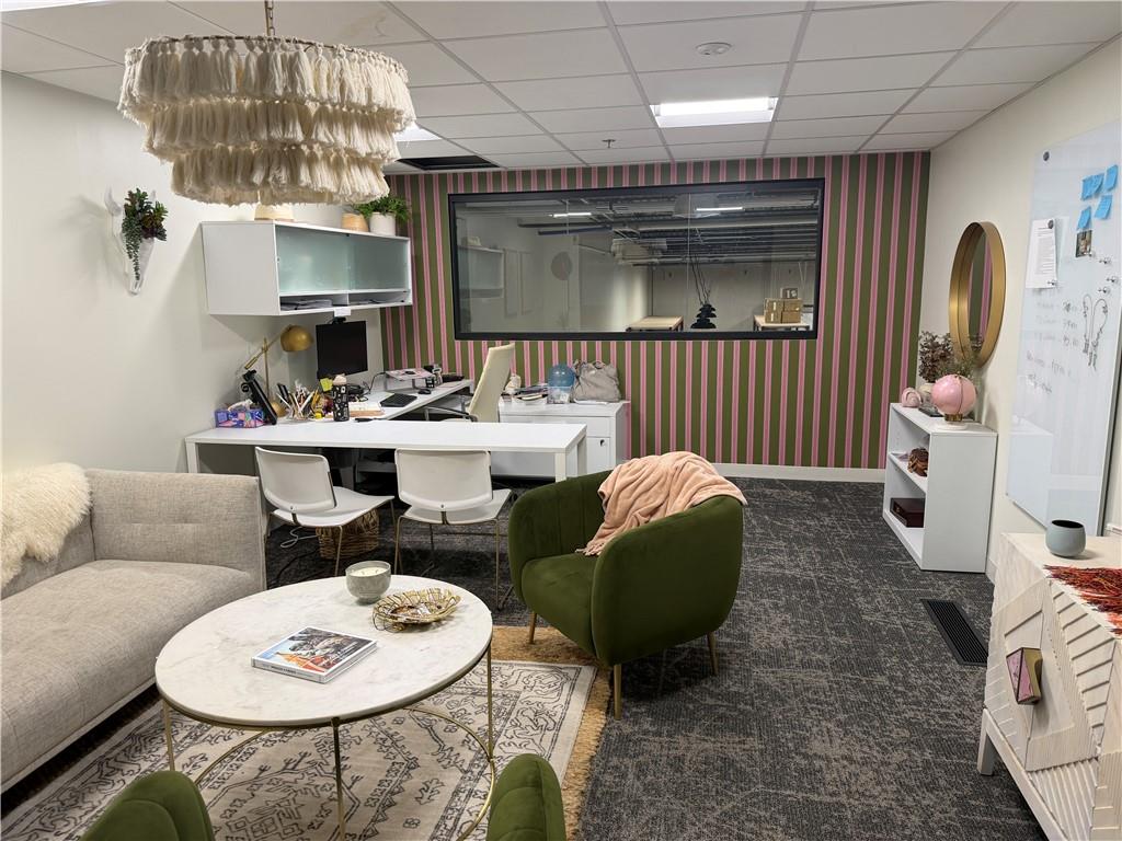 Suite 800 has a total of 15,000 sq ft of available space for lease. Building configuration has approximately 6,120 sq ft of offices on the main floor plus 2,100 sq ft of mezzanine office above for a total of 8,220 finished office space. Finished area includes multiple offices, fully appointed kitchen/break area, multi stall restrooms for men/women, conference and meeting rooms plus offices on both levels. Additional Features include a retail/showroom with private entrance of 2,500 sq ft +/- with office and restroom. Warehouse remains mostly open with exception of a demised 1,500 sq ft storage/work room that locks off from warehouse.