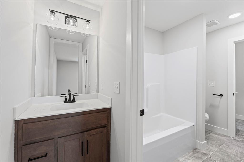 Stunning lightly lived in Wheeler 2 Sty featuring bright open- concept layout with designer touches. The gourmet kitchen showcases quartz countertops, a large center island with seating, custom cabinetry, herringbone backsplash, stainless steel appliances, and stylish pendent lighting - perfect for everyday living and entertaining. Spacious living area is anchored by a beautiful fireplace with custom mantel and modern slat accent wall, creating a warm yet sophisticated focal point. A welcoming entry leads to an impressive staircase with upgraded carpet and iron spindles, adding an architectural character. Retreat to the luxurious primary suite featuring a tray ceiling with ambient lighting and a striking accent wall, The spa- like ensuite offers dual vanity with granite countertops, a large walk-in shower with tile surround and glass enclosure, and a generous walk-in closet with connecting laundry. 2 additional bedrooms with jack and jill bathroom. Let's talk about the lower level. Ready for fun? Already set up for a golf simulator, with bar. Create the ultimate hang-out. Game days, bourbon nights, golf with your friends and family - it's all happening here! Industrial style bathroom set up for the guys! And then step outside..enjoy the composite deck, fenced yard and not being on top of your neighbors! Professioonal Picutres Coming.....easy to show