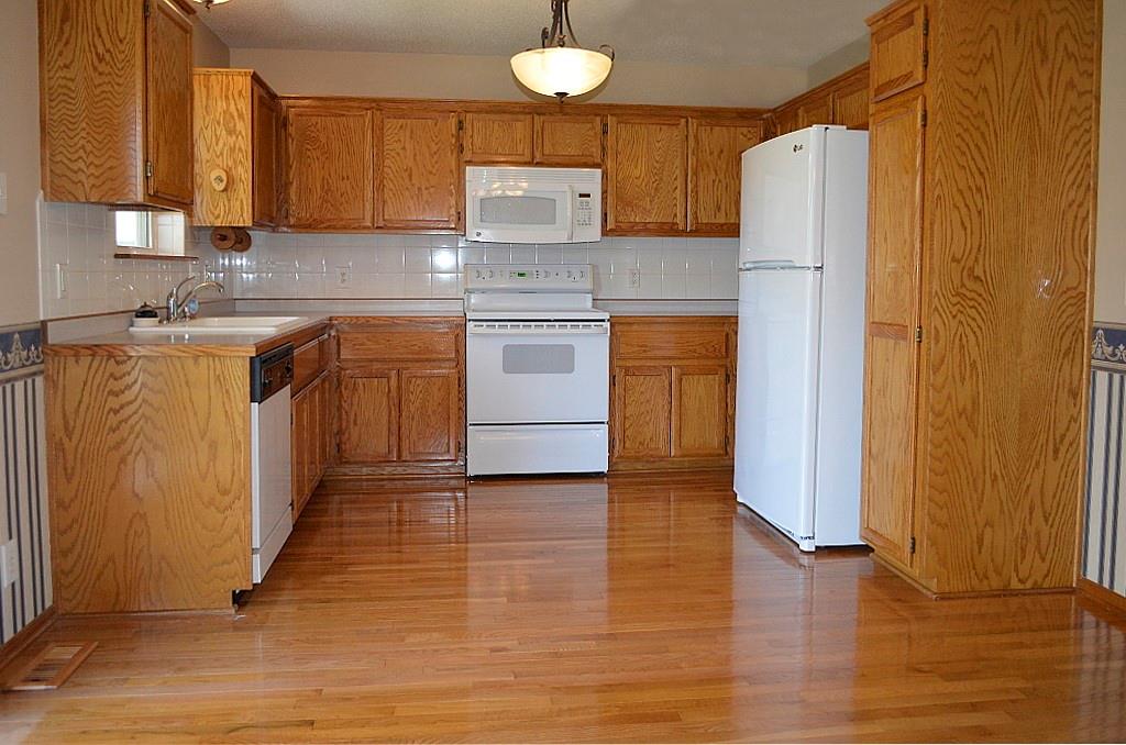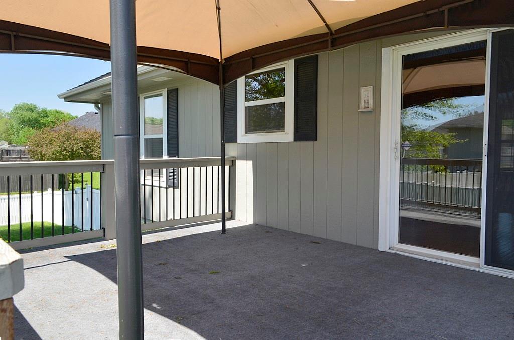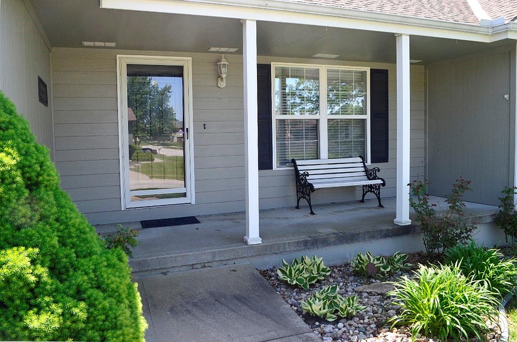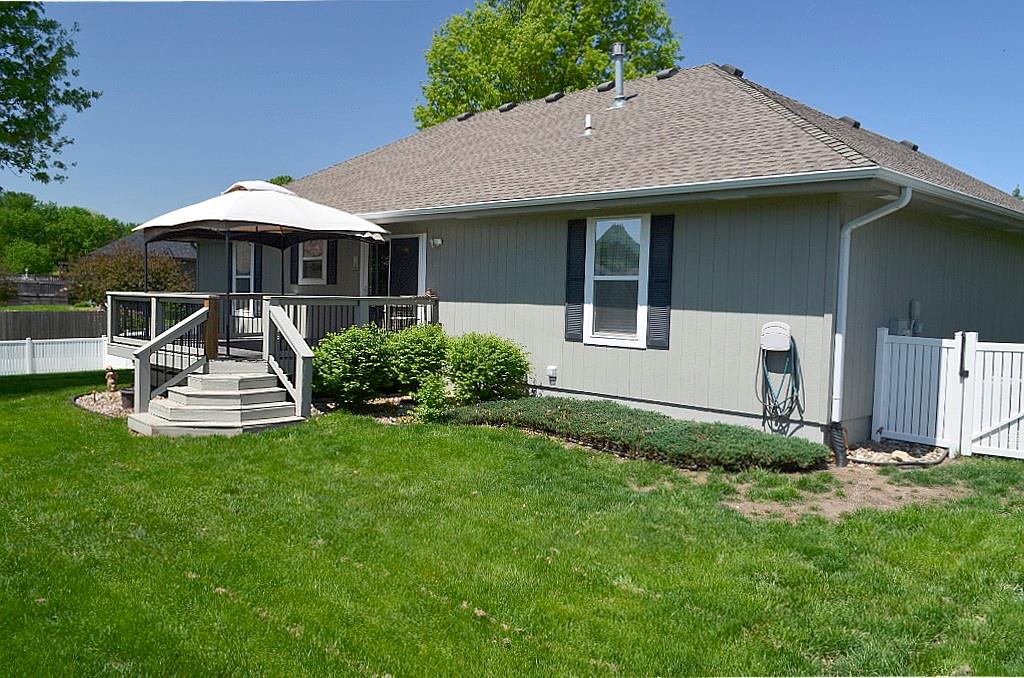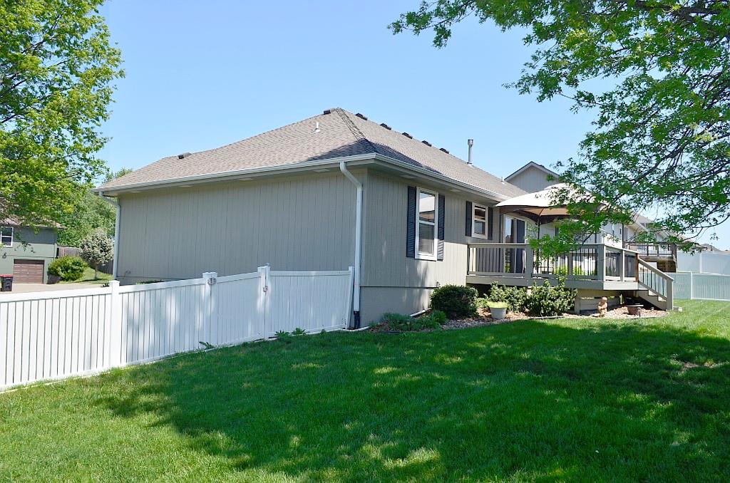 This meticulously maintained home shines with pride of ownership and offers the ease of true single-level living. The thoughtfully designed floor plan provides exceptional privacy, with the spacious primary suite set apart from bedrooms two and three at the opposite end of the home. Convenience abounds with main-level laundry tucked neatly into a generous closet just off the dining area. The kitchen is both bright and functional, featuring crisp white appliances and an efficient layout that makes everyday cooking feel effortless. Step outside to an oversized deck complete with a canopy—perfect for relaxing or entertaining throughout the spring and summer months. The fully fenced backyard, enclosed by a charming white fence, offers both shade and plenty of space to enjoy the outdoors. A coordinating storage shed provides ideal space for tools and seasonal items. Situated on a beautifully landscaped corner lot, the property is framed by mature, stately trees that enhance its curb appeal and sense of tranquility.