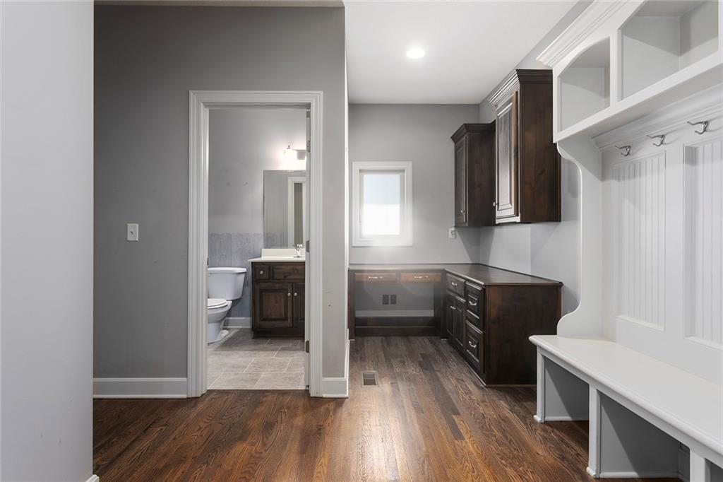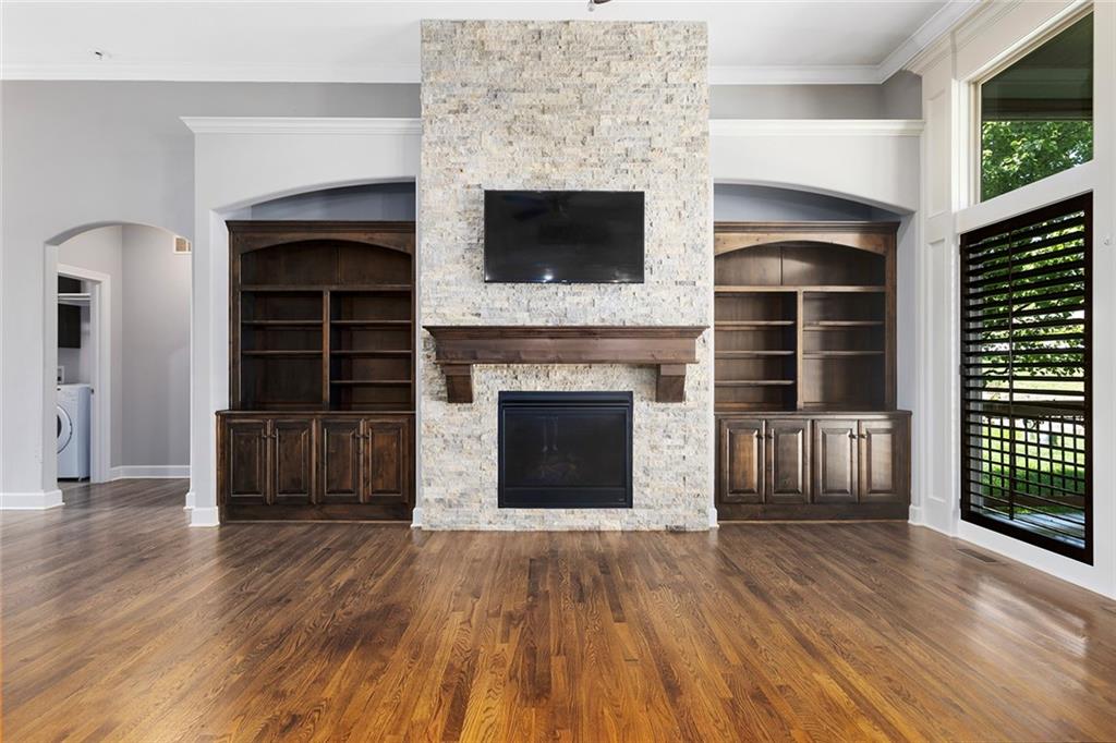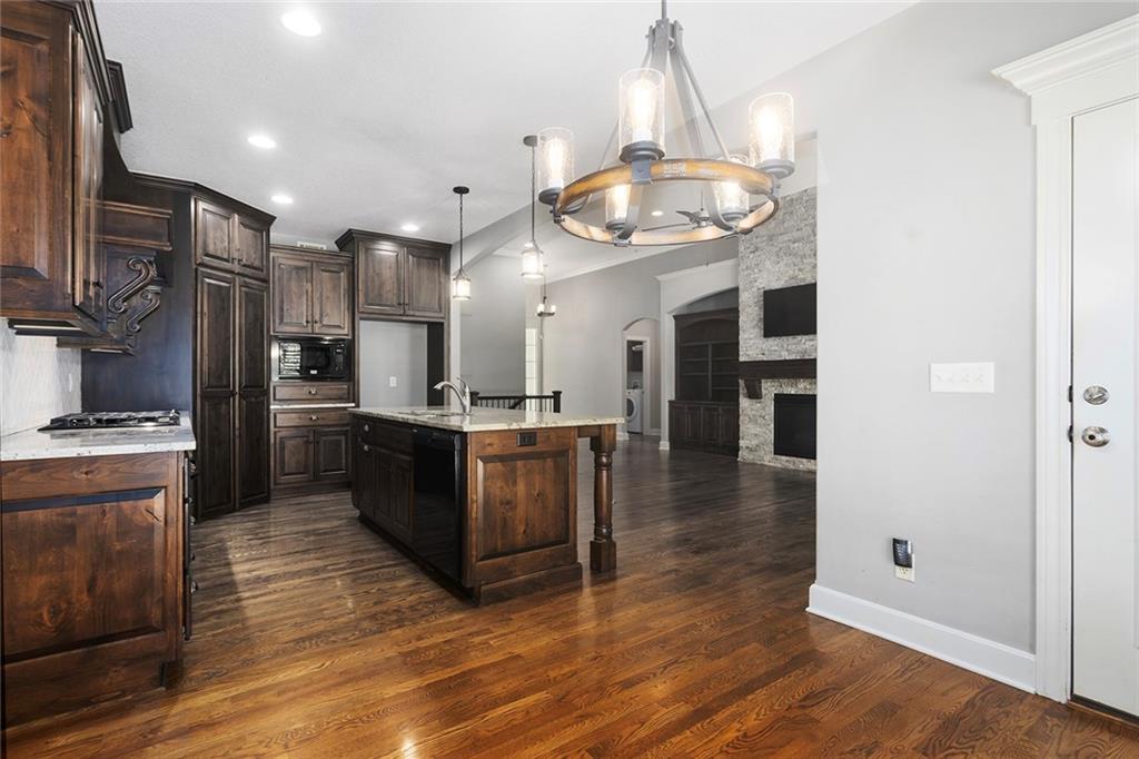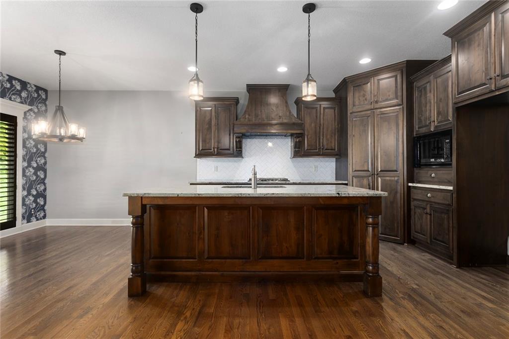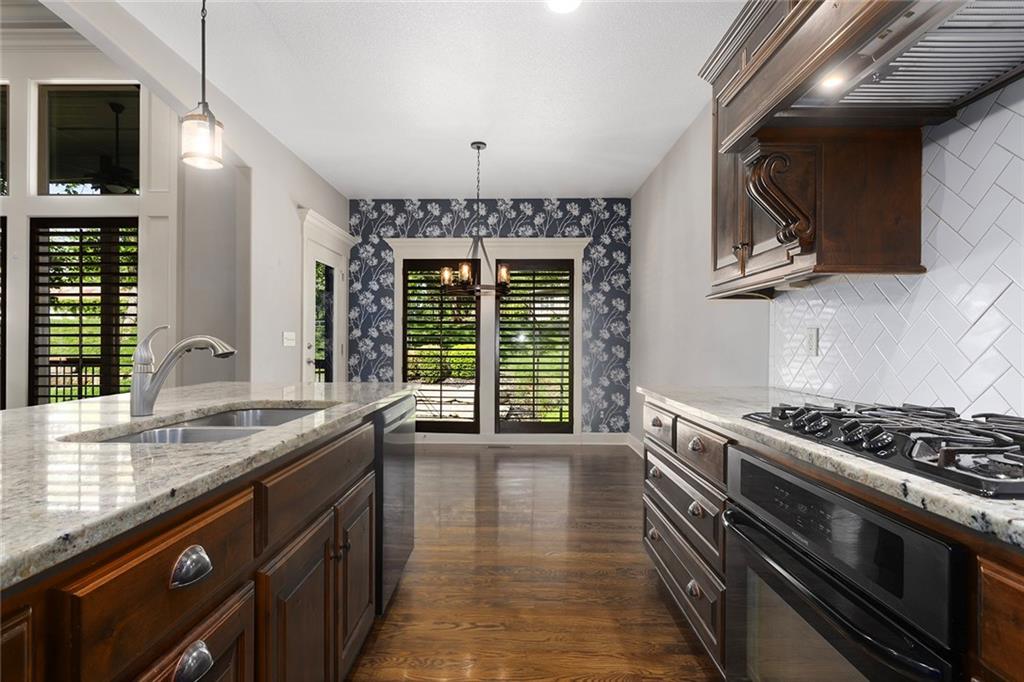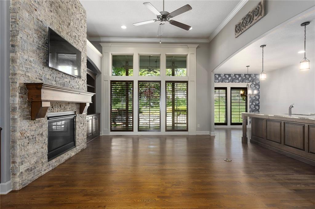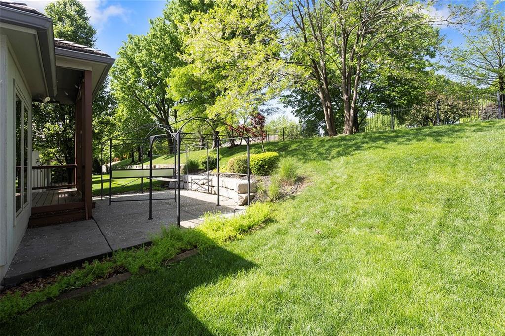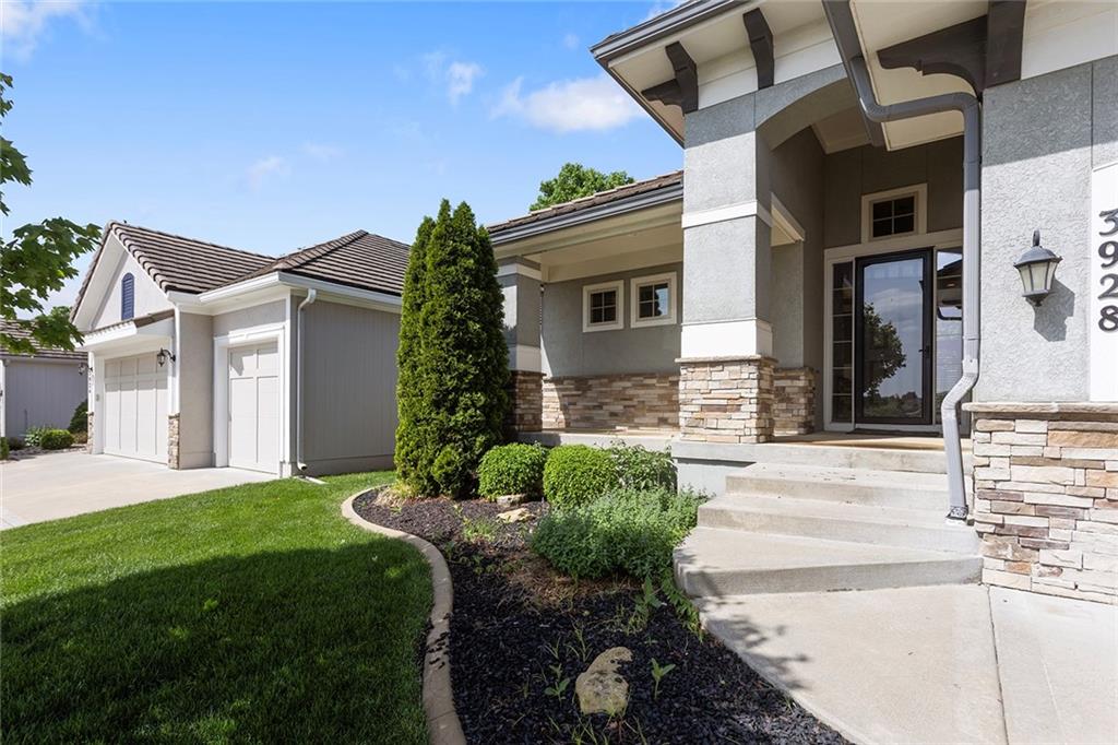 MAINTENANCE PROVIDED VILLA IN CHAPEL RIDGE AT LAKEWOOD - 2 bedroom, 2 bath, 3 car garage with another 1600 sq ft of unfinished basement with egress window and bath stub, creating outstanding future potential for additional bedrooms or recreation space. Gorgeous millwork and custom cabinetry in a French Provincial style with wood floors, granite countertops, a statement range hood, and rustic fixtures. The spacious primary suite offers comfort and function with dual vanities, a walk-in shower, and a large closet that connects to the laundry room. The separate office nook and a lovely covered patio are bonus features of this beautiful home. No mowing or snow shoveling, so there's plenty of time to enjoy all the amenities Lakewood has to offer, including pools, clubhouse, tennis courts, boat rentals, and lake recreation. Conveniently located near shopping, dining, medical services, and commuter routes. A fantastic opportunity for low-maintenance living in one of Lee's Summit's most established communities.