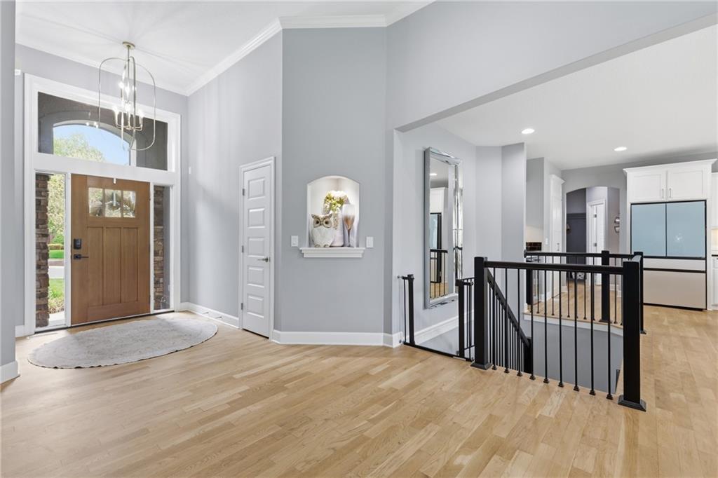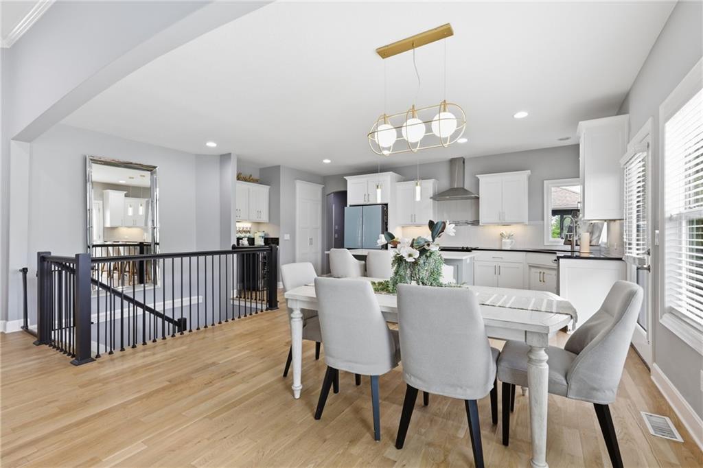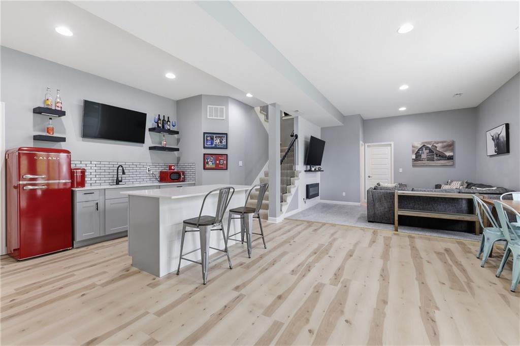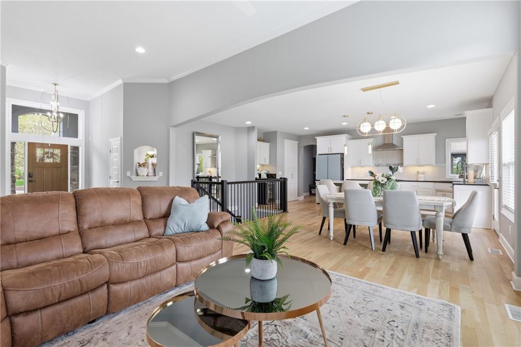 Welcome to this beautifully updated 5 bedroom, 4.1 bath home in the highly sought-after Staley Farms subdivision! With over 3,300 square feet, this home offers the perfect blend of space, functionality, and modern updates. Step inside to soaring 12-foot ceilings in the main living area, highlighted by a stunning floor-to-ceiling fireplace with brand new stone. The home features a new front door, fresh landscaping, updated lighting throughout, newer exterior paint, and select interior updates—making it truly move-in ready. The main level is ideal for multi-generational living, offering 3 bedrooms and 2.1 bathrooms. The spacious primary suite includes a luxurious ensuite with a large walk-in shower featuring dual shower heads and a walk-in closet. A freshly remodeled full bathroom adds even more value to the main floor. The kitchen is filled with natural light and flows seamlessly to the L-shaped covered deck, complete with a TV mount and party lighting—perfect for entertaining. Convenient main-level laundry and a 3-car garage add everyday ease. Downstairs, the finished basement offers incredible flexibility with 2 additional bedrooms, 2 bathrooms, a newly added kitchenette with sink and island, and ample storage space. You’ll also find a 4th garage ideal for a golf cart and a built-in reinforced safe room for safe keeping of your valueables or added peace of mind during storms. The back patio is ready for relaxation with a hot tub hookup already in place. Enjoy resort-style living in Staley Farms with neighborhood amenities that include a pool, pickleball and tennis courts, playground, clubhouse with gym and showers, basketball court, sand volleyball, and even a neighborhood restaurant. This home truly has it all—space, updates, and unbeatable amenities in one of Kansas City’s premier communities!