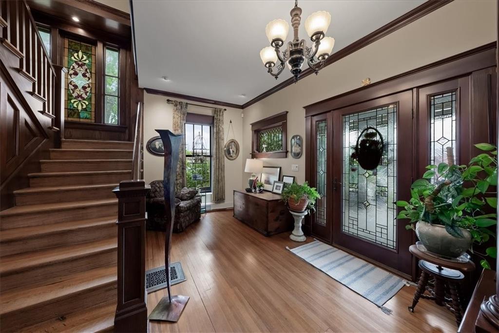 Hands down, the most unique and carefully restored historic home in the heart of Blue Springs. Nothing rivals this home as no expense was spared in completely restoring this 1908 beauty, and then taking it well beyond even the original build with a large addition including 2 car garage and additional living space above, plus a complete makeover of the detached carriage house which includes a third garage space, storage, a finished lower level studio with full bathroom and a studio apartment on the upper floor with its own driveway, access, kitchen, full bathroom, and laundry. This is better than new construction with high-end finishes throughout, and still the advantage of new everything - from completely new underground utilities for water, electric, gas, and sewer, to energy efficient spray foam insulation in all exterior walls, to the expensive, period-appropriate new double pane thermal wood windows. You'll be charmed by the spacious open level, thanks to engineered beams and posts that allow for a super open layout with the chef's kitchen as the centerpiece. Many of the 100+ year old materials were repurposed on the main level including douglas fir shiplap that is now the eat-in kitchen ceiling, or the original barn wood that is now a bartop between the two decorative shelves that frame the kitchen. There's even original stained glass in the grand staircase! Outside is a gardener's paradise with a sprinkler system that covers every square inch and a meticulously manicured yard, maintained by a master gardener. It's the entertainer's dream with the dedicated hot tub area, beautiful built-in brick fireplace, plus the state-of-the-art swim spa that stays with the home. The primary suite is a dream with vaulted ceilings and a giant bathroom with dual vanities and a cavernous walk-in double shower. Walk-in closets galore and tons of storage. Documentation for virtually everything. This is truly a once-in-a-lifetime opportunity. Preapproval required for showing!