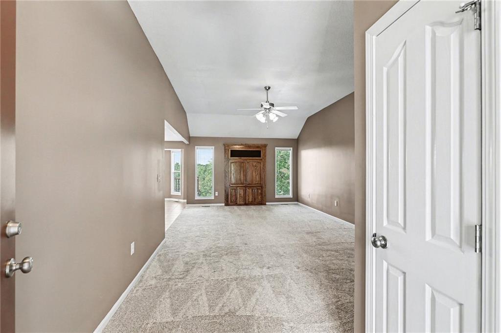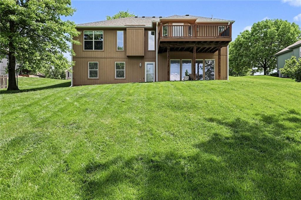 Step into this home and you’re welcomed by a spacious living room with vaulted ceilings and large windows that fill the space with natural light. A built-in feature offers hidden storage for a TV, keeping the room both functional and sleek. The living area flows into a large kitchen featuring classic wood cabinetry, stainless steel appliances, and additional windows for an open, airy feel. Just off the kitchen, you’ll find the dining area with direct access to the expansive deck—perfect for entertaining or relaxing outdoors. Nearby, the laundry room offers convenient access to the garage. Down the hall from the living room is the primary bedroom, complete with a walk-in closet and a private full bathroom. A guest bedroom and an additional full bathroom are also located on this level. The finished basement features a generous family room with large windows and walk-out access to the backyard. This level also includes two additional bedrooms, a full bathroom, and a spacious storage room. Outside, the large backyard is lined with mature trees and backs to an open lot, offering peaceful views and added privacy.