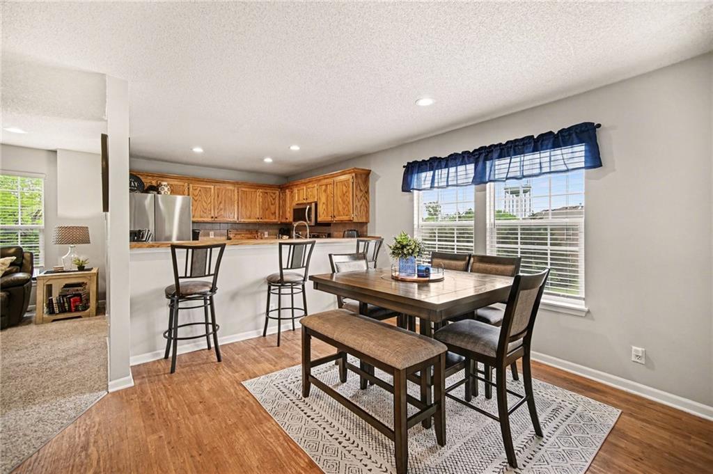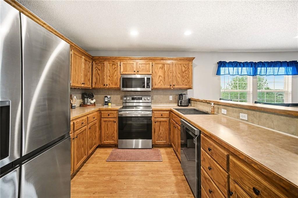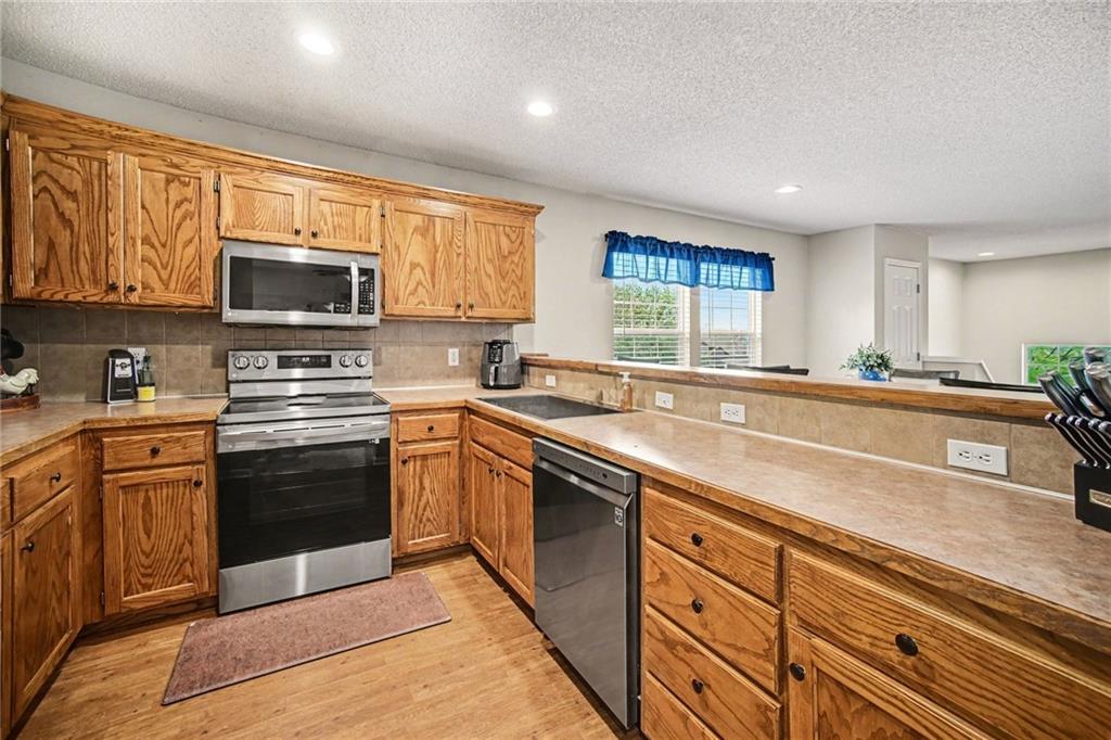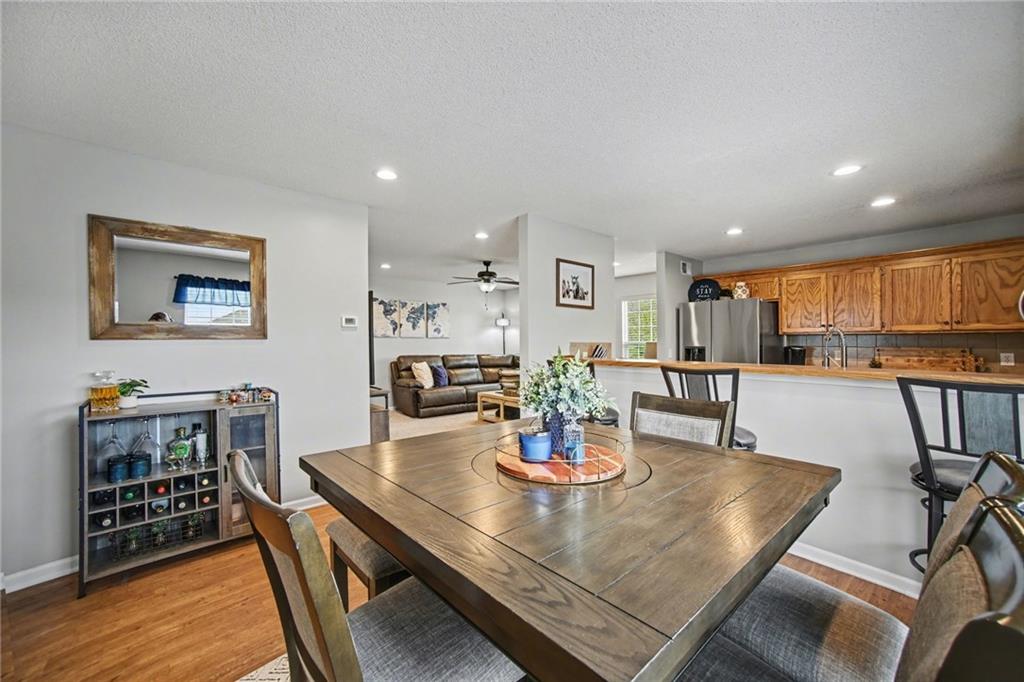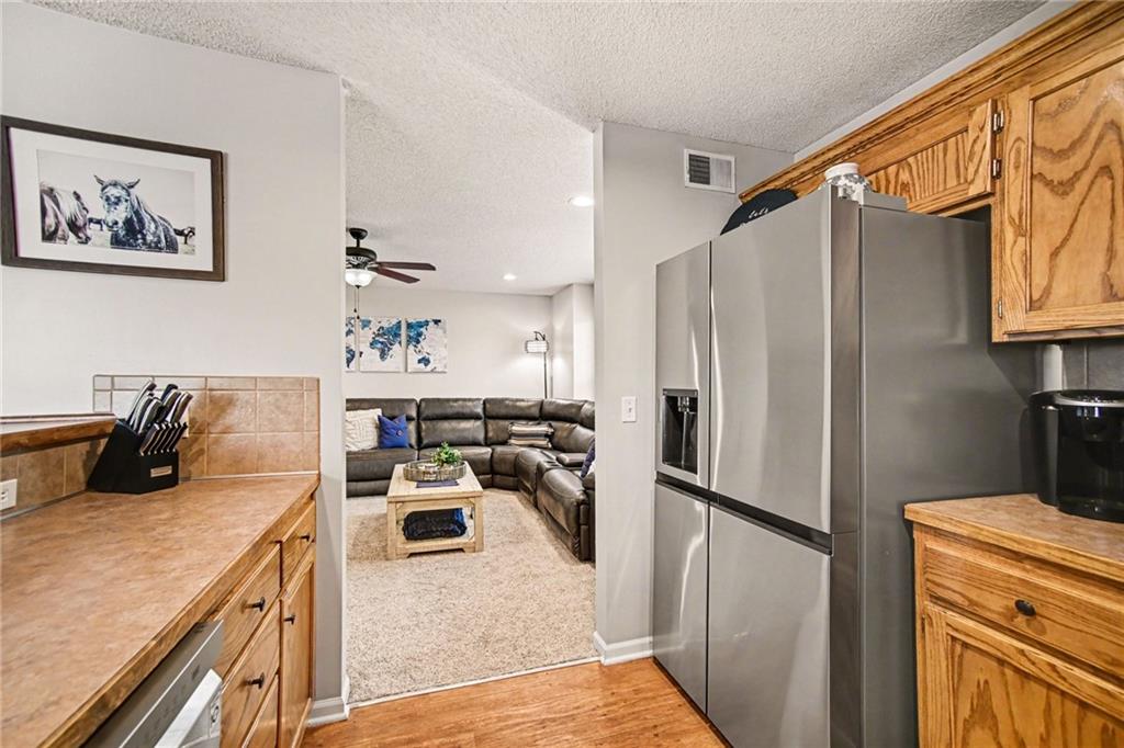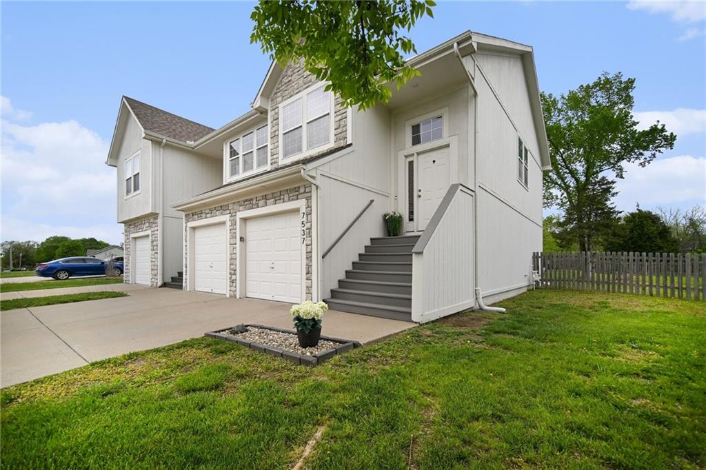 Updated and move-in ready townhome on one of the largest lots in the neighborhood, offering 3 bedrooms, 2 bathrooms, and 1,855 sq ft of comfortable living space in a desirable Shawnee location with easy access to major highways. This split-entry home features a functional layout with a spacious main living area, abundant natural light, and an updated interior with newer carpet, fresh paint, and modern lighting throughout. The kitchen is equipped with stainless steel appliances, including a refrigerator with craft ice maker, and flows seamlessly into the dining and living spaces. Bedrooms offer generous space and flexibility, while the finished layout provides room for everyday living and entertaining. Situated on an oversized lot, the fully fenced backyard includes an extended concrete patio, creating ideal outdoor space for relaxation or gatherings. Additional highlights include a 2-car garage and numerous recent updates, including a newer roof, water heater, and regularly serviced HVAC system. The neighborhood offers access to community green space, playground, and basketball court, providing added convenience and recreational options. Located near shopping, dining, and major highways, this home combines low-maintenance living with a convenient location.