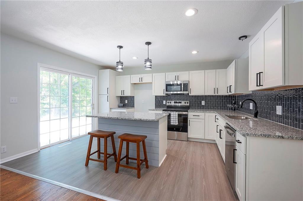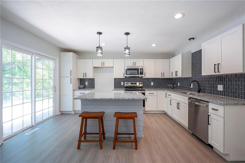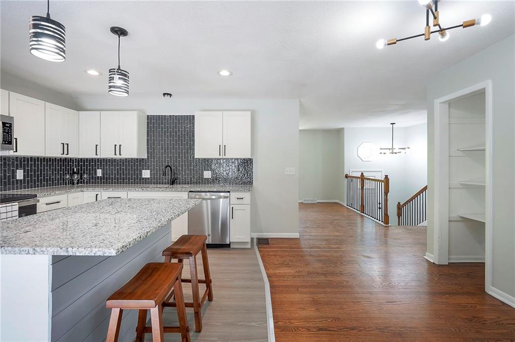 Amazing top to bottom rehab. Beautifully refinished 3 bed 2.5 bath home with a huge garage/workshop in back. Brand new kitchen cabinets, island, breakfast area, granite counters and stainless appliances. Both bathrooms upstairs feature sleek tile, standup showers and all new vanities/fixtures. Newly refinished oak floors with all new plumbing and electrical fixtures. Brand new furnace/AC and front facing windows. Awesome finished basement area features a beautiful kitchenette for entertaining, laundry closet and 1/2 bath. Side driveway leads to large 2nd garage/workshop offering tremendous possibilities. Wonderfully quite street. Owner/Agent.