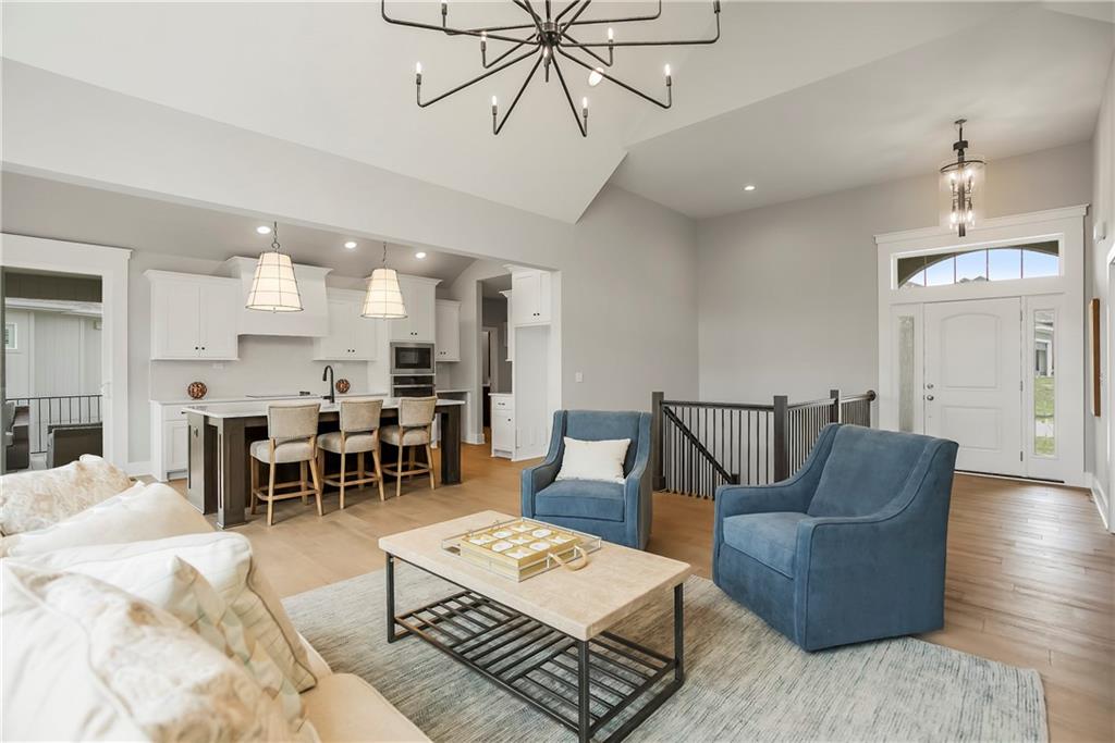 The Sonoma Reverse plan is an open-concept masterpiece designed for effortless entertaining and comfortable, everyday elegance. •Soaring Ceilings: The heart of the home is the Great Room, featuring a dramatic cathedral vault ceiling accented with stylish beams, creating an expansive and light-filled atmosphere. •Gourmet Kitchen: Prepare to be inspired in the kitchen and dining area, highlighted by a signature barrel vault ceiling and stunning hardwood floors. This space flows seamlessly for easy hosting. • Main-Floor Retreat: The private Master Suite offers a true sanctuary. Indulge in the luxurious master bath complete with a huge, walk-in shower and an exceptionally large master closet that provides incredible storage. • Entertainment Hub: The finished walkout lower level expands your living space dramatically. It features a spacious Rec Room, a stylish wet bar for perfect game nights, two large bedrooms, and a full bath—ideal for guests, teenagers, or a dedicated home gym. • Outdoor Living: Enjoy serene mornings and beautiful sunrise on your covered Ever-grain composite deck, offering a low-maintenance, high-style outdoor retreat. This home provides plenty of flexible living space and excellent storage throughout. It truly embodies modern design and is the perfect foundation for the life you've always envisioned. MOVE IN READY - PHOTOS ARE OF ACTUAL HOME. Forest View-a Premiere Rodrock Community featuring Moms Council Events, Water Park, Zero Entry Pool, 50 ft Waterfall Entrance, Sand Volleyball, Playground & Picnic areas. Sport Court includes Basketball & Pickle Ball. Access to Cedar Niles Park/Walking Trails is located within the Community and Lake Olathe Park Nearby.
