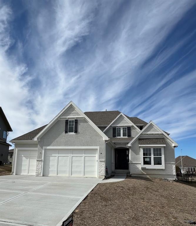Estimated completion in approximately 60 days, The Kingston by Rodrock Homes is a stunning 1.5-story plan offering a main-level primary suite and an executive office/flex room. Hardwood floors extend from the entry into the great room, kitchen, dining area, and pantry. The great room features a soaring ceiling with beams and a see-through fireplace that connects to the covered patio overlooking the backyard. The kitchen includes custom cabinets, a breakfast-bar island, wall oven, gas cooktop, and a walk-in pantry, with time remaining for buyers to personalize most finishes. Convenient main-level laundry offers walk-thru access from the large primary closet into the spa-inspired primary bath, which includes a walk-in shower and dual vanities with upgraded granite. The upper-level landing is open to the entry below and offers three spacious bedrooms, including one with a private full bath and a Jack & Jill bath between the others. The lower level can be finished for added living space, designed to suit future needs. Stonebridge Park is part of the award-winning Stonebridge community, offering four zero-entry pools, two clubhouses with fitness facilities, sport courts, playgrounds, and walking trails. Nearby recreation includes Heritage Park (~0.3 mi) with a 1,234-acre lake, dog park, athletic fields, disc golf course, and 18-hole golf course. Area schools include Prairie Creek Elementary (~0.6 mi), Woodland Spring Middle (~1.0 mi), and Spring Hill High (~5.5 mi). Daily conveniences are minutes away, including local coffee shops (~1–1.2 mi), Natural Grocers (~4.2 mi), and Price Chopper (~4.5 mi). Taxes, square footage, and room dimensions are estimated – Buyer or Buyer Agent to verify.