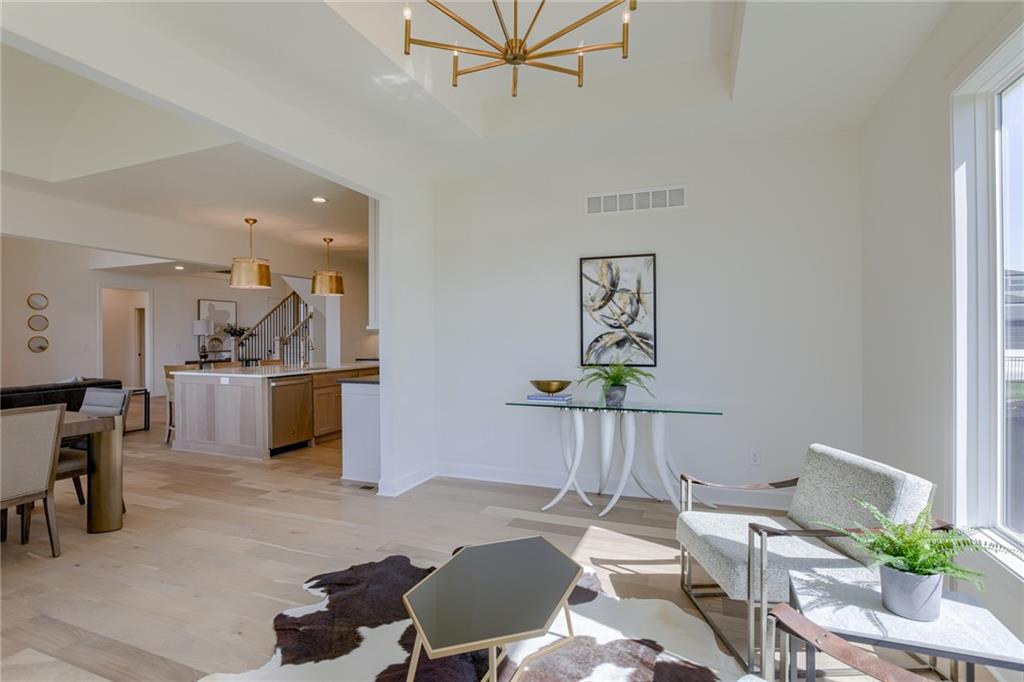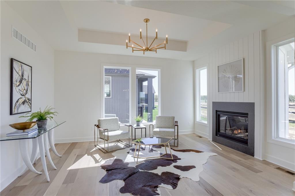 COMING SOON — MOVE-IN READY IN APPROX. 75 DAYS! The award-winning “New Haven” 1.5-story by Rodrock Homes sits on a beautiful corner cul-de-sac lot in the highly regarded Blue Valley School District. Now at the paint stage, buyers still have time to personalize select décor choices for a truly custom finish. A soaring two-story great room with floor-to-ceiling stone fireplace creates a dramatic focal point, complemented by hardwood floors throughout the main living areas. The gourmet kitchen features a large island, painted cabinetry, walk-in pantry, and your choice of granite or quartz countertops. The main-level owner’s suite is a private retreat with dual shower heads, free-standing soaker tub, and a spacious walk-in closet. Upstairs, secondary bedrooms offer comfort and flexibility for family or guests. The lower level includes multiple windows, providing natural light and excellent potential for future finish—ideal for expanding living or entertainment space. Located in Sundance Ridge, residents enjoy access to The Village, offering a relaxation pool, clubhouse, fitness center, and playground. Future phases will add an indoor gymnasium, second pool, pickleball courts, and additional parks. Everyday essentials are close to home—11 minutes to Blue Valley High, 13 minutes to Blue Valley Southwest, and the future Blue Valley elementary located within the community. Plus 16 minutes to BluHawk, 14 minutes to Heritage Park, 9 minutes to Prairiefire, 12 minutes to Target and grocery, and 10 minutes to Martin City dining. Just minutes from the future Camp Branch Park, with trails and natural spaces connecting the community to upcoming outdoor recreation. No site costs and no escalation clauses! Photos and video are of a former model and may show options not included.