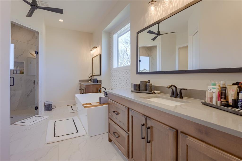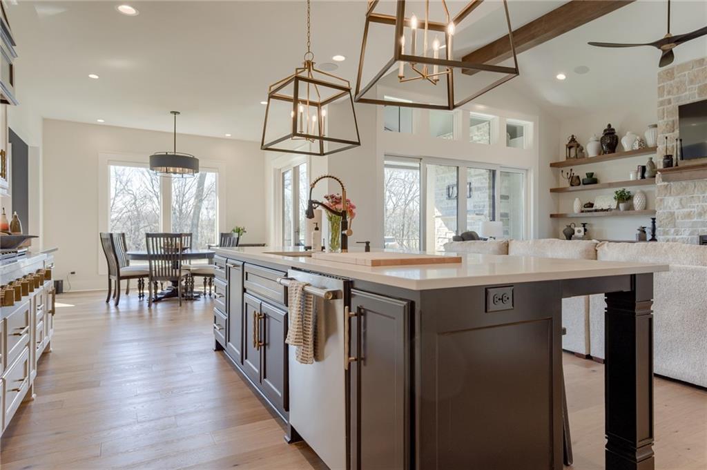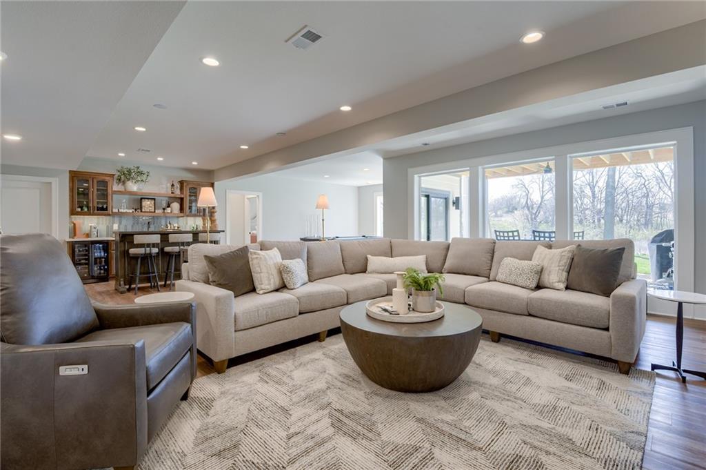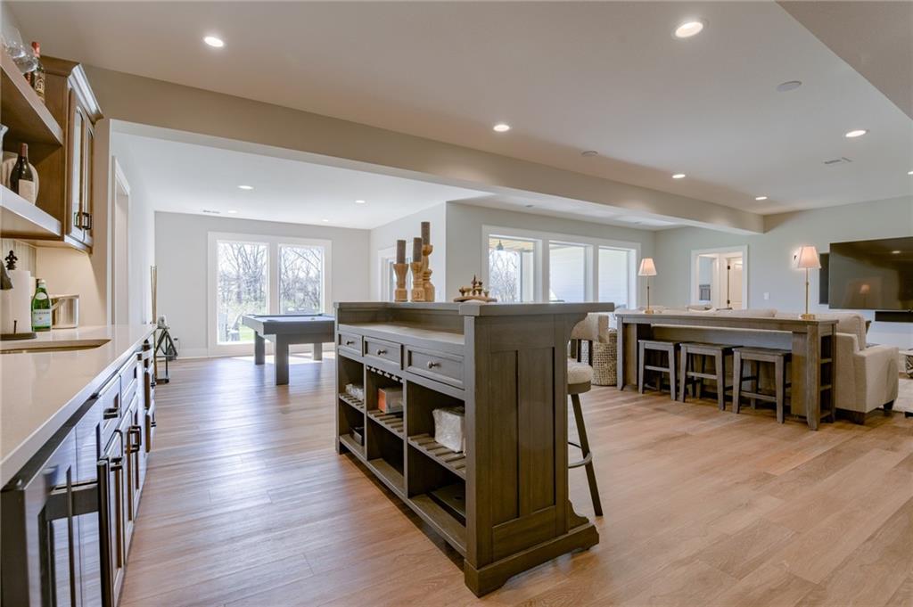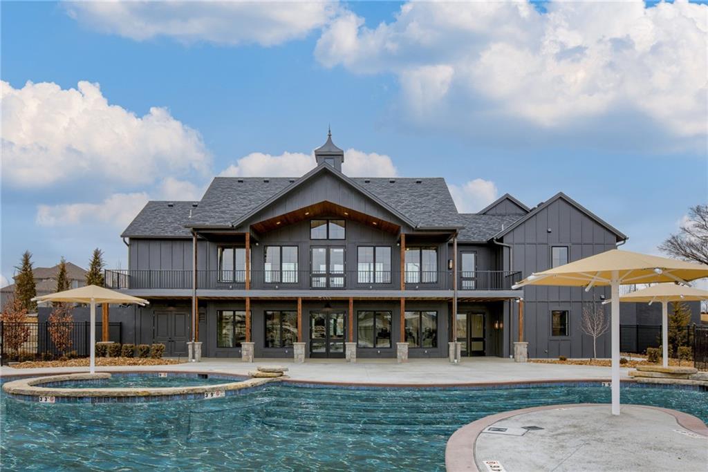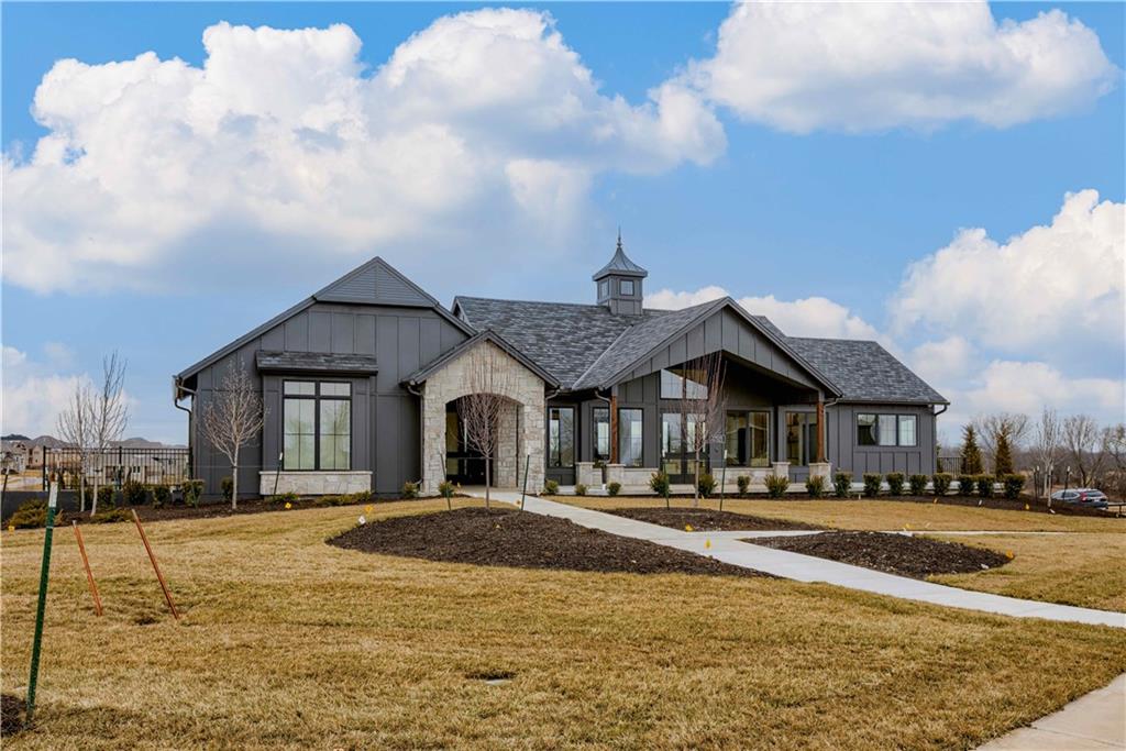 The stunning Santa Fe Reverse 1.5 by Rodrock Homes features soft-contemporary styling with four-sided construction, low-pitch rooflines, and elegant stone accents. A 4-car garage (2 front, 2 side) offers ample space for vehicles, storage, and toys. The center-island kitchen overlooks a spacious Great Room with a vaulted ceiling and detailed trim accents. A cozy Hearth Room off the breakfast area includes a fireplace for quiet everyday enjoyment. The resort-style Primary Suite offers an oversized walk-in closet, separate tub and shower, and convenient access to the main-level laundry. The main level also includes a flexible Study/Bedroom with a private full bath. The finished lower level is designed for entertaining—featuring an elegant wet bar, media area, space for a game table, and generous secondary bedrooms each with their own baths. Enjoy beautiful wooded scenery from the covered deck. Located in Sundance Ridge, residents enjoy a multi-million-dollar amenities center, The Village, offering a welcoming clubhouse and two swimming pools. Additional planned amenities include a state-of-the-art indoor gymnasium, pickleball courts, bocce ball, playground, community garden, and nature trails connecting all three neighborhoods. Resort-style clubhouse, fitness center, and the first pool are now open! Home is currently under construction and will be completed in approximately 60 days, featuring high-end upgrades and designer selections throughout for a truly show-stopping finish. Photos shown are of a previous model home.