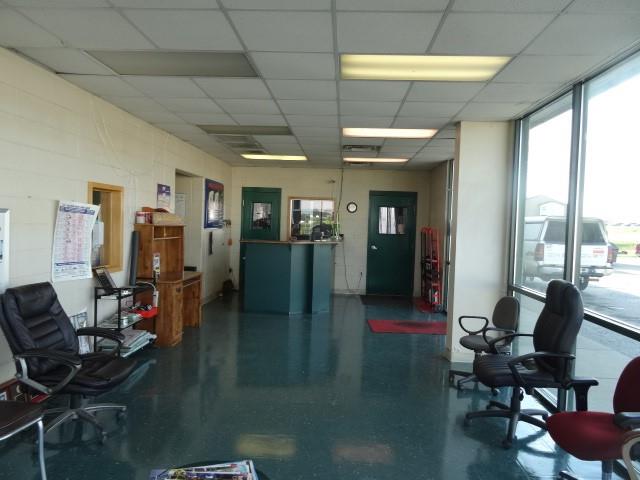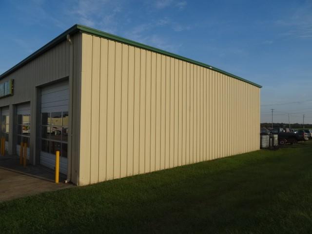 Full Operating Auto Repair Shop 1/2 City Block. Butler Bld all steel/Conklin Co white reflected roof. (6) 12' roll up doors, (2) 14' roll up doors, 3 phase power, 10x19 office space, 15x34 Show Room, (6) Lifts, (2) 12,000 lb. lifts, (2) 14,000 lb. lifts. Open front Alignment Machine & Rack. 1000 Gallon Buried Containment Tank drain in floor--separates oil & antifreeze. 24x40 Storage Rm. 50x105 Shop, 175 lbs. of constant air pressure from 2 tanks. Oil Changes, Breaks, Shocks, Struts, Tune-ups, Air Conditioning, Alignment. Winter Gas Furnace, Electric Air, Close to I 49. Located with easy access to highway. Full service/tire repair & purchase. Mechanic on duty, South & North Doors for great summer ventilation. Concrete parking, Storage loft, 2 bathrooms. 26' Inside clearance. Customer Service & Courtesy is #1