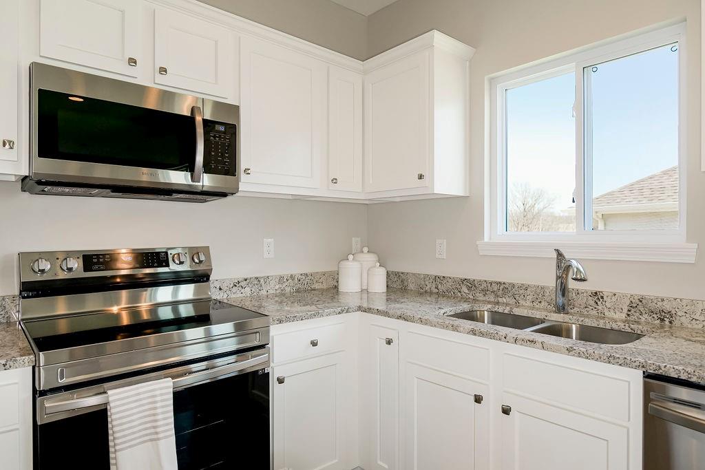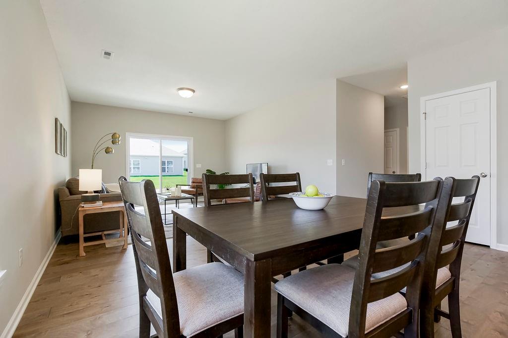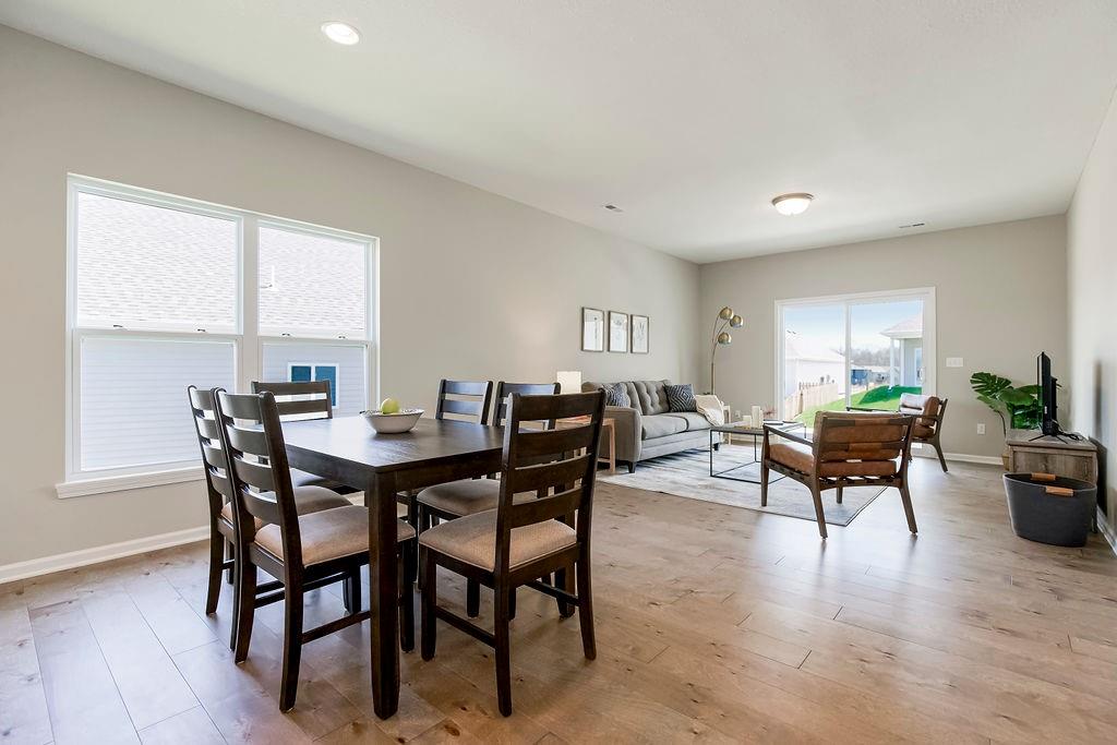 COMMUNITY CLOSE OUT - LOADED MODEL HOME NOW FOR SALE! This home is loaded with extras including: upgraded lighting, screened in porch, kitchen fridge, primary bath shower door, elongated toilets, garage door opener and greenspace lot. The Addison - One Level RANCH Living with a covered patio. Low maintenance exterior and fence-able yard. Our largest wide open floorplan at 1,458 square feet. Standard features: upgraded granite kitchen counters, white shaker cabinets, kitchen island, nice sized pantry, white oak wood floors in kitchen, entry, dining area and great room, big laundry room, high efficiency Carrier HVAC. Our Dupont Tyvek vapor barrier system keeps your home warm in the winter, cool in the summer and keeps utility costs down to a minimum. Energy seal foam and caulk package too! Modern color scheme (paint, counters, flooring and more) Local ownership with local vendors who live in your community - all backed by a 10 Year Insured Structural Warranty. Minutes to shopping, dining, and medical. Lawn maintenance / snow removal for $180/month including club house, pool and fitness rm. All homes in this community are FHA/VA financing Friendly. Community is near completion with 4 homes remaining from $319,950K.