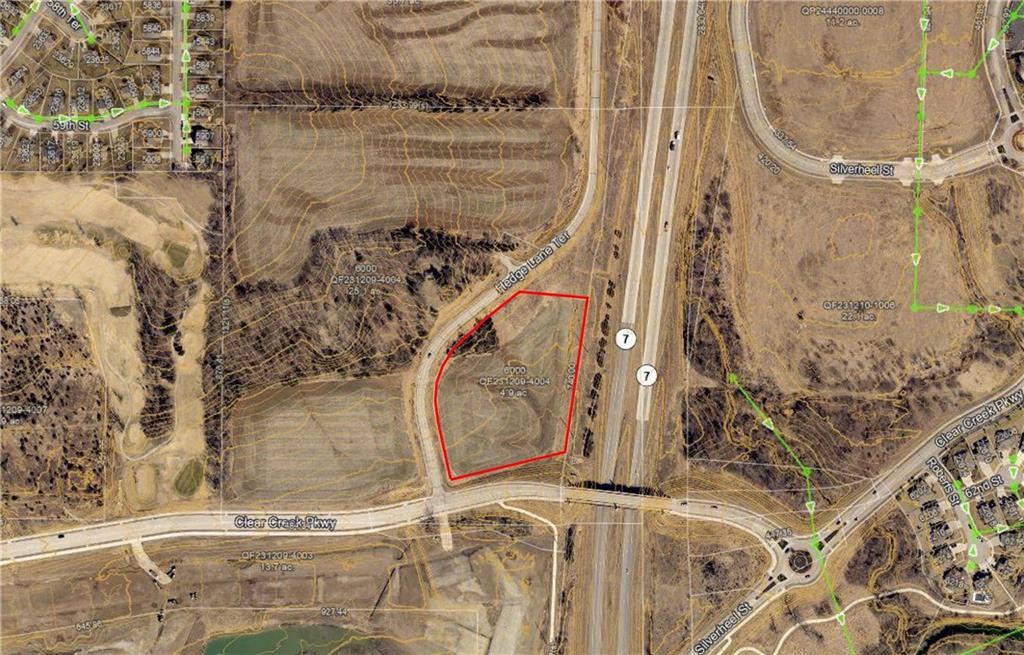Amazing development opportunity. Excellent visibility from K-7 Highway. Frontage road already built through site, with water line. 5 acre tract planned for Commercial zoning (currently AG zoning). There is also 25 acres across Hedge Lane Terrace that is also available. Ready for your Commercial Project!