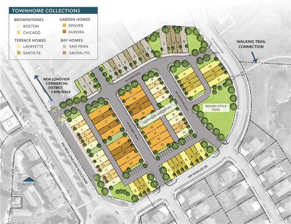 This Denver end unit shines with added windows that bring in exceptional natural light throughout its open-concept layout. The Denver is the largest plan available at the Village at New Longview—crafted for those who want room to live and space to grow in a low-maintenance setting. With nearly 2,000 square feet of finished space, plus a full unfinished basement pre-plumbed for an additional bath and bedroom, this home offers unmatched flexibility. Inside, you'll find: Three full bedrooms and 2.5 baths, including a primary suite with dual walk-in closets, An open-concept main level ideal for entertaining or everyday life, A generous kitchen with modern finishes and smart storage, Enjoy the outdoors with a private, fenced courtyard-style patio, and direct access to your two-car garage through a covered walkway—providing both convenience and charm. Built with energy efficiency and long-term value in mind, the Denver also includes: HOA-covered exterior maintenance for lock-and-leave ease, Optional basement finish for future fourth bedroom and third full bath, Immediate availability—move in this summer. Whether you're upsizing, right-sizing, or relocating, the Denver delivers comfort without compromise.