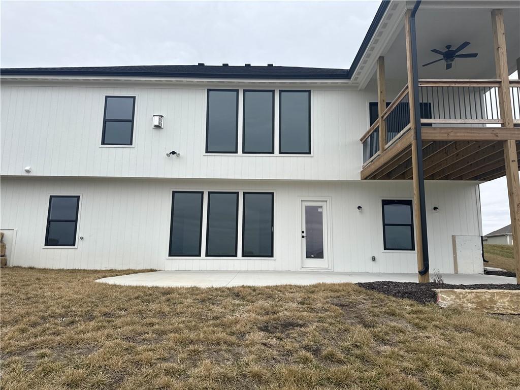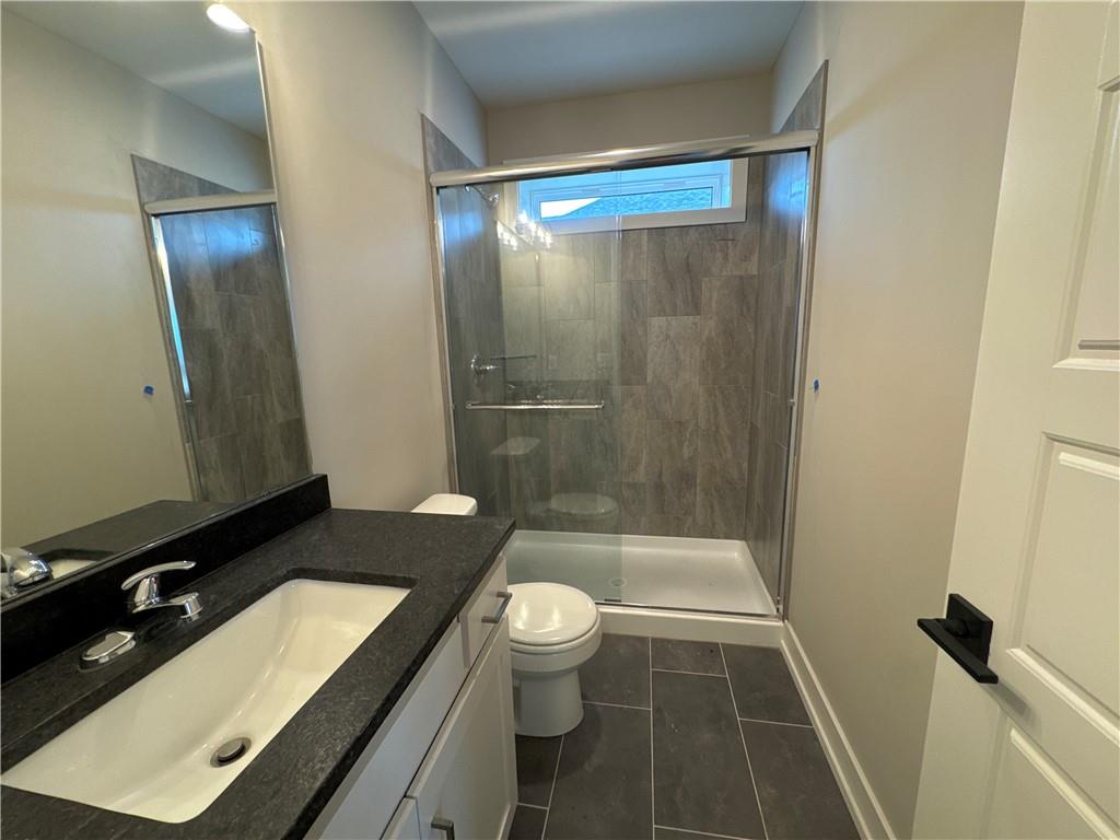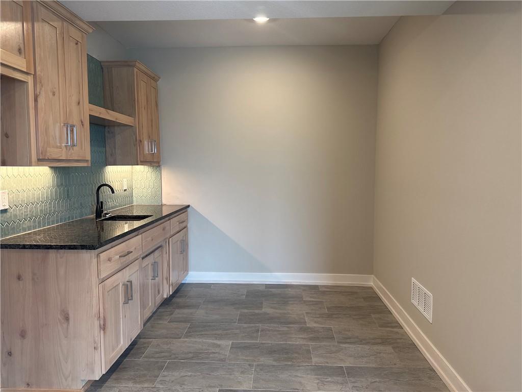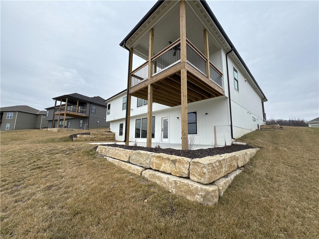 "The Ashton II," an exquisite reverse 1.5 story residence with an extra large granite island, corner stone fireplace, private mud room, walkthrough master closet, jacuzzi tub in master, master shower with granite seat, dual quartz vanity in main, lot close to an acres, composite covered deck, extra large concrete pad in back, walkout basement, 2 full bathrooms in basement, HE furnace, blown in insulation. Laundry on main level. Wood floors through main floor primary bedroom. Walk in pantry. Wet bar in the walkout basement with room for a full size fridge. One bedroom in the basement has an en-suite bathroom. Complete with front porch and in ground sprinkler system. All square footage is approximate. This home is complete and move-in-ready!