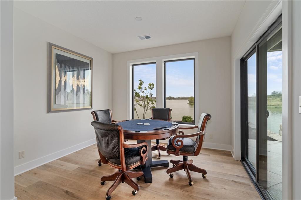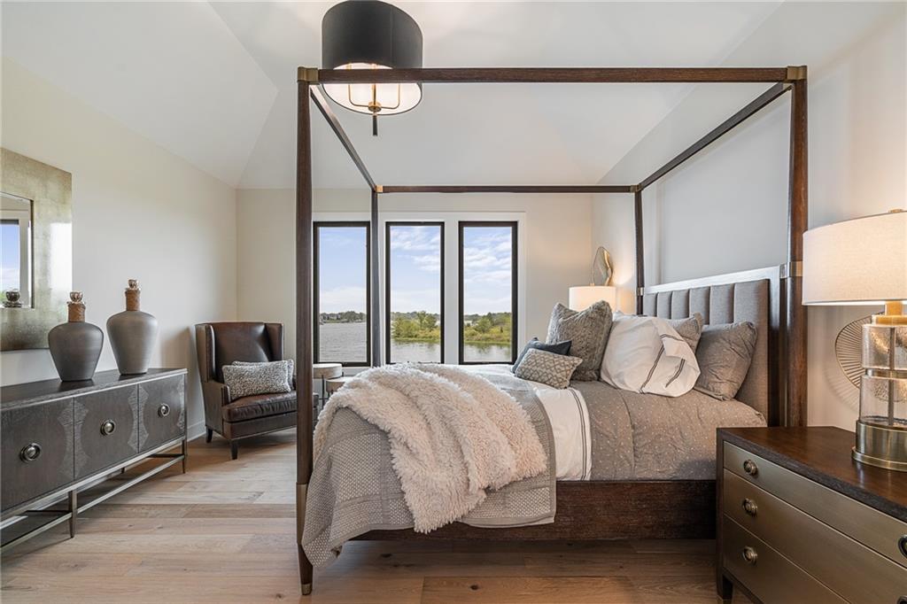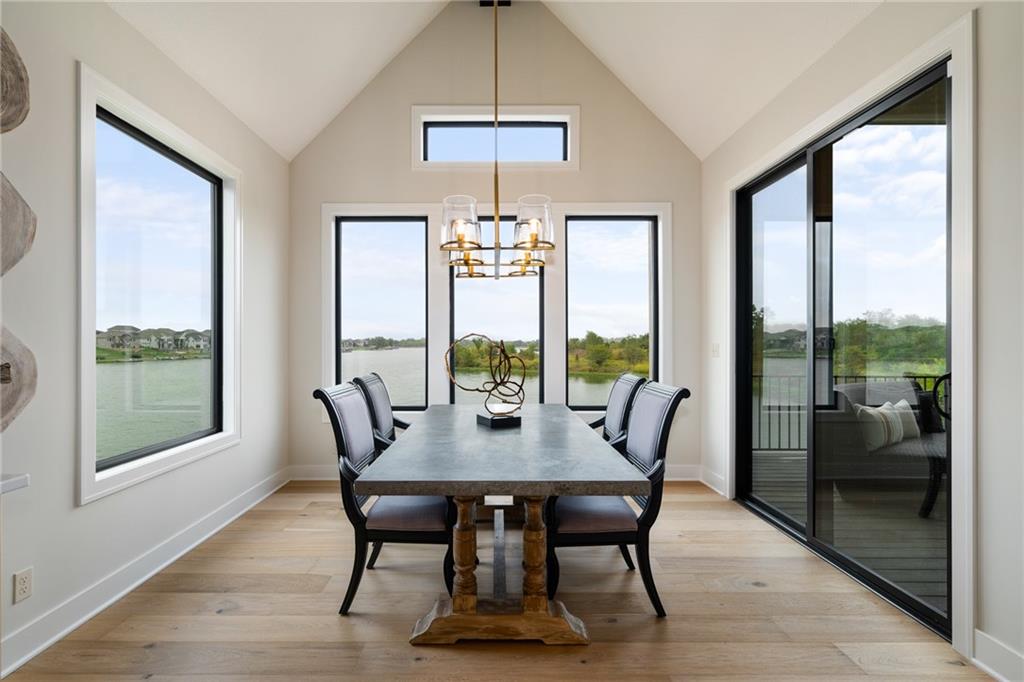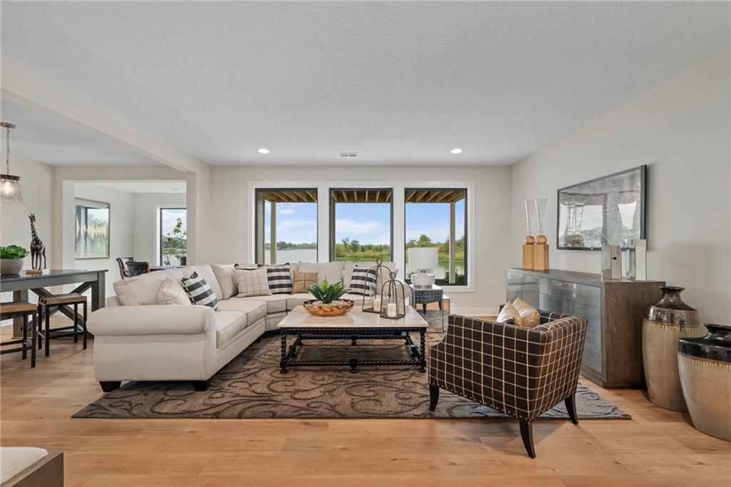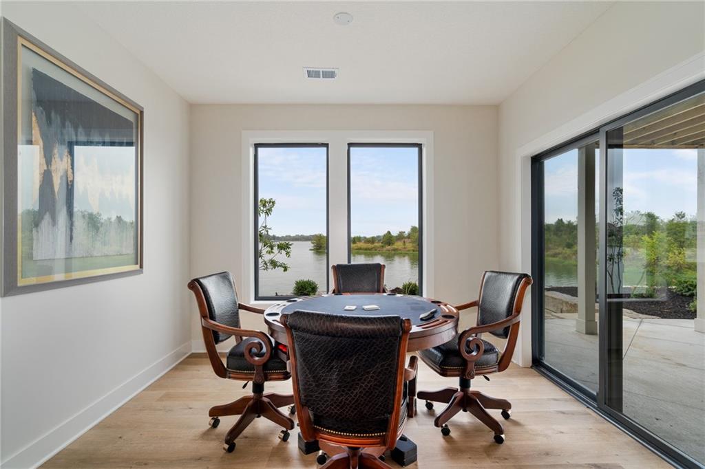 Show stopping Dusty Rhodes "Laguna" plan offers a new look for reverse 1 1/2 story buyers wanting to live on the lake. Walking through the double door entry of this home, your first glimpse of the soaring beamed ceilings with massive open doors to the covered deck with fireplace inviting you tio view the lake. The openness of the main level has large private owner's suite which includes large bath with shower and tub and walk-in closet and laundry room. Huge great room with fireplace, large gourmet kitchen with butler's pantry, expandable dining area, plus a private flex room for an office,additional bedroom, or study with it's own bath. Wait until you see the lower level that has 3 entertaining areas(media room, game room and bar area. Two additional bedrooms, and 2 1/2 bath completes the walk-out lower level.which leads to the lake. This spacious 3583 sq. ft. home with 4 bedrooms, 4 1/2 baths is the perfect plan on one of the nicest Creekmoor Lake lots. Living on the lake allows you to have your own dock to dock your boat, and private lake access. Additional Creekmoor amenities include use of golf course (paying only a green fee) use of the exercise facility, pools, walking/biking trails, sport's courts as well as the convenience of Tavern on the Moor restaurant makes living at Creekmoor complete. HOME IS A MODEL AND NOT FOR SALE AT THE PRESENT TIME