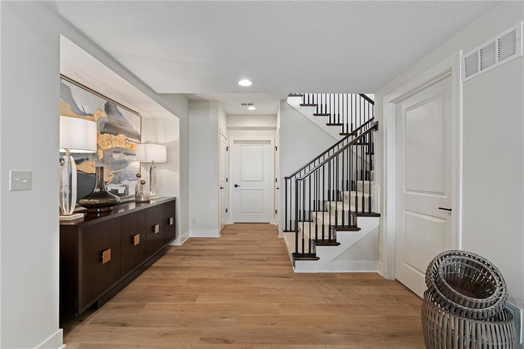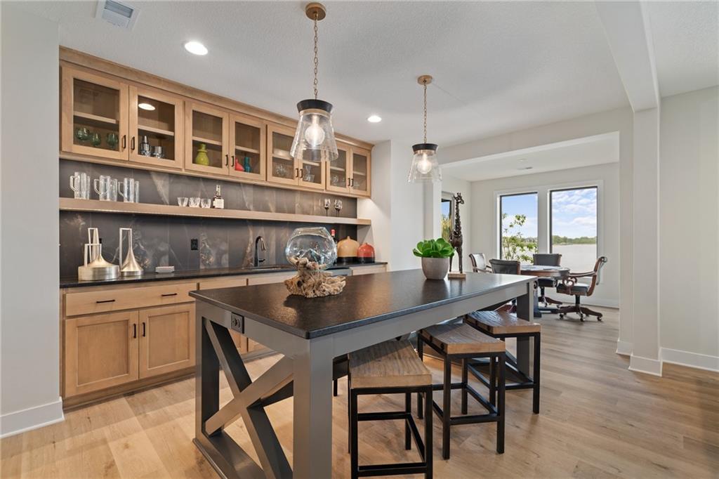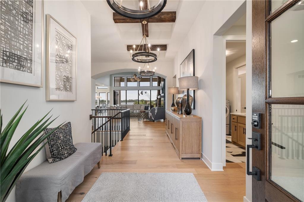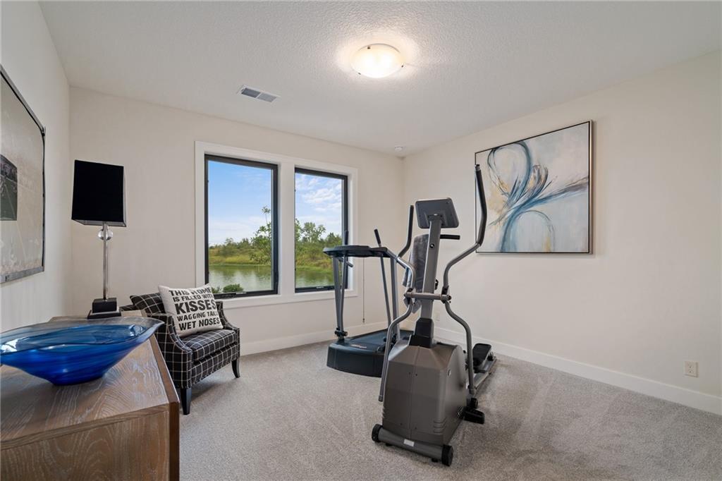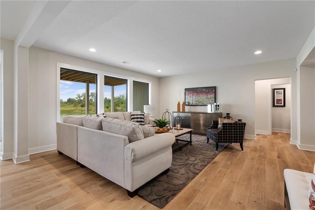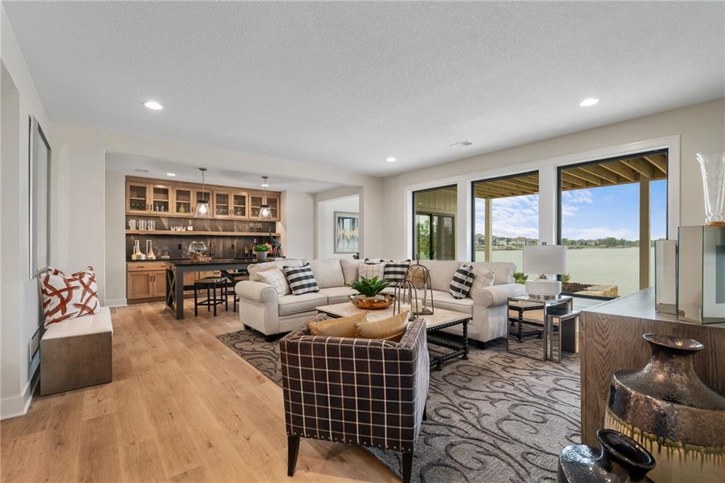 Show stopping Dusty Rhodes "Laguna" plan offers a new look for reverse 1 1/2 story buyers wanting to live on the lake. Walking through the double door entry of this home, your first glimpse of the soaring beamed ceilings with massive open doors to the covered deck with fireplace inviting you tio view the lake. The openness of the main level has large private owner's suite which includes large bath with shower and tub and walk-in closet and laundry room. Huge great room with fireplace, large gourmet kitchen with butler's pantry, expandable dining area, plus a private flex room for an office,additional bedroom, or study with it's own bath. Wait until you see the lower level that has 3 entertaining areas(media room, game room and bar area. Two additional bedrooms, and 2 1/2 bath completes the walk-out lower level.which leads to the lake. This spacious 3583 sq. ft. home with 4 bedrooms, 4 1/2 baths is the perfect plan on one of the nicest Creekmoor Lake lots. Living on the lake allows you to have your own dock to dock your boat, and private lake access. Additional Creekmoor amenities include use of golf course (paying only a green fee) use of the exercise facility, pools, walking/biking trails, sport's courts as well as the convenience of Tavern on the Moor restaurant makes living at Creekmoor complete. HOME IS A MODEL AND NOT FOR SALE AT THE PRESENT TIME