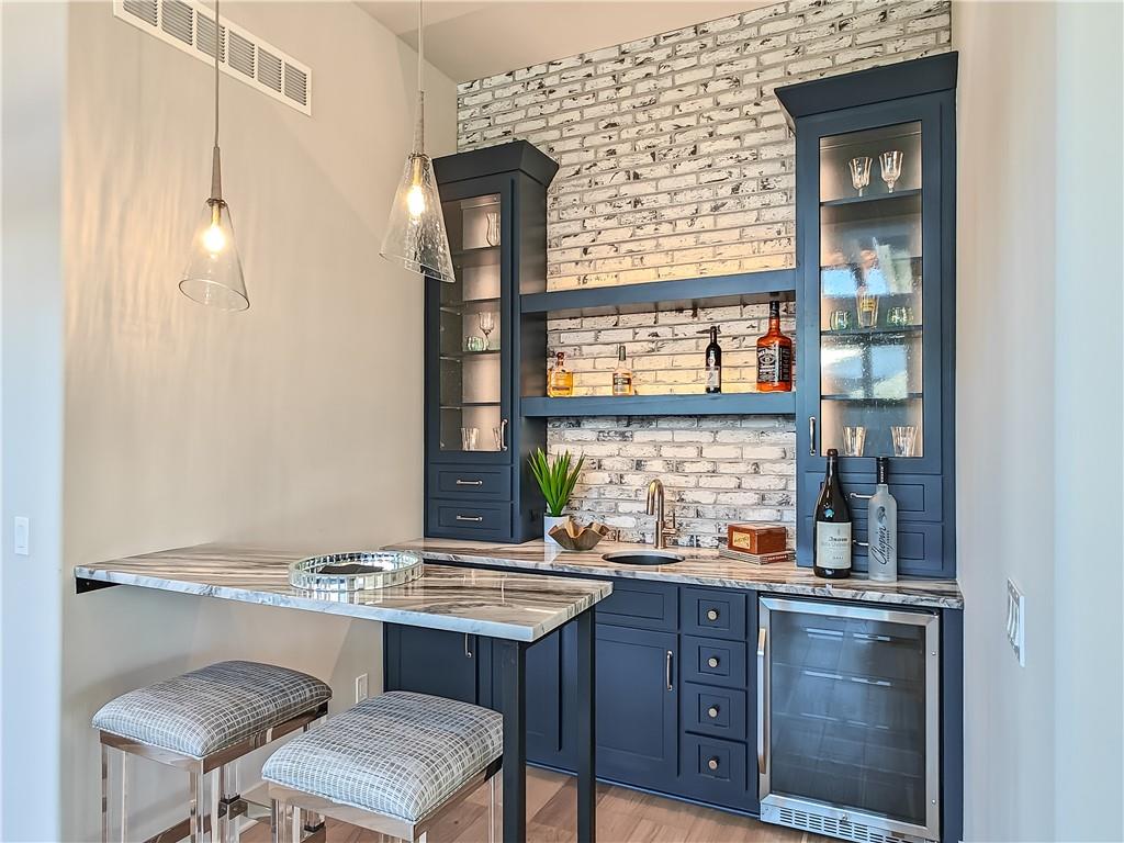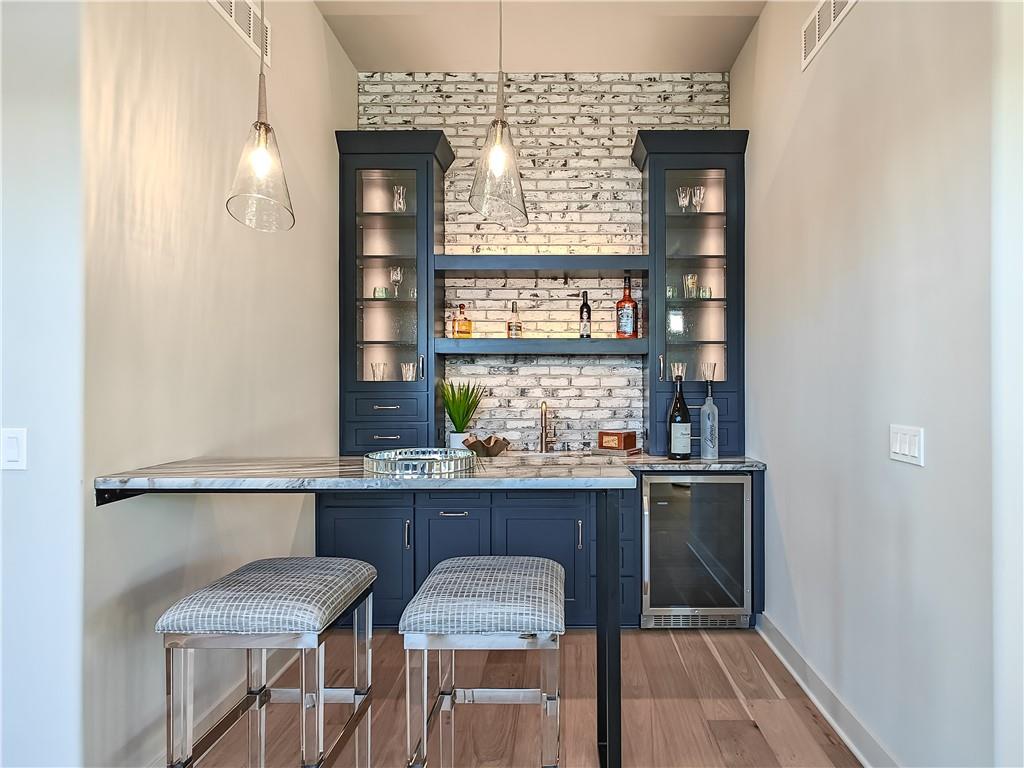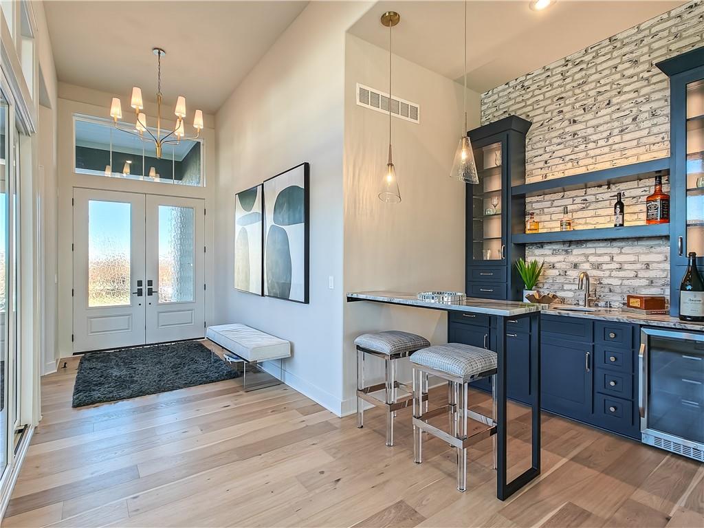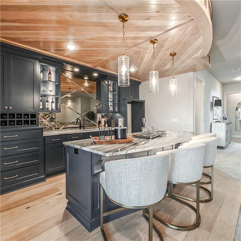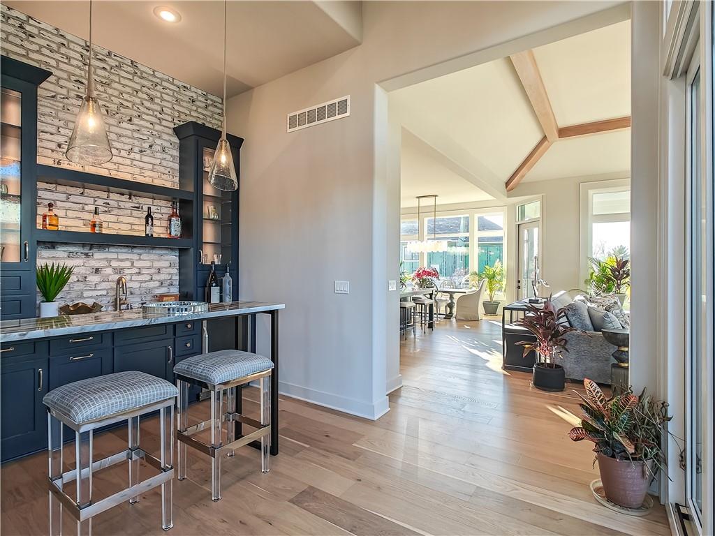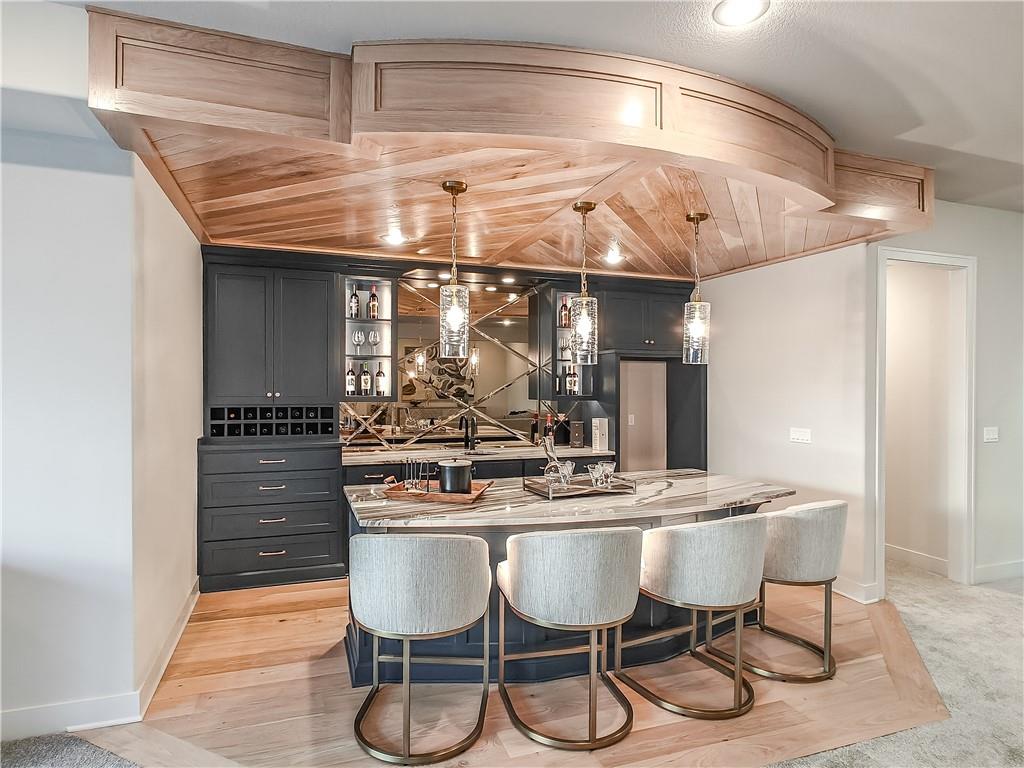 MODEL HOME - NOT FOR SALE. lot 178, Enticing Don Julian award winning Courtland Reverse plan under construction. Located in the Estates of Terrybrook Farms, lot 178. Incredible floor plan; great for the entertainer in you! Step into the entry where you are greeted with the bright office with adjacent exterior Courtyard filled with natural light. Beautiful kitchen with double sized island great for family get togethers or entertaining friends. Open great room opens to another patio for relaxing outdoors. The Primary Suite is gently tucked in the corner of the home for privacy and solitude. Towards the hall off the garage is a second bedroom with nice closet and bath. Overnight guests will love it! There is also a separate half bath!!The lower level features a dedicated bar, large open space for catching the latest movie or playing a game of pool or poker. Two additional bedrooms and bath finished off the living space. Step outside to the walk up walk out with great privacy. Stairs lead you to the upper level side of the home.