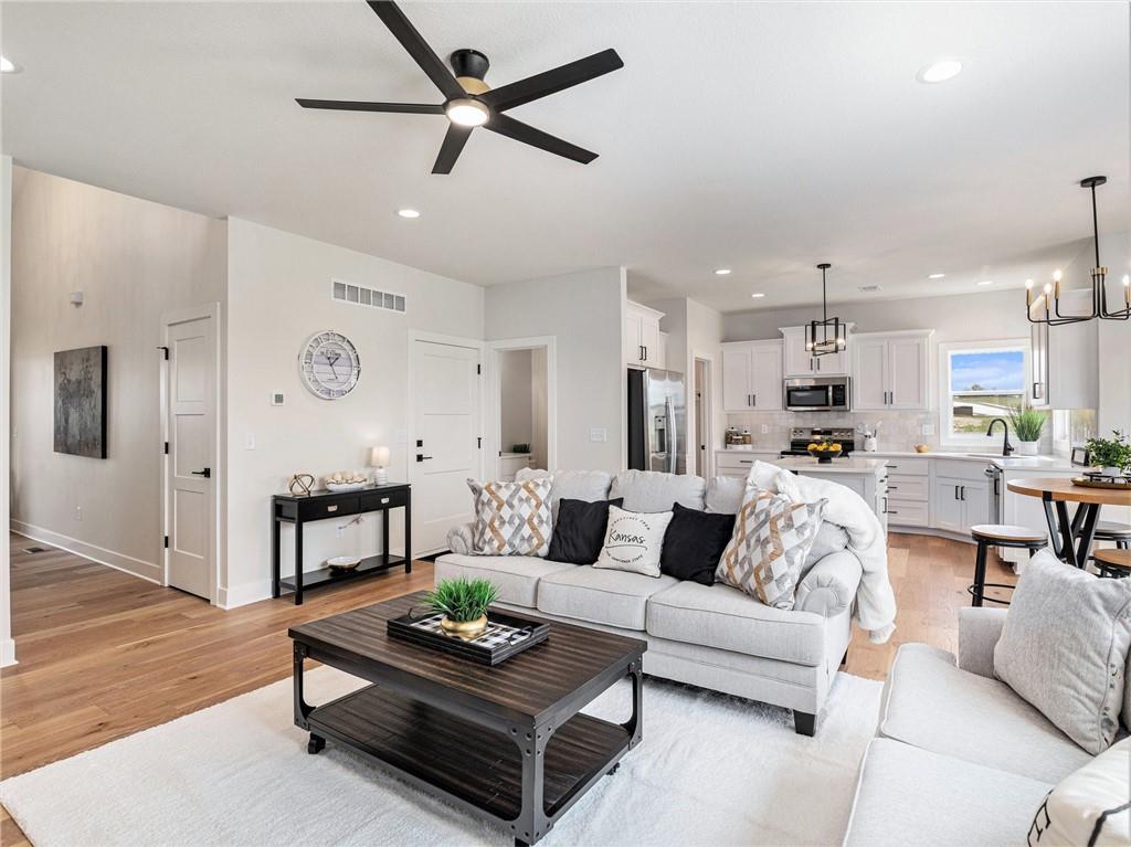 ***2-STORY MODEL HOME NOW FOR SALE*** The MADISON! Modern Farmhouse Design! Upgraded Features Include: 3-CAR GARAGE with EPOXY Floor FINISH ($8,600 Value!) Large Open Kitchen with ISLAND, QUARTZ Countertops, Soft Close Cabinets and Drawers! Large WALK-IN PANTRY, Built-In Spice Rack, Stainless Steel Appliance Package and Composite Sink! BREAKFAST Nook Opens to Covered and Extended PATIO! Beautiful HARDWOOD Floors Throughout First Floor and Second Story Hallway! Large GREAT Room with Stunning STONE Direct Vent Fireplace! OPEN RAIL to 2nd Story with Large PRIMARY Suite with Spacious Walk-In Closet, Hardwood Floors, X-Large Custom Tile Shower, Pivot Shower Door, Barn Door and QUARTZ Vanity Top! Large LAUNDRY Room with Tile Flooring and BUILT-IN Cabinet! Hall Bathroom offers Double Sink, Custom Tile Tub/Shower and Large Built-In LINEN Cabinet! FINISHED Basement with X-Large Rec-Room with Luxury Vinyl Plank Flooring, WET BAR with Quartz Top, Floating Shelves and 3rd Bathroom with Tile Shower ($45,000 Value)! Upgraded Lighting Package Throughout! SPRINKLER System and Upgraded LANDSCAPING Package ($12,500 Value)! Upgraded Black Window Package! High Efficiency HVAC with Humidifier! Square footage and room sizes are APPROXIMATE from Builder or Blueprint. Owner/Agent. Minutes From The Legends! Award Winning Blue Ribbon BASEHOR LINWOOD Schools!