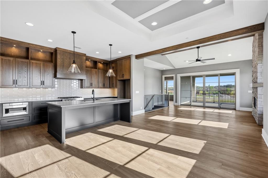 *READY NOW/COMPLETED AND PRICED BELOW REPRODUCTION!* The Kensington by Lambie Homes is a paired-villa plan on daylight lot 2/D4, that offers 4 bedrooms, 4 bathrooms and a 2-car side entry garage WITH ZERO ENTRY FROM GARAGE TO HOME. At over 2,679 sq ft, this home offers thoughtfully edited living and entertaining space in Regents Park--the area's premier luxury maintenance-provided community. This reverse story and a half plan features an open living, dining, and kitchen concept with a walk in pantry and mudroom. The first floor is comprised of the primary bedroom suite, full laundry room, flex room (perfect for a guest room or home office), additional full bathroom and a spacious covered deck. The lower level features 2 bedrooms with walk-in closets and accompanying bathrooms, large family room and a walk-up bar. Lush landscaping creates a picture-perfect setting and required elevated exterior elements include concrete tile roofs, durable acrylic stucco siding and natural stone accents set this neighborhood apart. Regents Park Leawood offers private neighborhood amenities which include a pool and pavilion, pickleball, dog park and a walking trail, located right off of the 135th St. corridor! SPRING PARADE OF HOMES 2025--2ND PLACE/SILVER AWARD FOR DISTINCITVE PLAN & DESIGN!