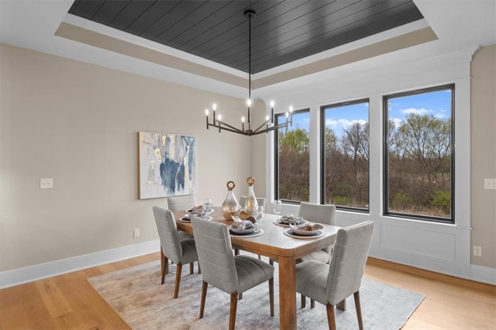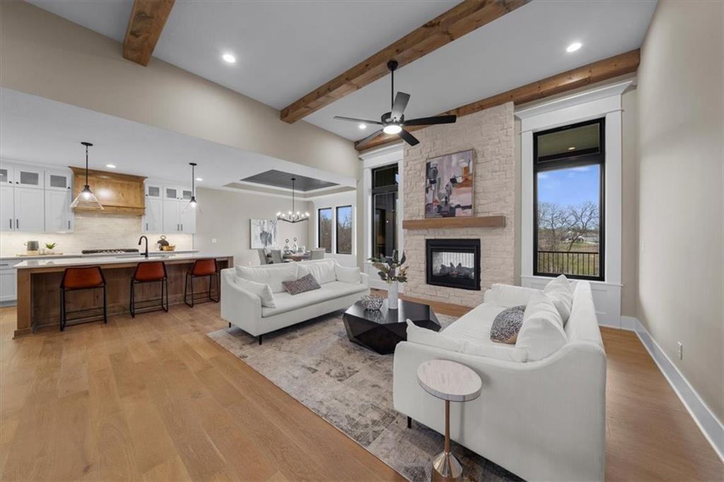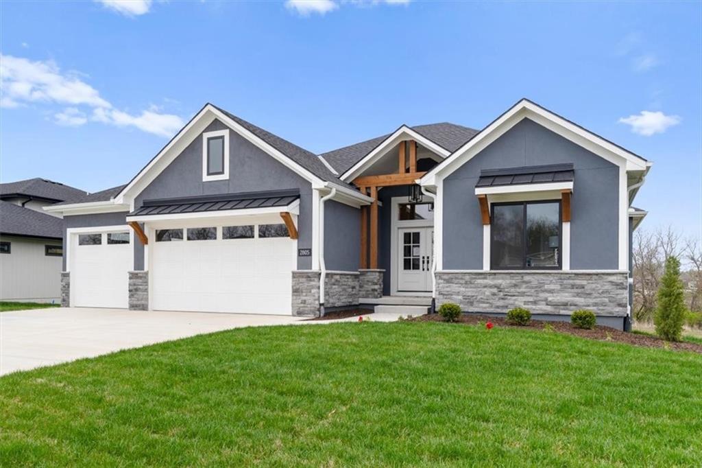 The Phoenix II by Walker Custom Homes is a stunning Reverse 1.5 Story home offering 4 bedrooms and 3 bathrooms on a serene walkout lot backing to greenspace. This home is designed with beautiful details and offers an exceptional outdoor living experience, complete with a wonderful fireplace on your back deck. The great room features enormous windows that showcase the see-through fireplace. The home is spacious and open, featuring vaulted ceilings throughout. The gourmet kitchen is designed for both functionality and style, making it perfect for everyday living and entertaining. The luxurious master suite includes a freestanding tub, designer tile, and a spacious layout that provides both comfort and elegance. Located in Hook Farms, Hunt Midwest’s newest and fastest-growing Lee’s Summit community, this home offers access to over 65 acres of green space, a community pool, wooded walking trails, and an upcoming community garden. The community is part of the highly rated Lee’s Summit school district.