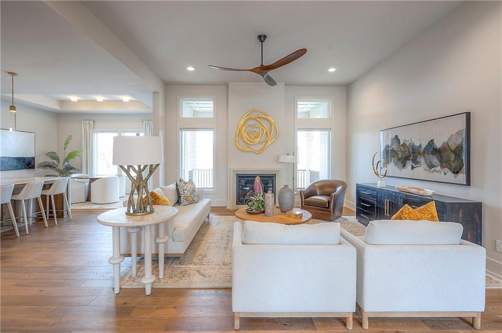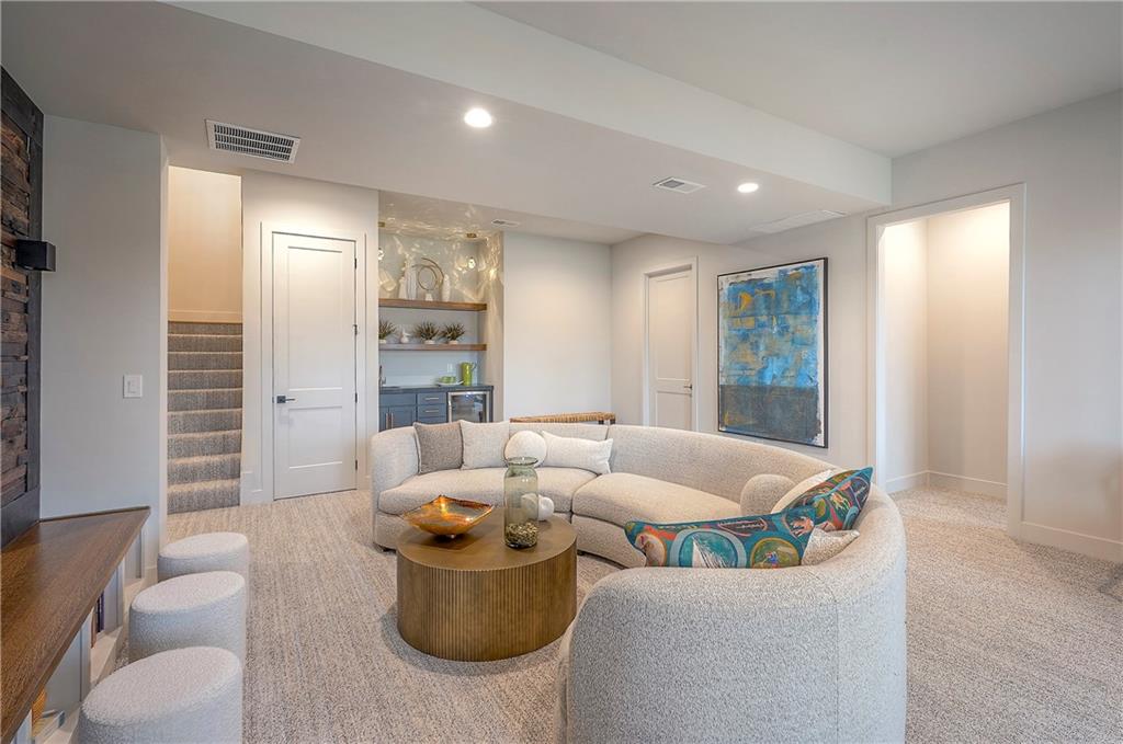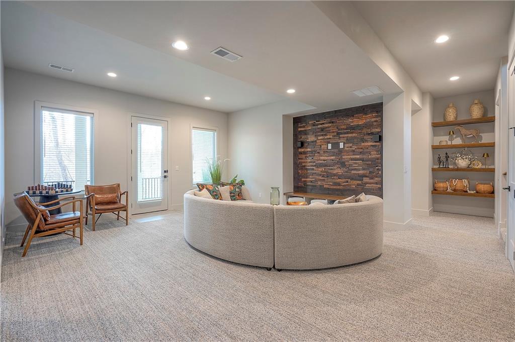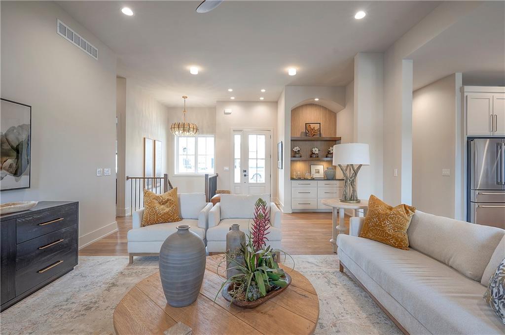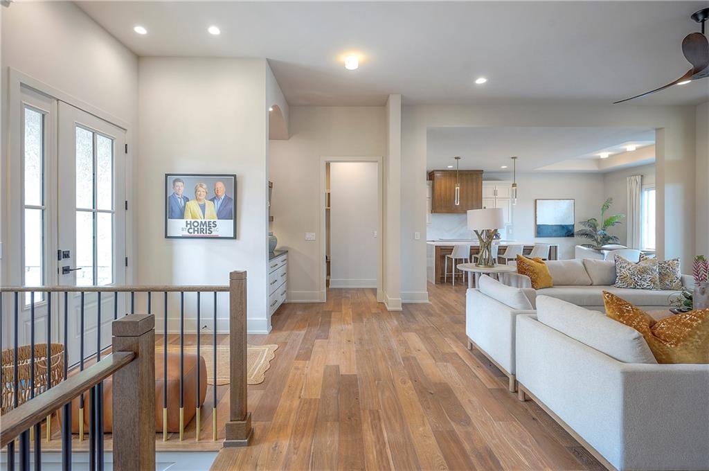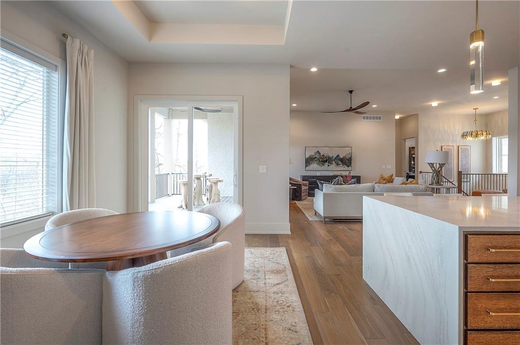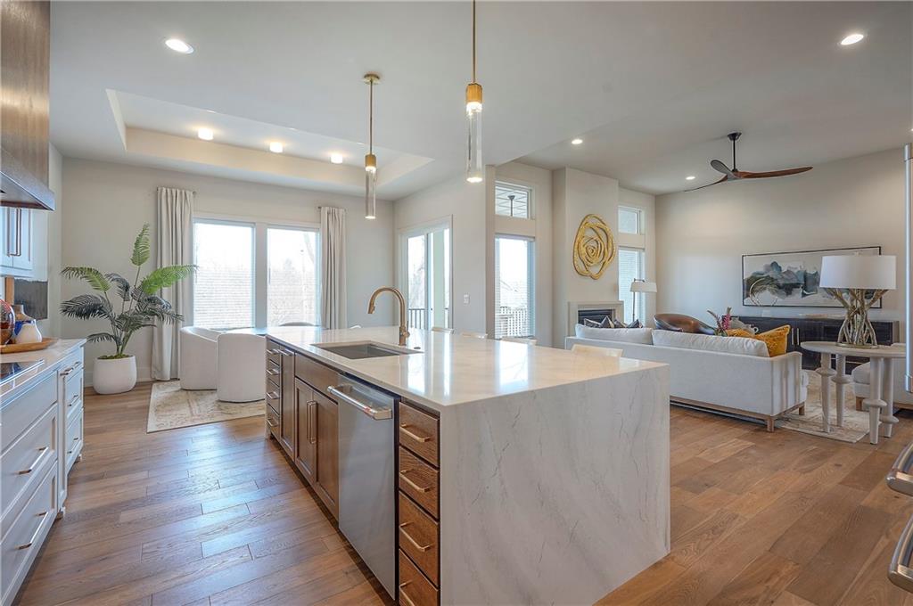 AWARD-WINNING Reverse 1- 1/2 story thoughtfully built by Homes by Chris--Beautiful Parker plan. Easy main level "zero-entry" front with no steps. This open floor plan offers LOTS of natural light and tall ceilings! Primary bedroom suite features a laundry in the walk in closet. Main level includes the 2nd bedroom! Great room with beautiful fireplace, blinds & drapes, and views trees. Extra-large dining area! Enjoyable, large covered deck with ceiling treatment and fan. Cook's kitchen (waterfall quartz) with upscale appliances, Advantium micro, professional-type hood, Induction cooktop, AND fridge and LARGE walk-in pantry (could hold computer station)! Attractive dry bar on main level for entertaining and convenience! Mud room with lots of cubbies enters from zero-entrance garage. Fabulous lights and fans, "cool stair rails," beautiful plumbing features (and terrific sink). Window treatments stay. Lower level features a large Rec room with "feature" wall, wet bar & beverage fridge, and 2 additional, sizable bedrooms. Walk out lower level to covered patio. Security system! Tile Roof, low maintenance exterior! Significant additional storage in unfinished area. Homes by Chris = top quality! The Reserve consists of 3 streets = one large cul-de-sac! This is the maintenance provided area of Riss Lake and additional $245/month that includes mowing, weeding, chemical applications, sprinkler maintenance, snow removal, and more. Enjoy Riss Lake amenities--3 pools (and splash pad), tennis/pickle ball, walking trails, playground, fishing/boating on the lake, more!