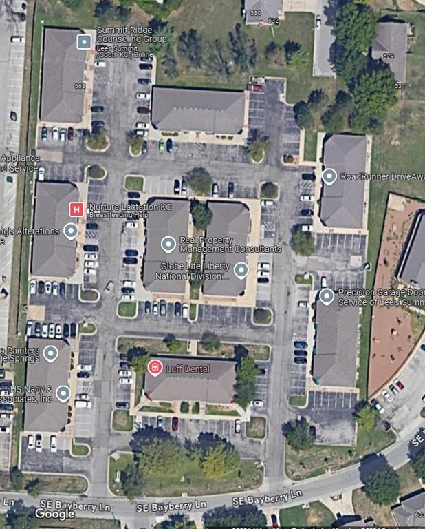 Newly renovated 1200 square foot office space in the super convenient Bayberry Business Center! Just off 291 highway by Lee's Summit High School, this business center is incredibly convenient for clients and employees. Gross modified rent. This unit offers an open entry, 5 office spaces, a storage room, break room and a restroom. Plus 20 paved parking spaces! This is an end unit with plenty of windows! Bayberry Business Center has smaller and larger units coming up for rent, if this space doesn't meet your needs, please call the listing agent to inquire the availability of the other units. They have offices as small as 218 square feet to as large as 3140 square feet that will be coming up soon in the near future. You cannot beat the location!!