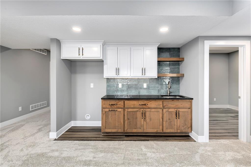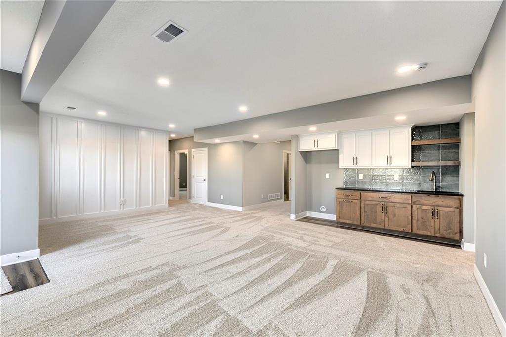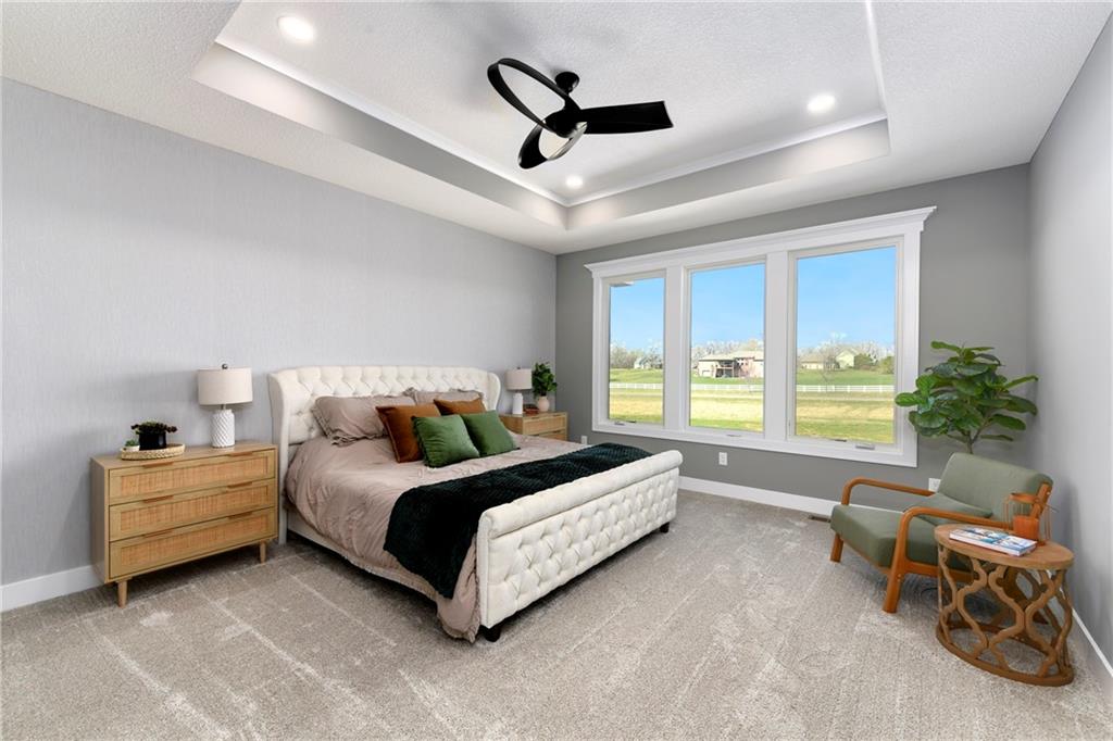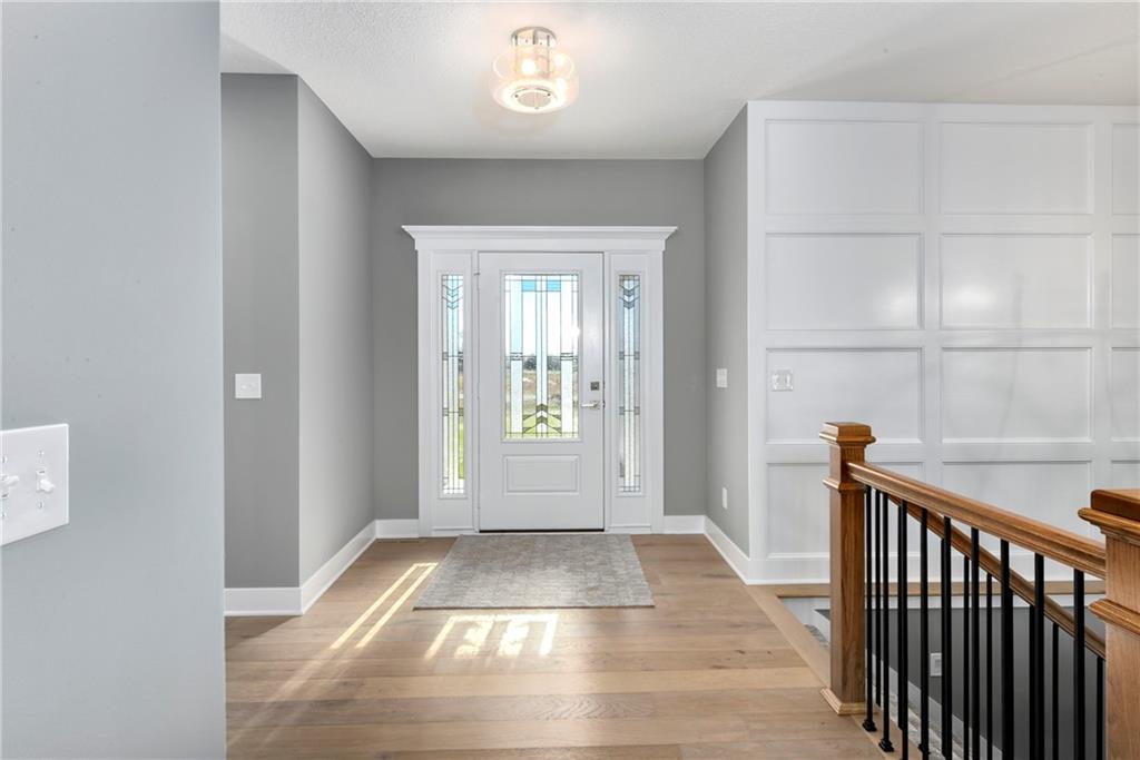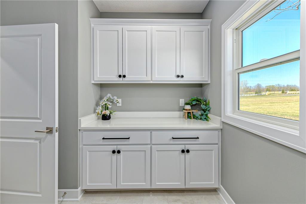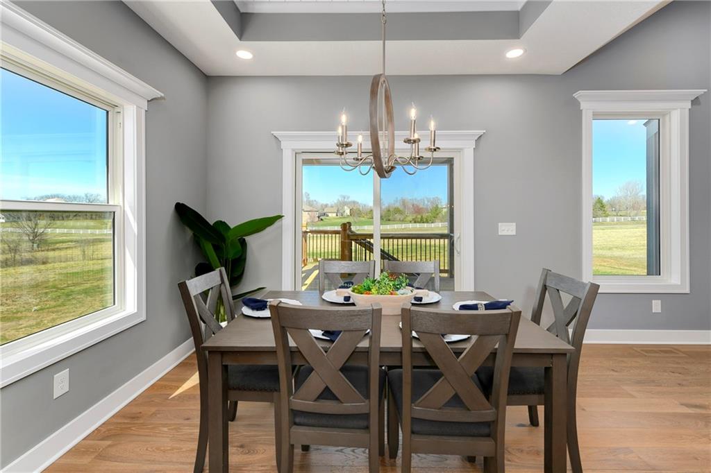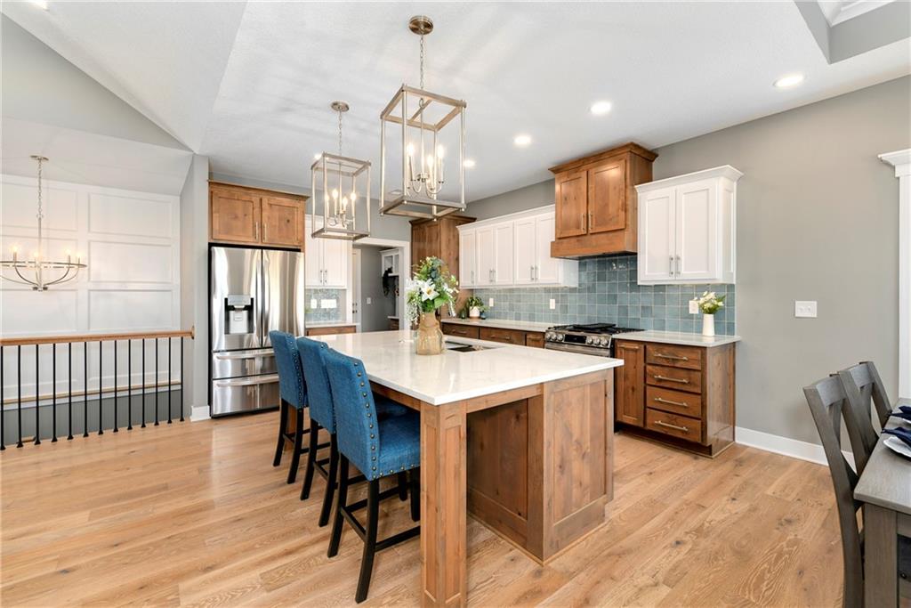 NEW HOME, MOVE IN READY! This Beautiful, Reverse Walk-out Ranch Home sets outside of City Limits on 2.5+ acres in the lovely Emerald Estates! This HOME is a GOLD Award winner in the Parade of Homes, Marco reverse 1.5 story / ranch plan by PCDI Homes! You will fall in love with all the custom detail in this home. The kitchen hosts a 7.5 foot island with quartz counters, a gas range with wood range hood, walk in pantry, soft close drawers and custom cabinetry, and a refrigerator! Just off the kitchen is a mudroom drop zone with bench and a oversized 3-car garage that has a workshop area and is 24' deep. Primary suite is on the main level with box vault ceiling, a bathroom suite with separate vanity areas, large walk-in closet and tiled shower with dual showerheads! A convenient additional guest bedroom suite on main level, 3 more bedrooms downstairs and a flex room for your home gym, crafts or office. Walk out basement to large concrete patio, covered deck with stairs to your amazing private estate lot. Outbuildings are allowed! Plenty of room for your pool and building! Emerald Estates is conveniently located right outside of the City Limits , so close to all the shopping, less than 20 minutes from Ft Leavenworth, VA Hospital, and so close to everything KC! Lansing Schools!