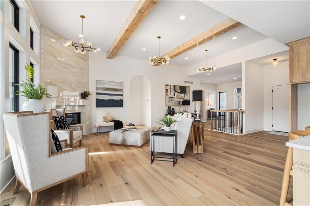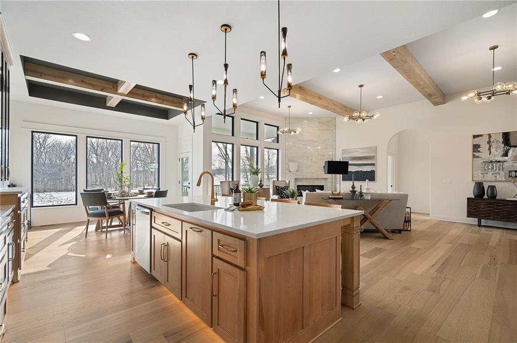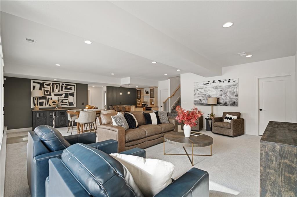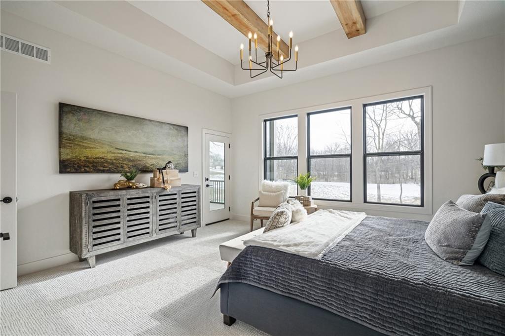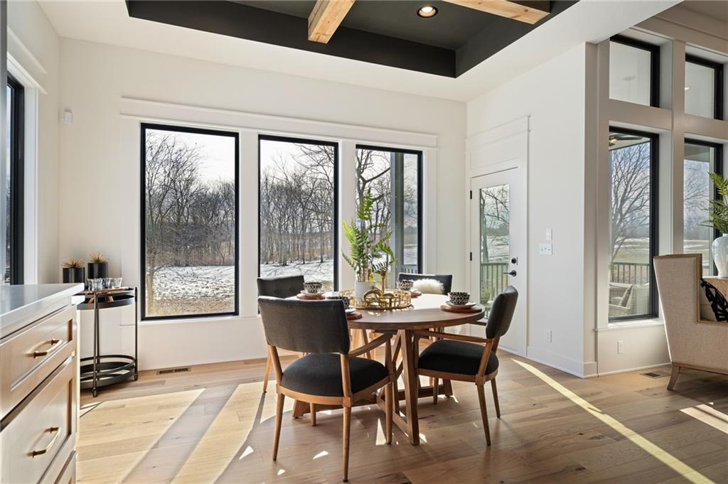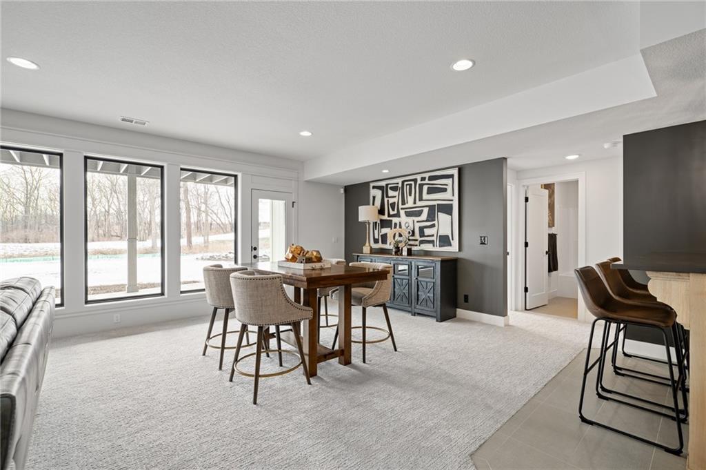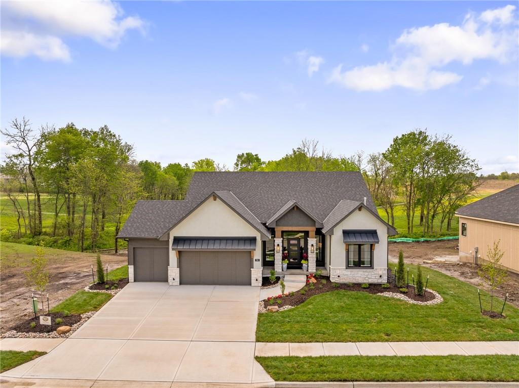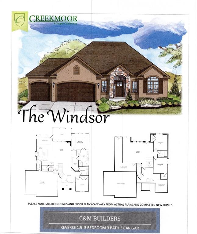 PRICE REALIGNED! MODEL HOME IS NOW FOR SALE. This popular "Expanded Windsor" reverse 1/2/ ranch floor plan by C&M Builders truly checks all the boxes both inside and out! Situated on one of Creekmoor's most beautiful golf course lots, it offers privacy while still providing a front-row seat to the action on the course and the occasional visit from local wildlife like deer. Inside, the home boasts a spacious primary suite with a large bath, walk-in closet, and direct access to the laundry room for added convenience. On the same level, you'll find another versatile room that can serve as a bedroom or office, along with a bath. The expansive great room features vaulted ceilings, a cozy fireplace, and a wall of windows that bring in tons of natural light. This opens up to a fantastic kitchen and dining area, perfect for hosting gatherings. Just off the dining area, a covered deck offers a tranquil spot to enjoy your morning coffee or unwind at the end of the day. The walk-out lower level is equally impressive, with two additional bedrooms, a bath, and a large family room with a wet bar—ideal for kicking back and watching your favorite games, especially cheering on the Chiefs!