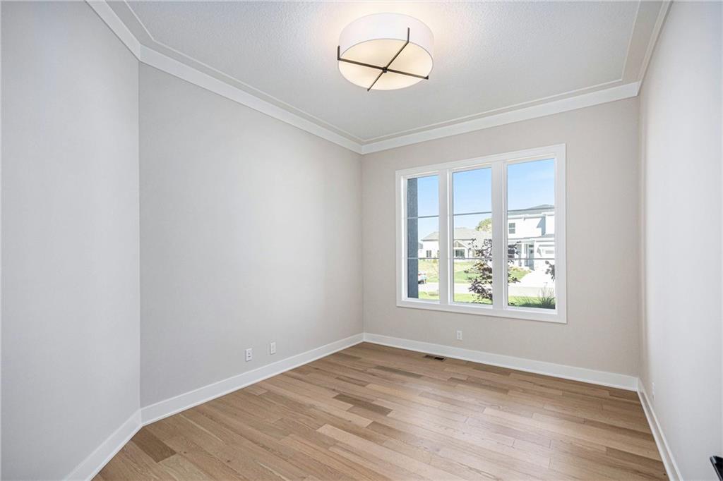 MOVE IN READY - The Aspen I plan by J.S. Robinson, located on Lot 62, is one of the builder’s most sought-after two-story designs. The main floor features an inviting foyer that opens to a versatile flex room, ideal for a formal dining area, private office, or other customized uses. Ten-foot ceilings, an expansive pantry, and a convenient boot bench further enhance the home’s blend of elegance and practicality. The upper level includes a well-appointed primary suite along with three additional bedrooms, offering generous living space for a variety of household needs. The partially finished lower level adds 764 square feet of additional living area, complete with a half bath, egress window and rough-in for a future bar. Outdoor living is equally well-supported with a covered deck perfect for gatherings or quiet relaxation. Close to schools, highways, shops and restaurants! Models Open Daily, 11 am – 5pm, and Sunday, 12-5pm. Visit the sales office at 12411 W 183rd Terrace, Overland Park. Come check it out! You won't want to miss this beautiful home! ***THIS HOME IS MOVE IN READY.