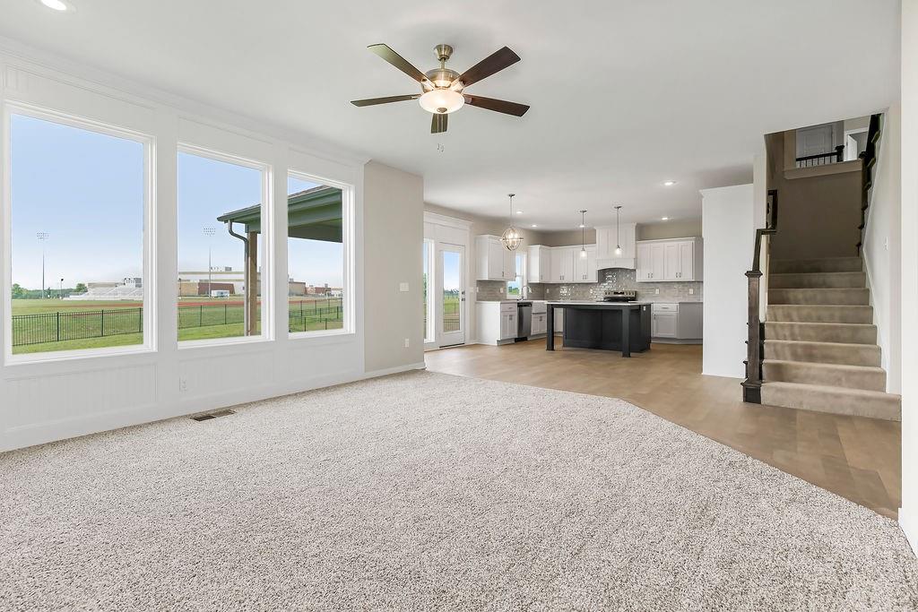 $10,000 price improvement on the popular Levi XL by Prieb Homes. Now Move-In-Ready! 5 bedrooms and 4 baths located on a large homesite that backs to greenspace. Front Porch elevation. The Dining Room is located off the front hall and offers a beautiful room to celebrate with family/friends. The Great Room has a stone fireplace with wood mantle. The Kitchen has a Large Quartz Center Island with counter seating, includes eat in area for kitchen table, and a large walk-in pantry. There is also a 5th bedroom/flex room on the 1st floor right off the Mudroom with Boot Bench and Entry Closet. Large Primary Bedroom and Primary Bath Walk-in Shower is upstairs with the other 3 bedrooms, 2 baths and laundry room. All bedrooms have vaulted ceilings, tiled floors in all bathrooms and laundry room. Covered Patio and Sprinkler System included outside. Sq. Ft. of home is Approx. please verify with onsite agent. Stonebridge community amenities include 4 Pools, 2 Clubhouses (1 is a gym), Parks, Playgrounds, Trails and Sport Courts. We are located right next to 1238 Acre Heritage Park is 2.2 miles away with a Lake, Dog Park, Sports Parks, Golf Trails and so much more. Garmin International Headquarters 2.0 miles away. 1-35 and 151st Street 2.4 miles for easy highway access and Olathe Medical Center Pavilion Hospital is 4.6 miles. 7 Acre Arbor Landing Park is 0.3 miles. Our Rodrock Development "Mom's Council" and Social Committee are quite active. 2020 National Blue Ribbon award winning Prairie Creek Elementary and Woodland Spring Middle School are 0.2 miles away in the community. Photos are of the actual home. Taxes are estimated. Mileage is estimated.