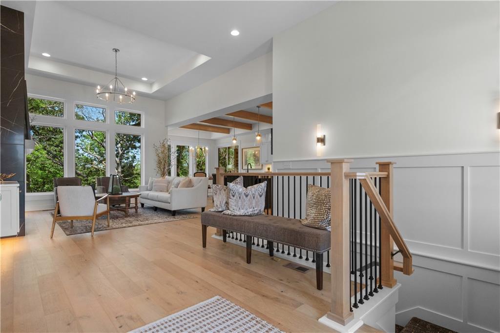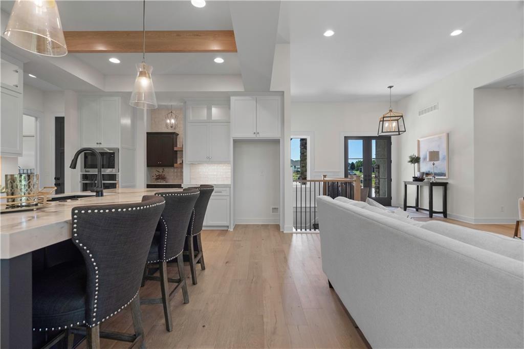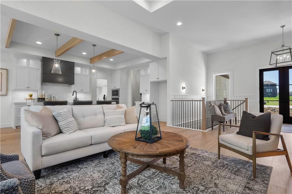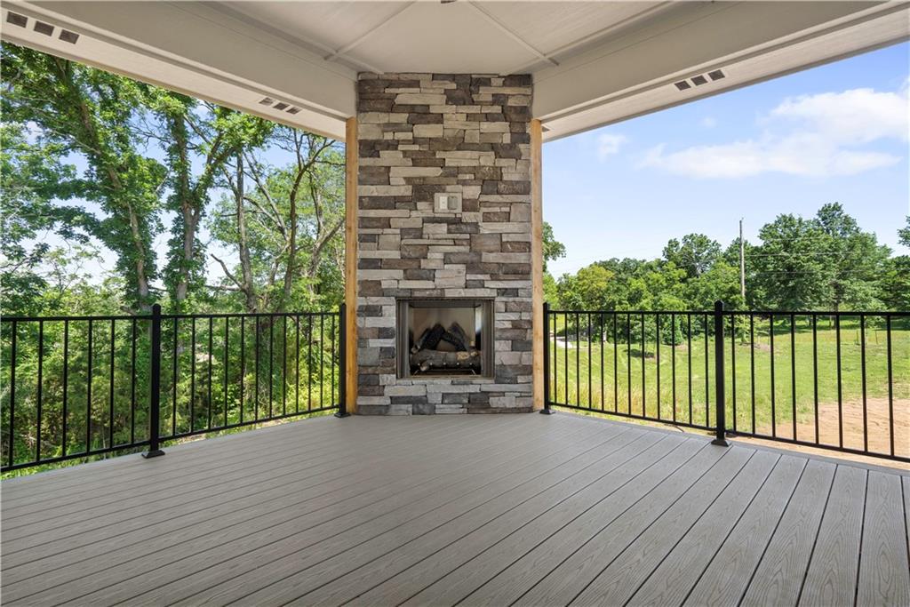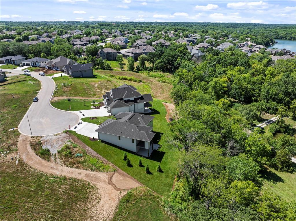 Stunning Modern Gunnison by JFE Construction! This home sits on a wooded lot with nature views from the back, and you will have a covered deck with a fireplace to enjoy it! The kitchen offers a large quartz island and a generously-sized pantry. Custom built-in features, accent walls, and custom trim work throughout! You'll love this one! While living in Woodland Oaks, enjoy the benefits of exclusive amenities in the surrounding area, including Lake Jacomo! Woodland Oaks is also a short walk away from Legacy Park, with a state-of-the-art community center, and the Legacy Park Amphitheater. Enjoy miles of walking trails, a disc golf course, and sports facilities for all ages, all in a convenient location to your home. Home is under construction and final pricing is subject to change. The specification sheet will outline planned finishes for this property, and supersede any details, photos, drawings, or depictions used for marketing purposes on this listing.