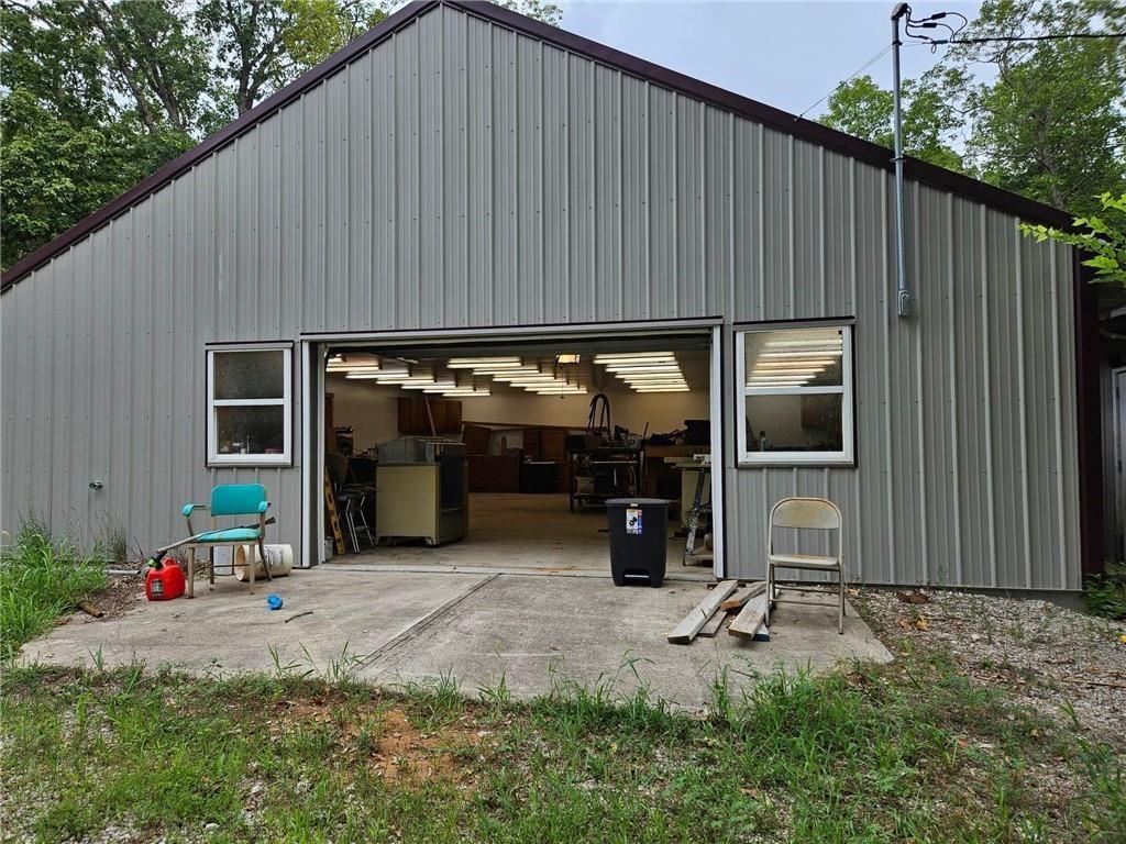 One-owner brick home, nestled back into shaded and treed setting. Mature oak, pecan, maple and fruit trees. Spacious custom kitchen with stainless appliances, movable island, peninsula, abundant pantry storage, built-in serving buffet in DR. New washer/dryer and D/W in 2024. High speed fiber optic internet at site. Above ground storm shelter. 2 car att. insulated garage, 33x39 heated and insulated shop building with overhead door & loft storage (plumbing stubbed for bath). 24x20 and 20x18 detached garages w/openers. Garden area, walking trails and more. Don't miss this rural opportunity!