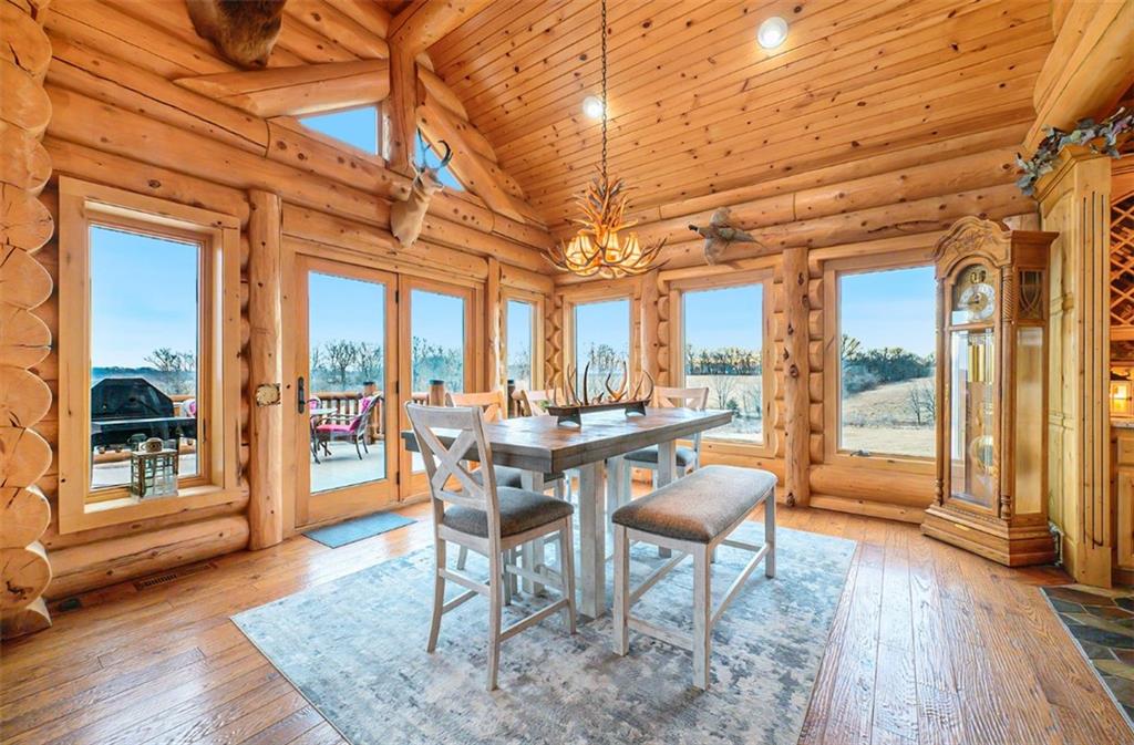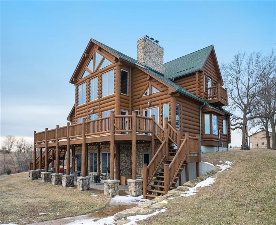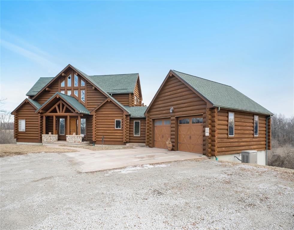 ********SELLER IS WILLING TO SPLIT OFF 60+/- acres & LOG CABIN W/ OUTBUILDING!!!!!!!!!!!!!!!!! STUNNING CUSTOM LOG HOME located on 130.8 acres (per county records) FULLY FENCED & cross fenced featuring 4 PONDS and a GORGEOUS LAKE!! 40x98 OUTBUILDING & lean to w/solar panels. PASTURE GROUND for your LIVESTOCK & HAY PRODUCTION along with timber. This RURAL RETREAT offers loads of RECREATIONAL OPPORTUNITIES for you and your family! The 4 bedroom 4.5 bath home offers an OPEN PLAN perfect for entertaining! CHEF'S KITCHEN features HUGE ISLAND, granite tops, CUSTOM CABINETS w/roll outs, pantry, dining space & more! SOARING CEILINGS & so many windows to take in the VIEWS! Main level primary suite w/SITTING ROOM & BEAUTIFUL STONE FIREPLACE! Don't miss the spacious laundry and mud room space for convenience. The upper level has 2 SECONDARY BEDROOMS with their own PRIVATE BATHS, walk in closets and balconies. The LOFT SPACE overlooks the EXQUISITE GREAT ROOM, STONE FIREPLACE and WALL OF WINDOWS! Finished walk out LL has the 4th bedroom & full bath, 16x8 SAFE ROOM, bonus room, REC ROOM W/3RD stone fireplace and WET BAR and 2 storage spaces. RELAX and watch the SUNSETS & WILDLIFE from the low maintenance deck overlooking the SALT WATER IN GROUND POOL & LAKE! This is a ONE OF A KIND meticulously maintained property 30 minutes from Kansas City. HURRY!