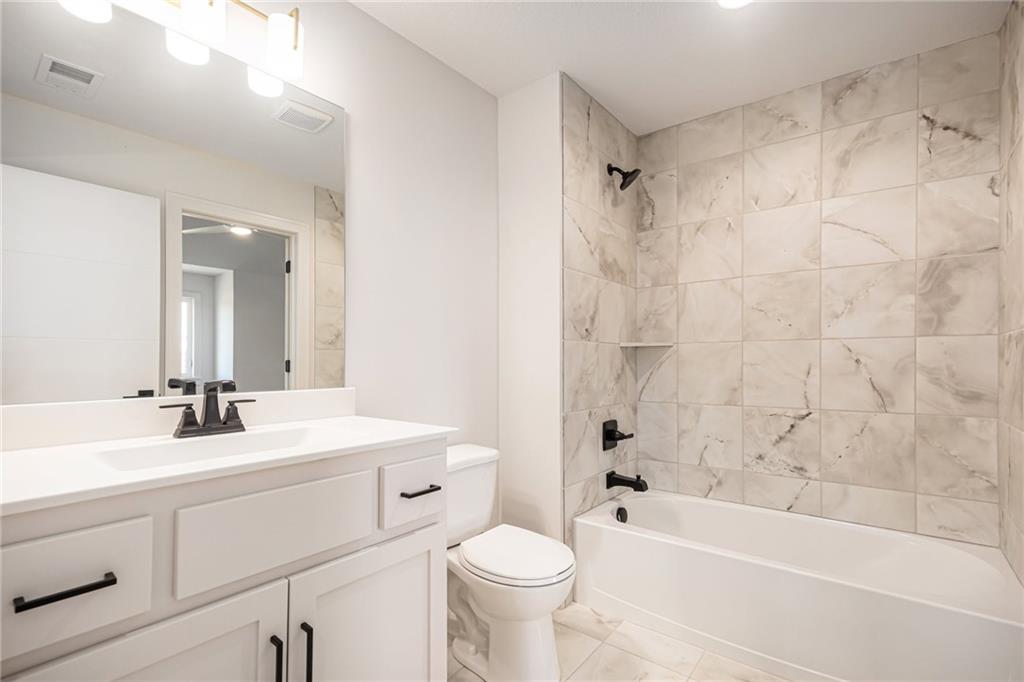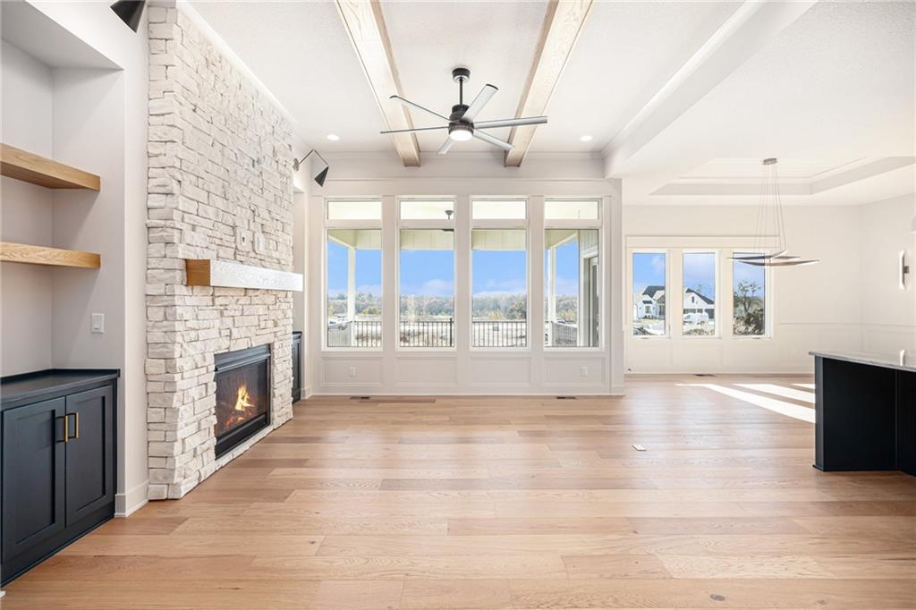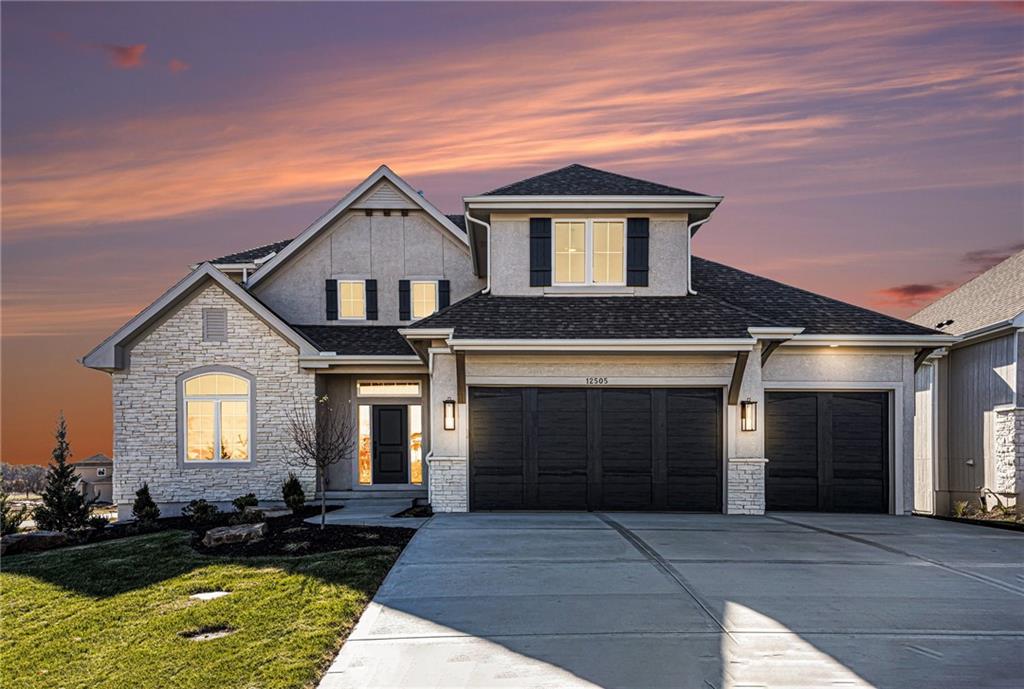 MOVE-IN READY! Located on Lot 81 prepare to be wowed by The Santa Barbara plan is one of Hilmann Home Building's newest 1 1/5 Story plans offering 5 bedrooms and 5 baths. The open main floor living features a great room with hardwood and vaulted ceiling, floor-to-ceiling fireplace, and a view to the outdoor covered living area, great for entertaining. The kitchen features beautifully designed cabinetry with a large island and granite countertops. The huge walk-in pantry / optional prep kitchen provides ample storage. The beautiful primary bath has everything you need including a large vanity space, walk-in shower, free standing soaker tub and TWO large walk-in closets. The primary bedroom has a convenient door leading to the covered porch. The main floor laundry boasts a utility sink with cabinetry and access from the main living area and the master bedroom closet. The 5th bedroom on the main floor can also serve as an office or study with access to a full bath. Each bedroom throughout includes its own bath and walk-in closet. 2nd floor features a spacious loft with fireplace plus three bedrooms each with a walk-in closet and private bathroom. Additional laundry hook-up on the second floor for convenience. Taxes are estimated. Don't miss this opportunity to own a beautifully crafted, loaded with upgrades, home in a fabulous neighborhood! Taxes are estimated. Don't miss this opportunity to own a beautifully crafted, loaded with upgrades, home in a fabulous neighborhood- minutes from our K-12 schools, highways, shops and restaurants. Models Open Daily, 11 am – 5pm, and Sunday, 12-5pm. Visit the sales office at 12411 W 183rd Terrace, Overland Park. THIS HOME IS MOVE-IN READY.