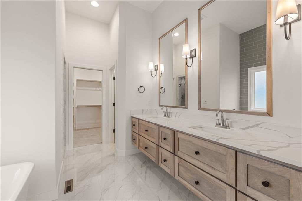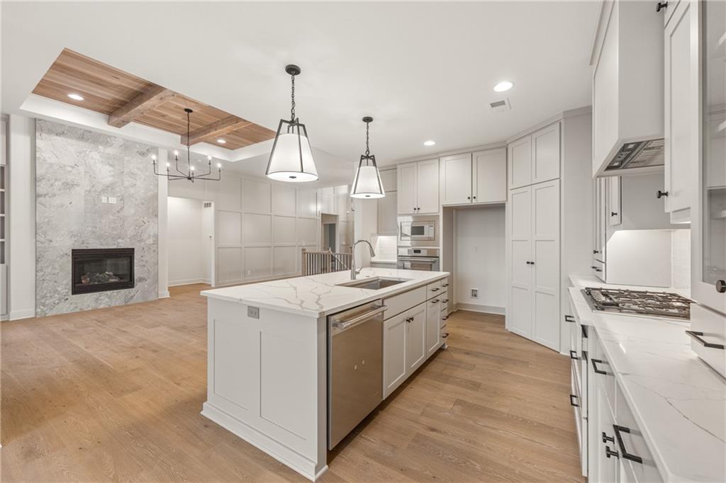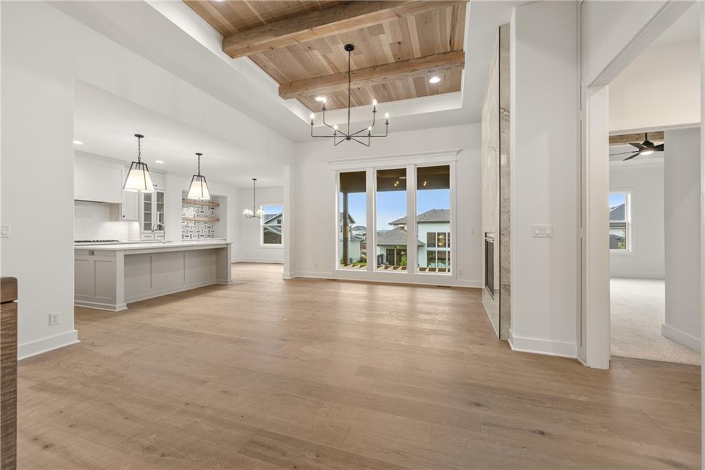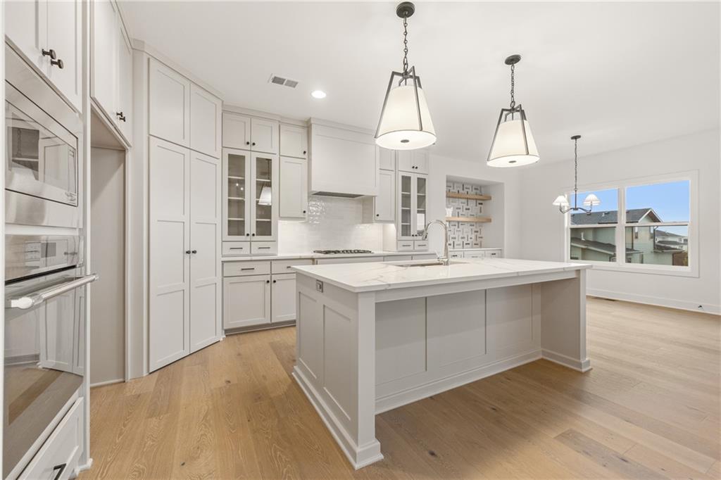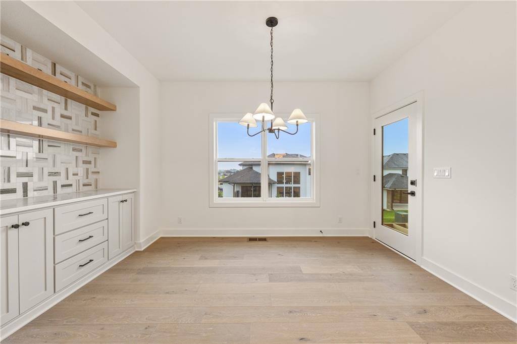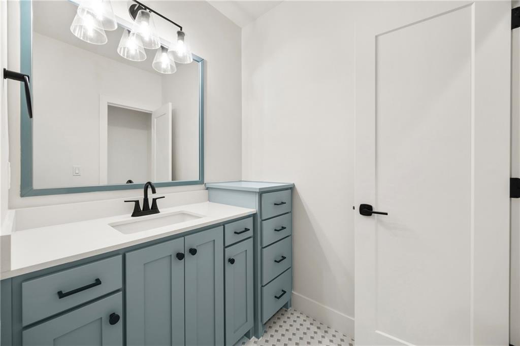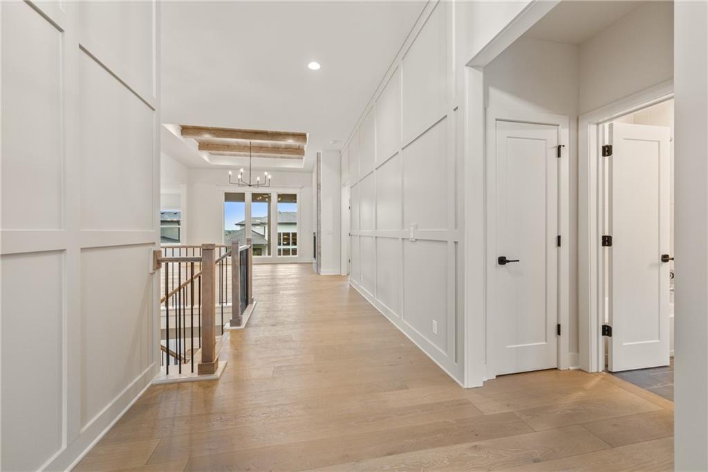 MOVE IN READY! The modern Riviera REVERSE by SAB Homes located on lot 184 in a cul-de-sac with a full finished walkout basement. You will love this new modern twist to a classic reverse floorplan at just over 3000 square-foot. with spectacular curb appeal featuring high peaks, vertical accent siding, metal accent roof, blackened bronzed windows, and super dark charcoal paint with red brick trim. Stunning! This home also features an ideal plan floor plan with a main floor primary suite and an office/ second bedroom with access to the covered 16' x 12' deck from the dining room and bedroom. Enjoy the finished walkout lower level with two more bedrooms, large family room with LVT flooring, parallel wet bar and a door to the backyard, plus plenty of room for storage. Perfect outdoor space under a 16' x 12' covered patio with full sod front and back, sprinkler system and front landscaping package included. This home is loaded with upgrades; gas cooktop, quartz countertops, decorative bath mirrors, Maxx Lounge freestanding tub, bump out in the dining area for hutch or china cabinet, boot bench at garage entry, large windows, floor to ceiling tile fireplace with accent ceiling trim in great room, vertical shiplap accent wall in the office with 3 ceiling beams, wainscoting at entry and stairwell and light wood flooring.  Century Farms has a spectacular club house with a farmhouse twist ideal for neighborhood gatherings or private parties with reading loft and a fitness center. There are plenty of neighborhood activities with a fire-pit, two pickle-ball courts and a basketball hoop, kids play area, wildflower walkways and a community garden. Century Farms is conveniently located near the brand new Bluhawk shopping center, Heritage Park, the Johnson County Trail system and the Overland Park Arboretum.  Come join the fun in Century Farms, a unique one of a kind upscale new home community in Overland Park. BLUE VALLEY SCHOOLS