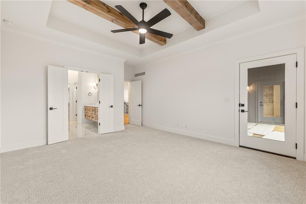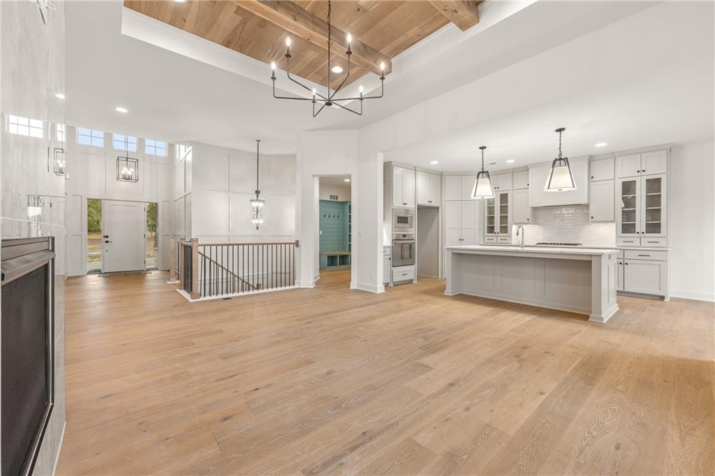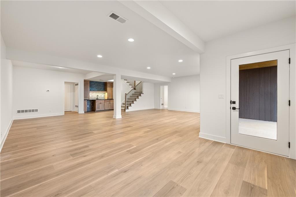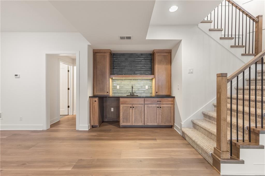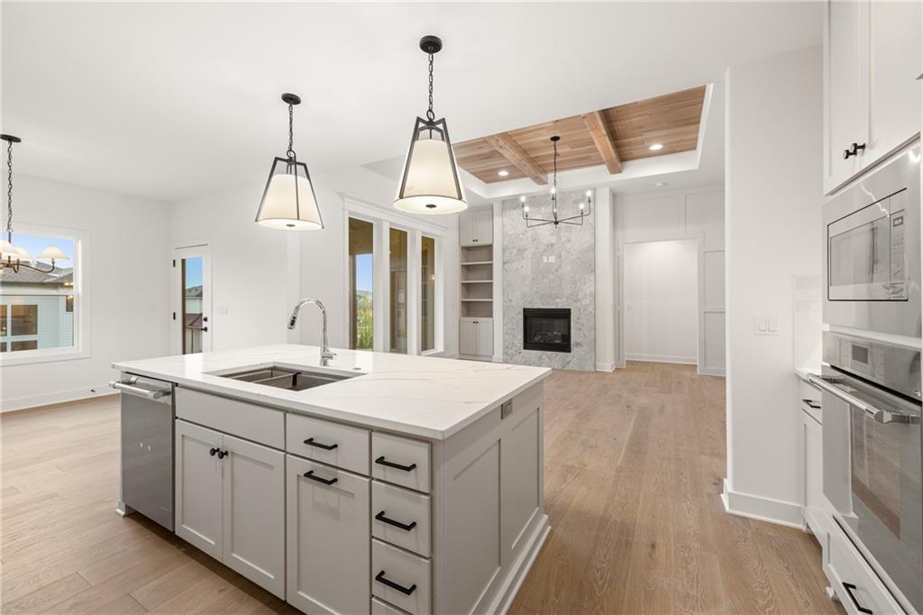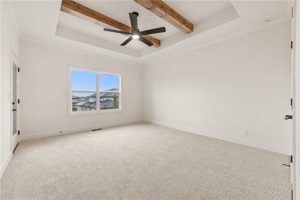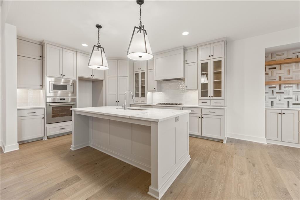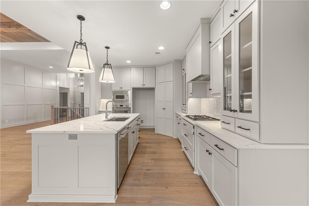 MOVE IN READY! The modern Riviera REVERSE by SAB Homes located on lot 184 in a cul-de-sac with a full finished walkout basement. You will love this new modern twist to a classic reverse floorplan at just over 3000 square-foot. with spectacular curb appeal featuring high peaks, vertical accent siding, metal accent roof, blackened bronzed windows, and super dark charcoal paint with red brick trim. Stunning! This home also features an ideal plan floor plan with a main floor primary suite and an office/ second bedroom with access to the covered 16' x 12' deck from the dining room and bedroom. Enjoy the finished walkout lower level with two more bedrooms, large family room with LVT flooring, parallel wet bar and a door to the backyard, plus plenty of room for storage. Perfect outdoor space under a 16' x 12' covered patio with full sod front and back, sprinkler system and front landscaping package included. This home is loaded with upgrades; gas cooktop, quartz countertops, decorative bath mirrors, Maxx Lounge freestanding tub, bump out in the dining area for hutch or china cabinet, boot bench at garage entry, large windows, floor to ceiling tile fireplace with accent ceiling trim in great room, vertical shiplap accent wall in the office with 3 ceiling beams, wainscoting at entry and stairwell and light wood flooring.  Century Farms has a spectacular club house with a farmhouse twist ideal for neighborhood gatherings or private parties with reading loft and a fitness center. There are plenty of neighborhood activities with a fire-pit, two pickle-ball courts and a basketball hoop, kids play area, wildflower walkways and a community garden. Century Farms is conveniently located near the brand new Bluhawk shopping center, Heritage Park, the Johnson County Trail system and the Overland Park Arboretum.  Come join the fun in Century Farms, a unique one of a kind upscale new home community in Overland Park. BLUE VALLEY SCHOOLS