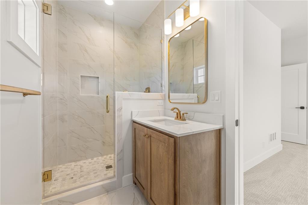 BRAND NEW PLAN: MUST SEE 1.5 Story with split car garage, the Birmingham II by SAB Homes located on Lot 165 is ready for MOVE IN! From the moment you step into the grand entry, you will be delighted by what you find. The large great room with tile trimmed walls, side cabinets and plenty of windows with a soaring 2-story ceiling. The kitchen is made for a chef, with a 5 burner gas cooktop, convection oven, large quartz island, walk-in pantry with prep kitchen with a 2nd convection oven & 2nd sink! Enjoy a large dining room with built in hutch wall and sliders to enjoy your covered patio. The main floor primary suite is a calming retreat with double vanities, walk-in shower, freestanding tub, plus a large walk-in closest with its own laundry hook-ups. The upper level features a unique loft for gaming or craft room at the top of the stairs with plenty of natural light. There is a space for everyone with four bedrooms upstairs, each with a walk-in closet. plus a second floor laundry room with a sink. The best part is the split garage with added room for storage. Outside features a large front porch with real stone trim, beautiful rock wall, landscaping and sprinkler system. Enjoy the large level backyard ideal for pool or easy main level access form the covered back patio. Century Farms neighborhood has a spectacular club house with a fitness center and resort style swimming pool with slide. There are plenty of neighborhood activities with a fire pit, two pickleball courts and a basketball hoop, farm themed animal kids play area and a community garden. Century Farms is conveniently located near the brand new Bluhawk shopping center, Heritage Park, the Johnson County Trail system and the Overland Park Arboretum.  Come join the fun in Century Farms, a unique one of a kind upscale new home community in Overland Park. BLUE VALLEY SCHOOLS