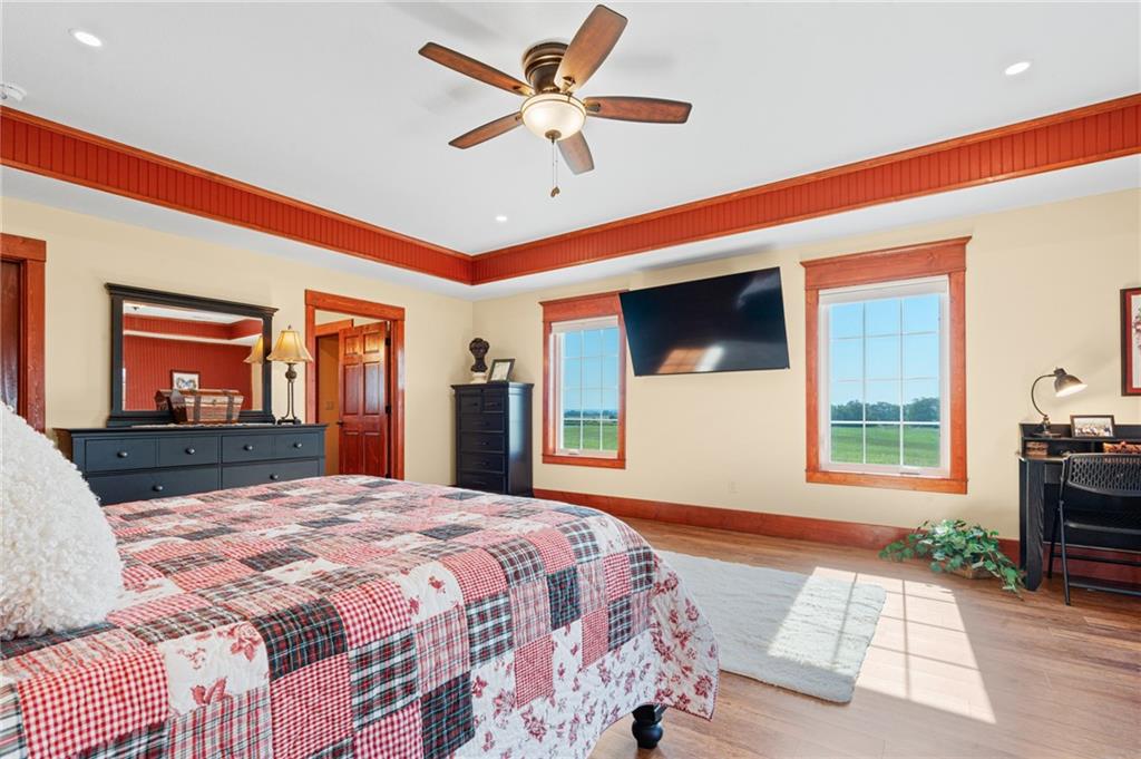 A Country Dream on 74+ Acres in Northwest Missouri! Looking for the perfect mix of wide-open spaces, modern comfort, and a dash of adventure? This stunning estate is just 1¼ hours northeast of Kansas City—and it’s a showstopper! Perfectly tucked between Gallatin, Jameson, and the historic Adam-ondi-Ahman site, it’s where beauty meets functionality and peace meets play. At the heart is a spacious 4,720 sq ft home that checks every box. The main floor boasts three private bedroom suites (yes—each has its own bath!), including an oversized primary retreat. The open-concept living, kitchen, and dining area is designed for gathering and memory-making. Upstairs is a 1,440 sq ft apartment—complete with kitchen, laundry, master suite, a 10-bed bunk room (sleepovers, anyone?), plus a huge storage room. Even the 1,647 sq ft heated three-car garage is ready for cars, toys, tools, or hobbies. In-floor heating zoned for the house and garage, a propane furnace, on-demand water heaters, and an Amish cookstove ensure warmth and efficiency year-round. Outside, a 70'x80' outbuilding includes a 588 sq ft energy-efficient studio apartment with Murphy bed, full bath, and kitchen with pantry. The same building offers two more bedrooms, another full bath, laundry, a spacious loft, a workshop, and an impressive multipurpose room, a PICKLEBALL court (yes, really!)—plus space for animals or equipment. A second 40'x50' barn is fully insulated with concrete floors for all your projects and passions. For outdoor lovers, there’s a 3-acre stocked pond, nearby Grand River, 46 acres of tillable ground providing crop income (currently soybeans, hay/alfalfa), and abundant wildlife—deer, turkey, quail, and more. Whether farming, fishing, riding horses, or simply soaking in sunsets, this property delivers. This isn’t just real estate—it’s a lifestyle. A peaceful retreat in the heartland where you can work, play, and truly live.