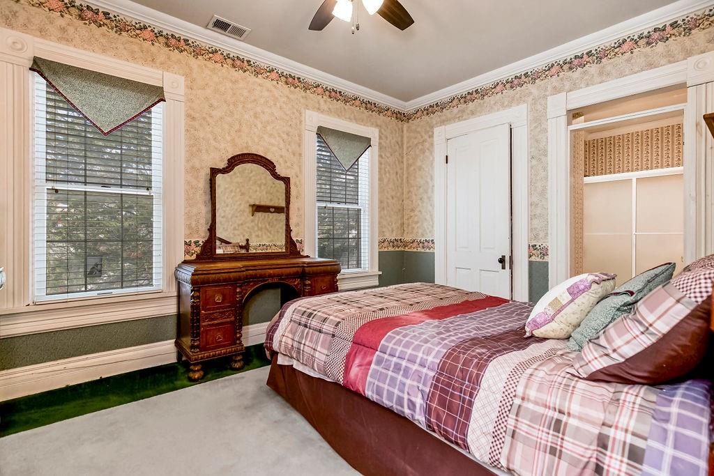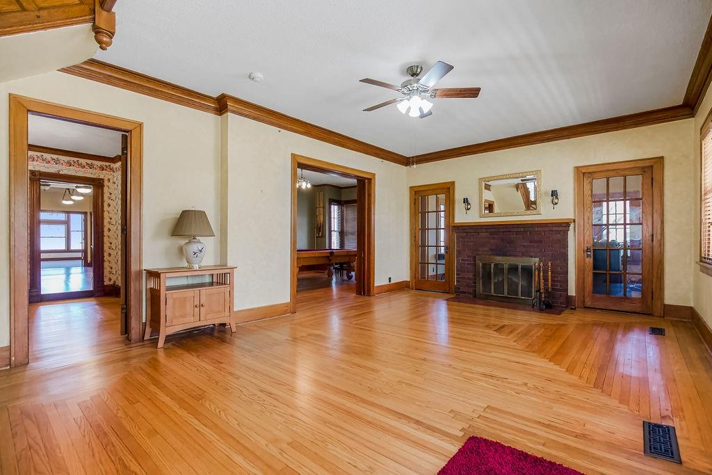 FINAL PRICE REDUCTION! Priced for a quick "as is" sale! Amazing home, built by lumberman M.A Schroeder in 1893, is full of character and charm. Original stained-glass windows, frame pattern oak hardwood floors, intricate doors with transom windows, crown molding, & built in cabinetry. This home has seven bedrooms and six full baths plus a powder room. Enter into the grand living room, formal dining, billiard/library, powder room & office. Main level master suite includes a living room and full bath/walk-in closet. Large kitchen has tons of cabinet space, pantry, Viking gas stove and stainless-steel fridge. Custom granite island was once part of the Western Spirit Newspaper office. Spacious laundry/mud room with lots of counter tops and storage. Take either the decorative front staircase or back stairs to the second level where there are five bedrooms, four full baths, and laundry closet. The second floor master suite has a sunroom attached with access to the balcony. The third floor was converted to the main master suite with full bath, dressing area, and walk-in cedar closet, for the last of only five homeowners of this 135 year old home. Occupying an almost ½ acre corner lot with a beautiful gazebo and garden area. Original carriage house has the old feed bins, dutch door, and loft area. A garage door opener has been added for a covered parking space. This is a chance to own a part of Paola’s history!