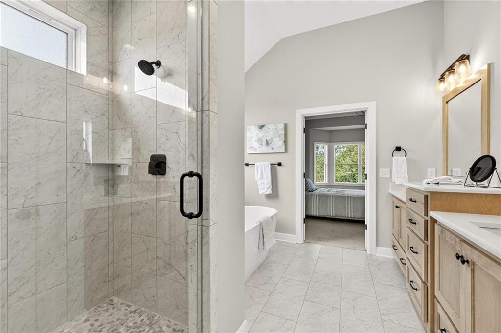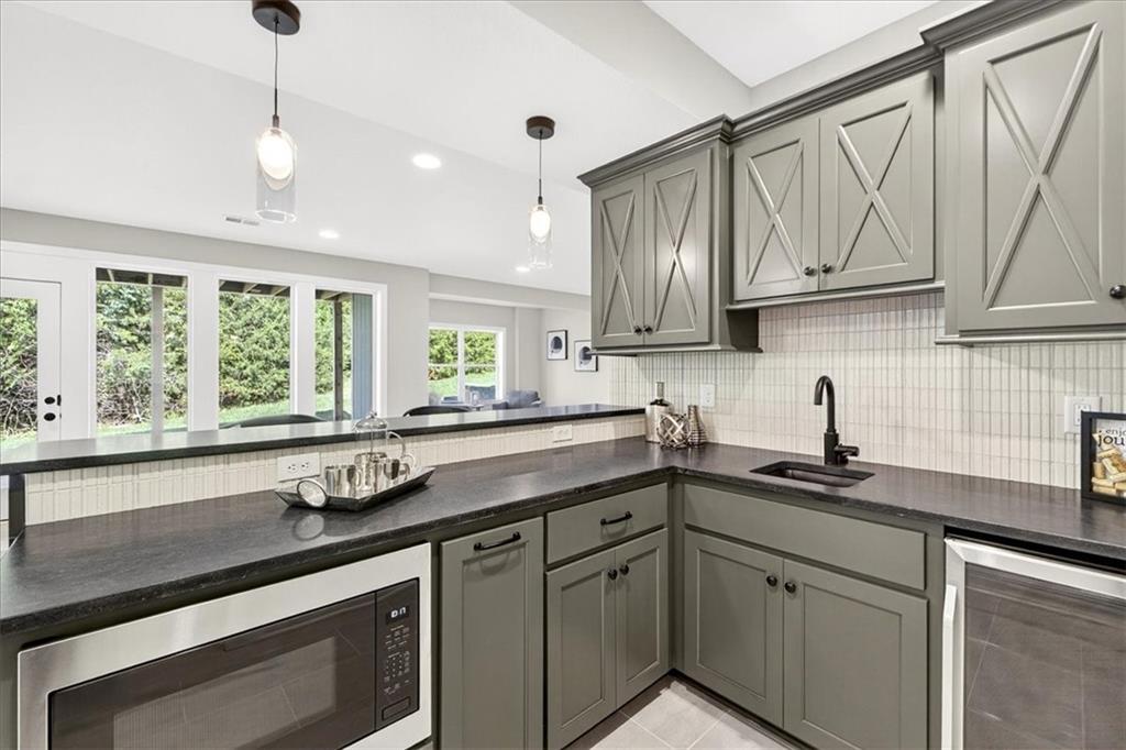 READY TO MOVE IN!!! New Mark Homes award winning Morgan Reverse plan! You have found the ONE! Stunning open plan on beautiful wooded lot. Main level features incredible kitchen with quartz countertops, custom cabinetry and loads of storage. Large living room with fireplace and wall of windows. Owner's suite on main level will WOW you with its special wall detail/upgraded trim, gorgeous bath and huge closet. 2nd bedroom on main level is perfect for living or home office. Lower level walks out to wooded lot. Stunning full bar that will blow you away!!!!!! Large rec room AND 2 additional bedrooms and full bath. Do not miss this one!