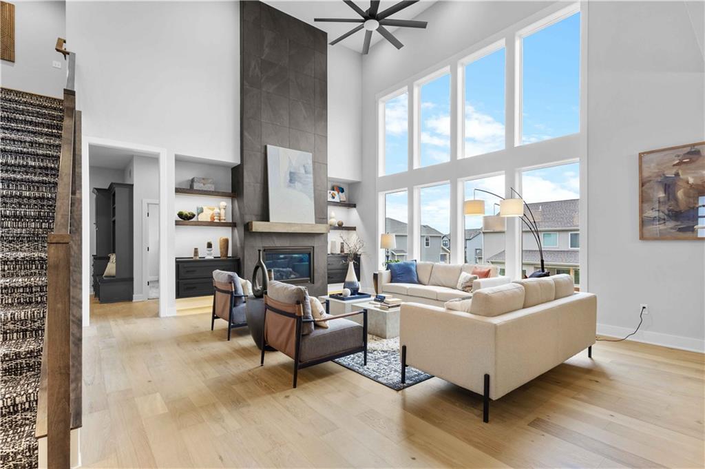 Inspired Homes popular "OPUS II" plan, THIS IS A MODEL AND IS NOT AVAILABLE FOR SALE. This is a fabulous home that shouldn't be missed. The home features soaring ceilings in the large Great Room with a wall of windows to flood the home with natural light. The Great Room flows into the kitchen & Dining area. The gorgeous kitchen features plenty of cabinet space, quartz countertops, a huge island, & gas cooktop. Off the kitchen is a prep kitchen and a spacious pantry. Off the Dining Room step onto to the screened in deck with outdoor fireplace. The main level features both an office and separate private guest bedroom. The Second Floor has a “catwalk” open stair railing looking over the Great Room! DELUXE master bath suite includes a shower w/ glass panels & door. and a large free standing tub. Large secondary bedrooms. Absolutely incredible floorplan that is like no other. This home also features a finished walkout lower level with a large rec room, large linear fireplace, Large wet bar, an additional bedroom and full bath. There is more entertaining space on the covered lower level deck. The home has a total of 6 bedrooms, 5 baths, plus an oversized garage. This fantastic plan offers MULTIPLE options for living, work at home, or combining generations! Finished LL is perfect for hobbies, workouts, or entertaining! BUY WITH PEACE OF MIND, the convenience of new construction backed by a 2-10 Home Warranty, offering 10 year structural, 2 year mechanical, 1 year workmanship. The new Blue Valley Elementary School, Aspen Grove, located in the center of the community is in its second year of operation. Don't miss viewing the community amenities which includes a clubhouse with a large gathering room and kitchen, a fitness rm, and a dog spa. There is a zero entry outdoor pool plus a separate kiddie pool. The amenity package also includes a Pool house with an indoor lap pool as well as an endless pool open year round, A basketball court and playground complete the amenities.